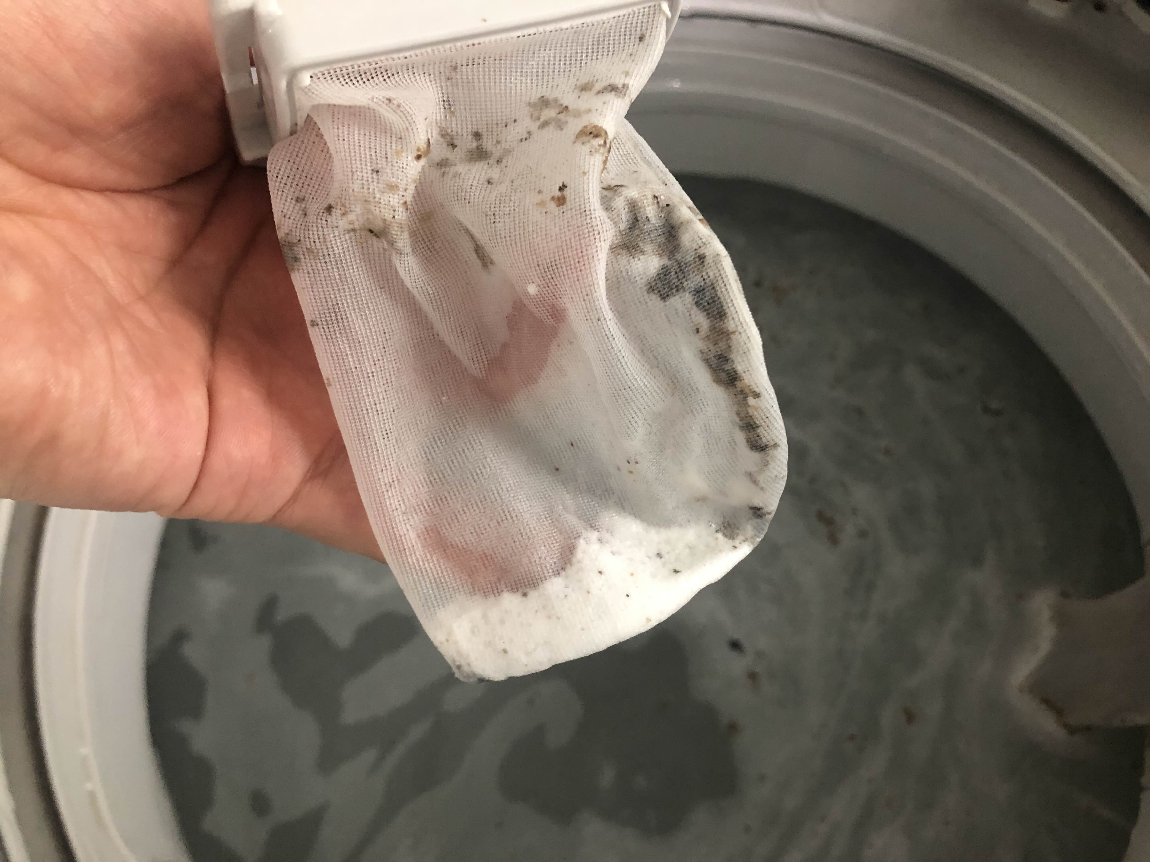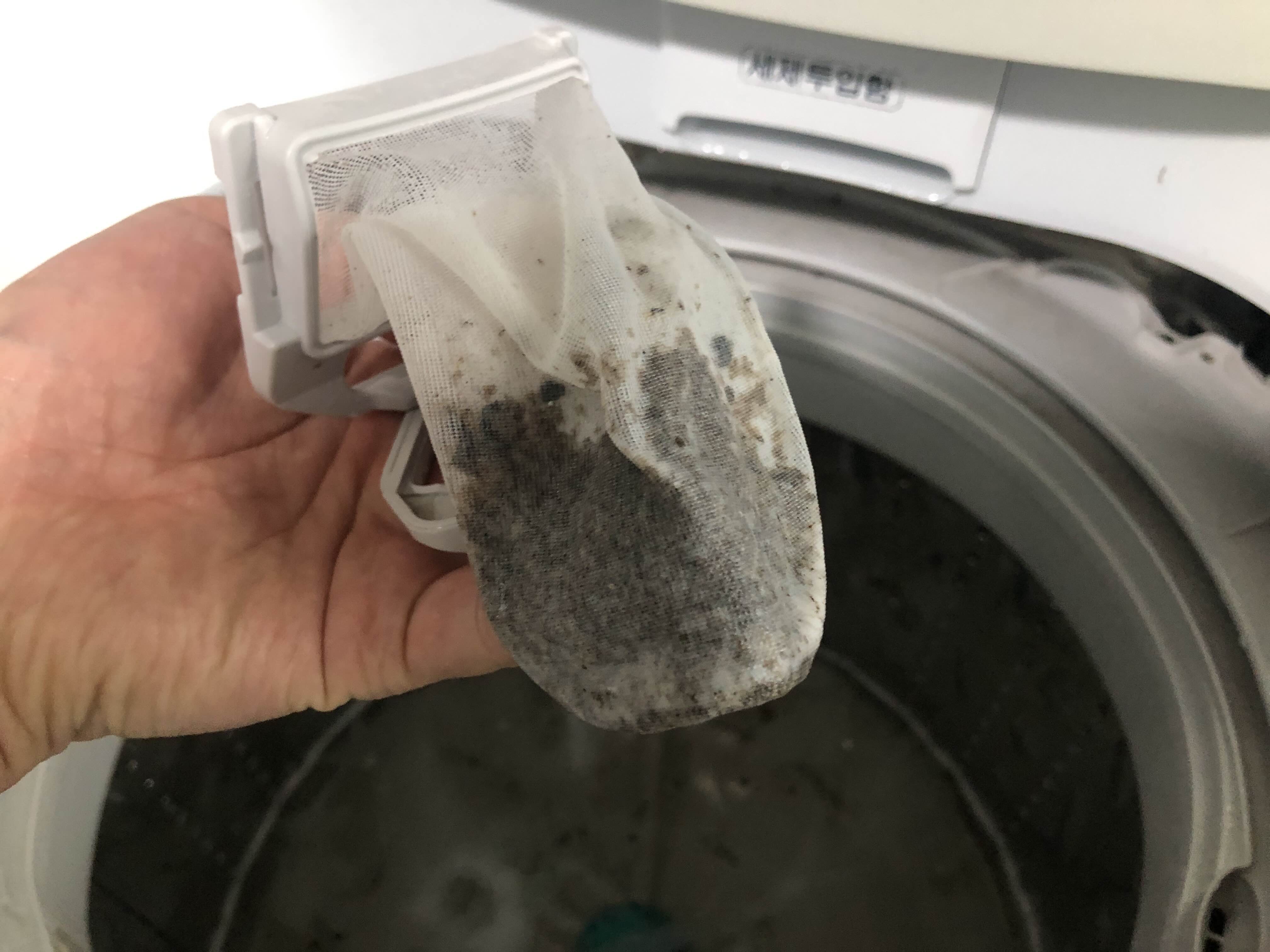 세탁기 거름망을 통해서 눈에 보이지않는 세탁기내 배관에 쌓여있던 찌꺼기들이 망에 걸리게된다…. 이게 좀.. 처음에는 크리너 알갱이가 덜 녹음 부분도 같이 걸러지게 되서 가능한 크리너를 녹여서 넣어주는것도 좋다!
