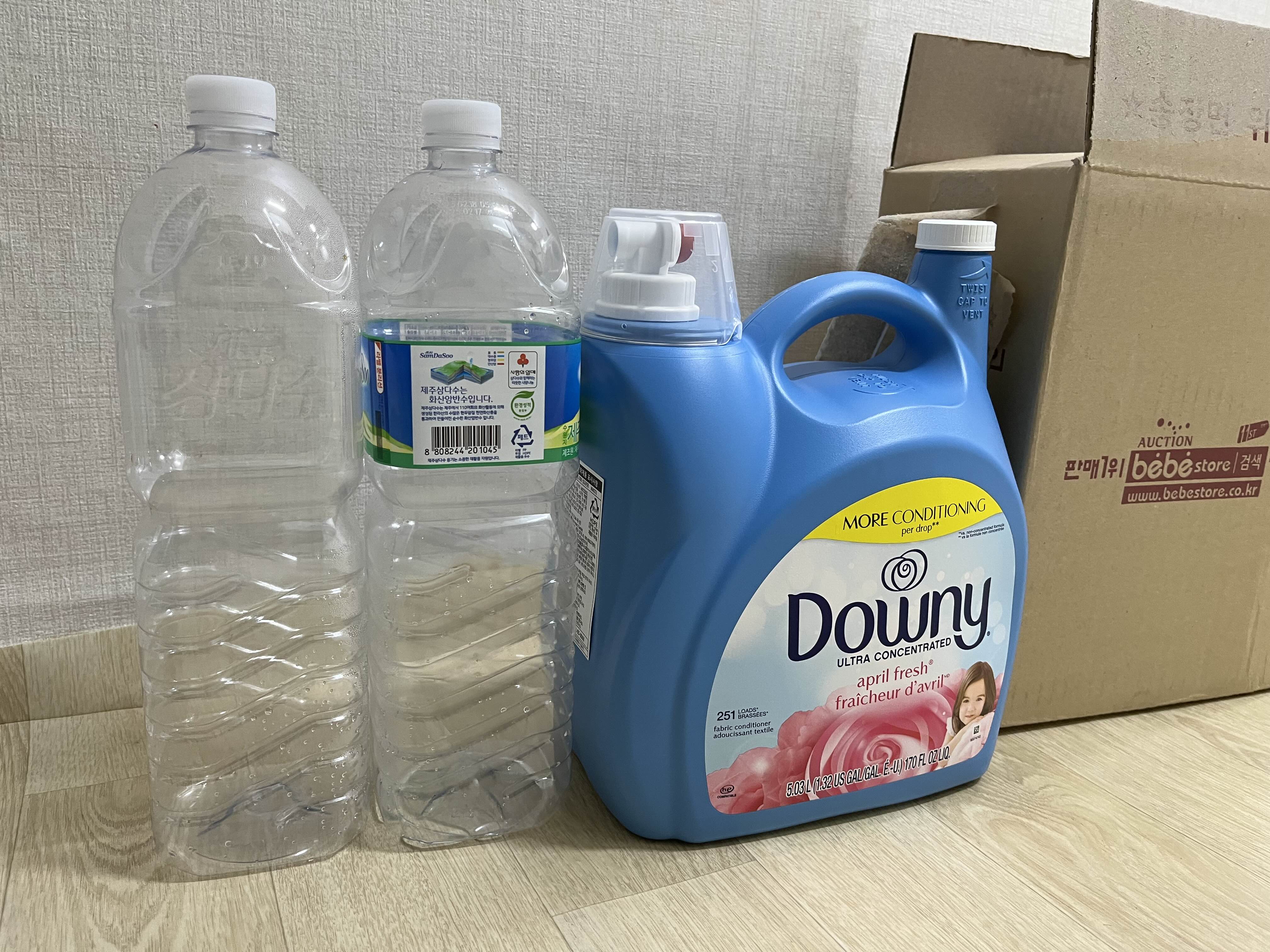 용량측정을 위한 준비물 빈 페트병과 용량이 정확히 기재된통을 준비했다.! 먹거리를 담는통이지만.. ㅋㅋ 이젠 그냥 향기나는 통으로 써야할듯.