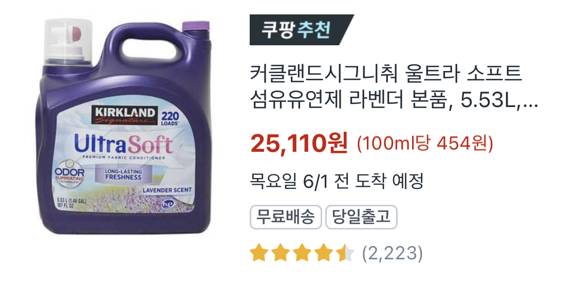 아래제품도 후레쉬라는 제품인데 다음엔 매장에서 향을 맡아봐야겠다.코스트코 커클랜드 시그니쳐 섬유 유연제(후레쉬) 5.53L 220회분