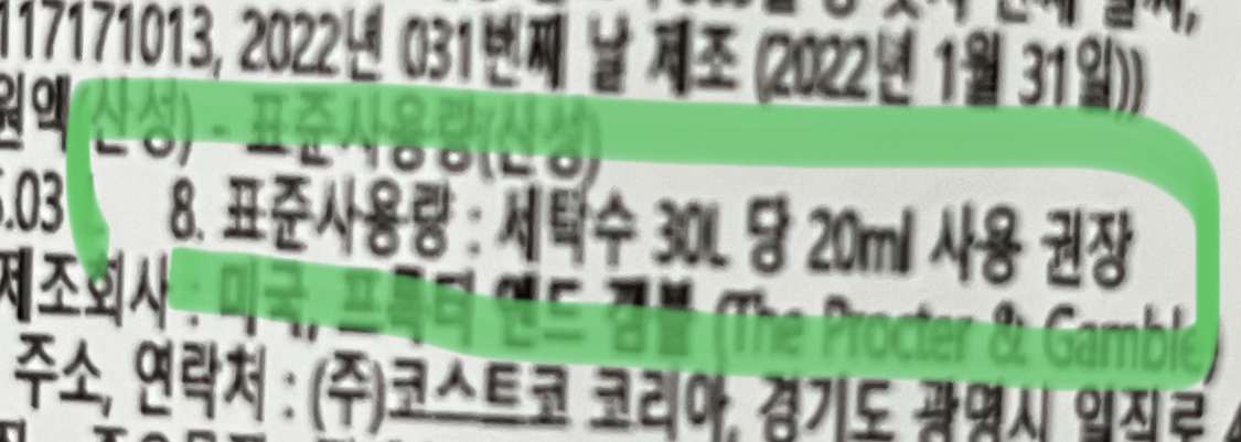 사용량은 세탁에서 사용되는 물 30L 기준 20ml 사용을 권장했지만 도복과 운동복기준이라ㅜ땀냄새가 심하기에ㅜ난 더 넣어주기로.!