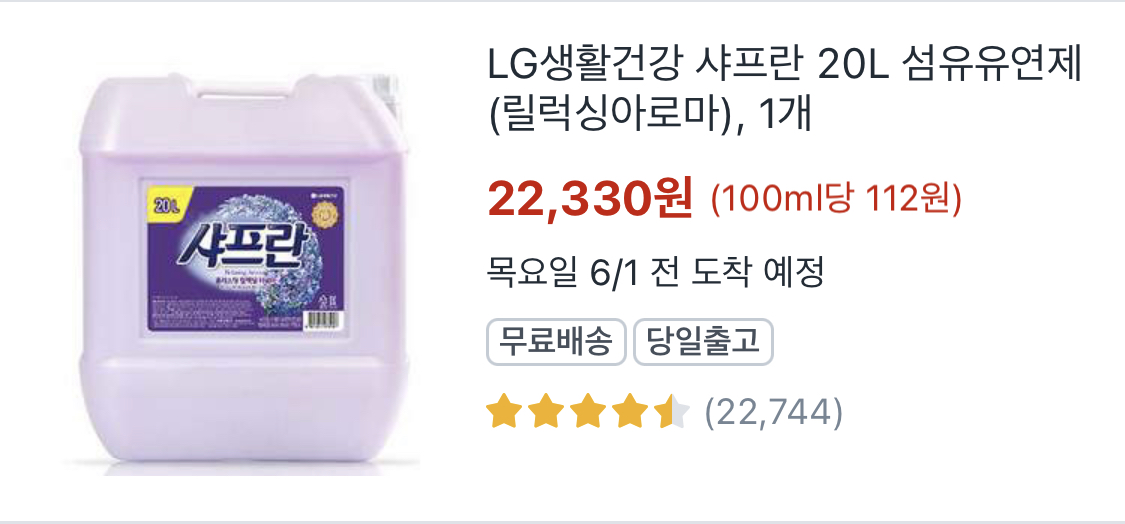 섬유유연제 대용량 인기