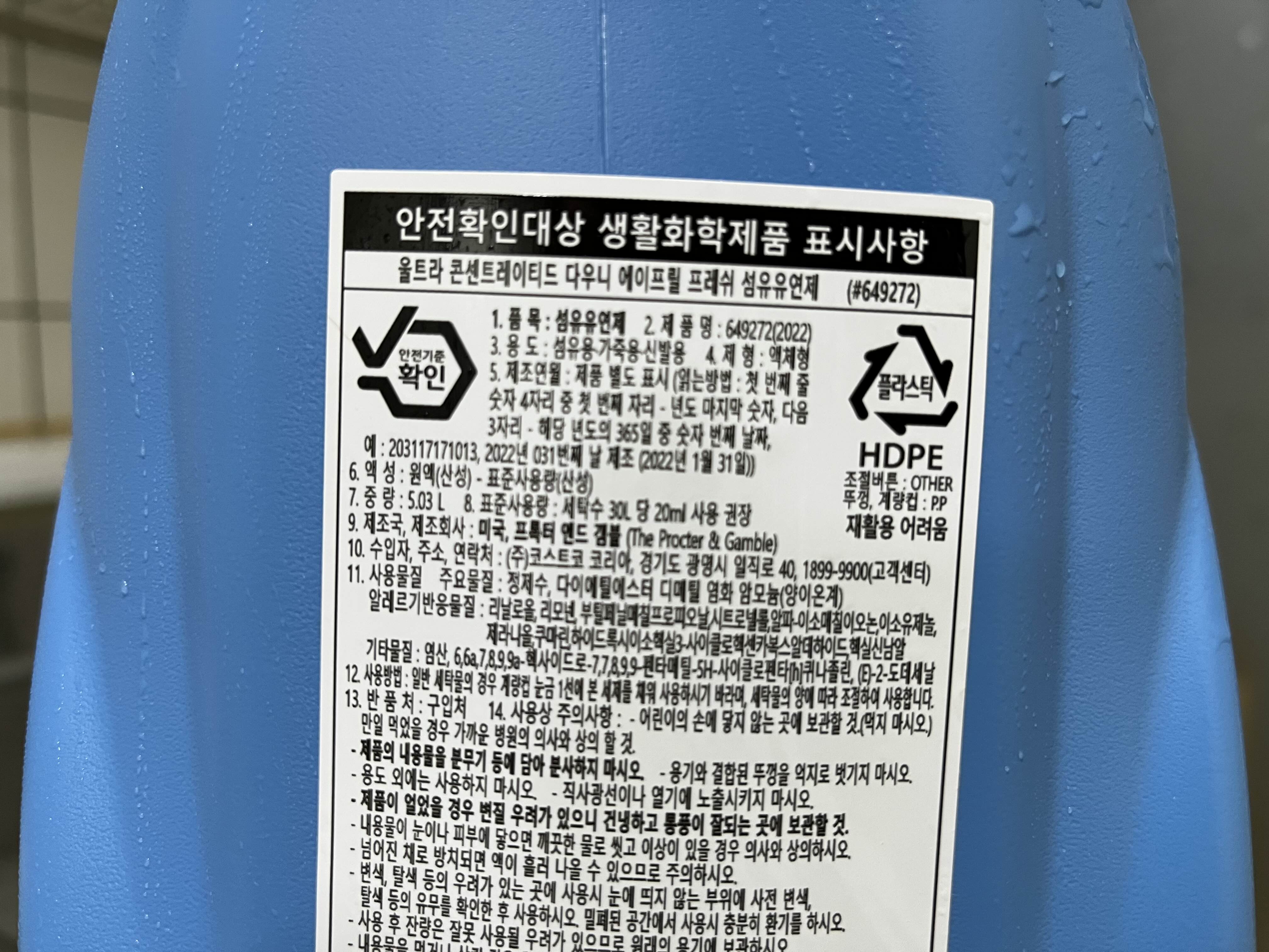 섬유유연제 실제용량그렇게 결국 무거워서 매장에서 직접구매하지 않고, 다우니 에어프릴 프레쉬 5L 제품을 주문했는데, 막상도착한 제품이 가볍게 느껴졌다! 그래서 이게 진짜 5L 제품인지 확인이 하고 싶어졌다.!