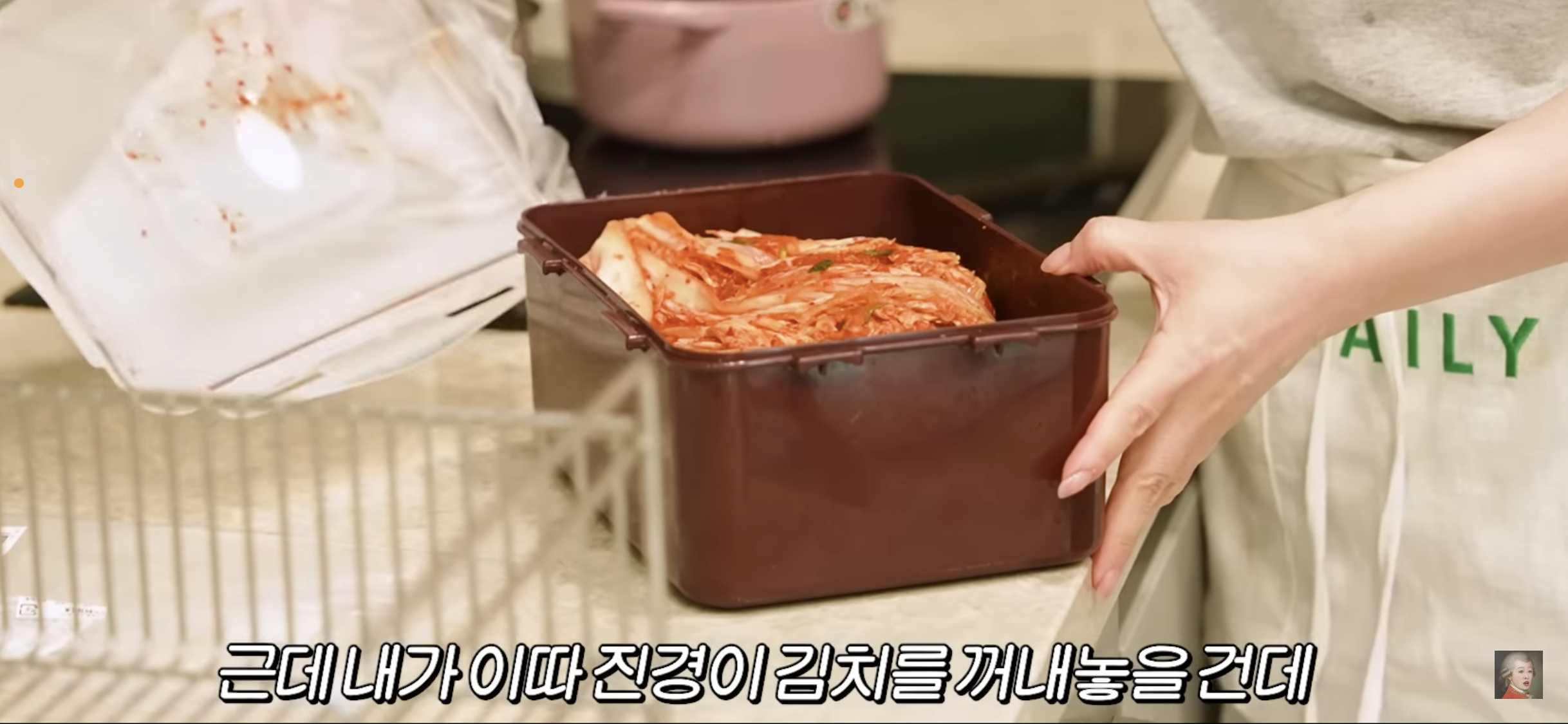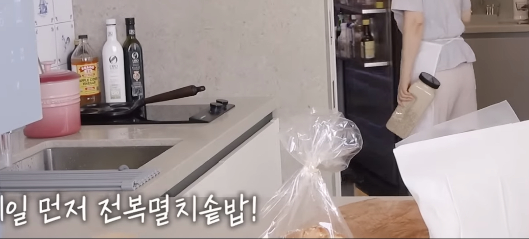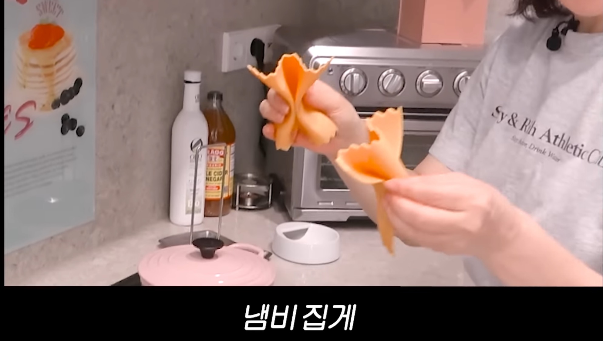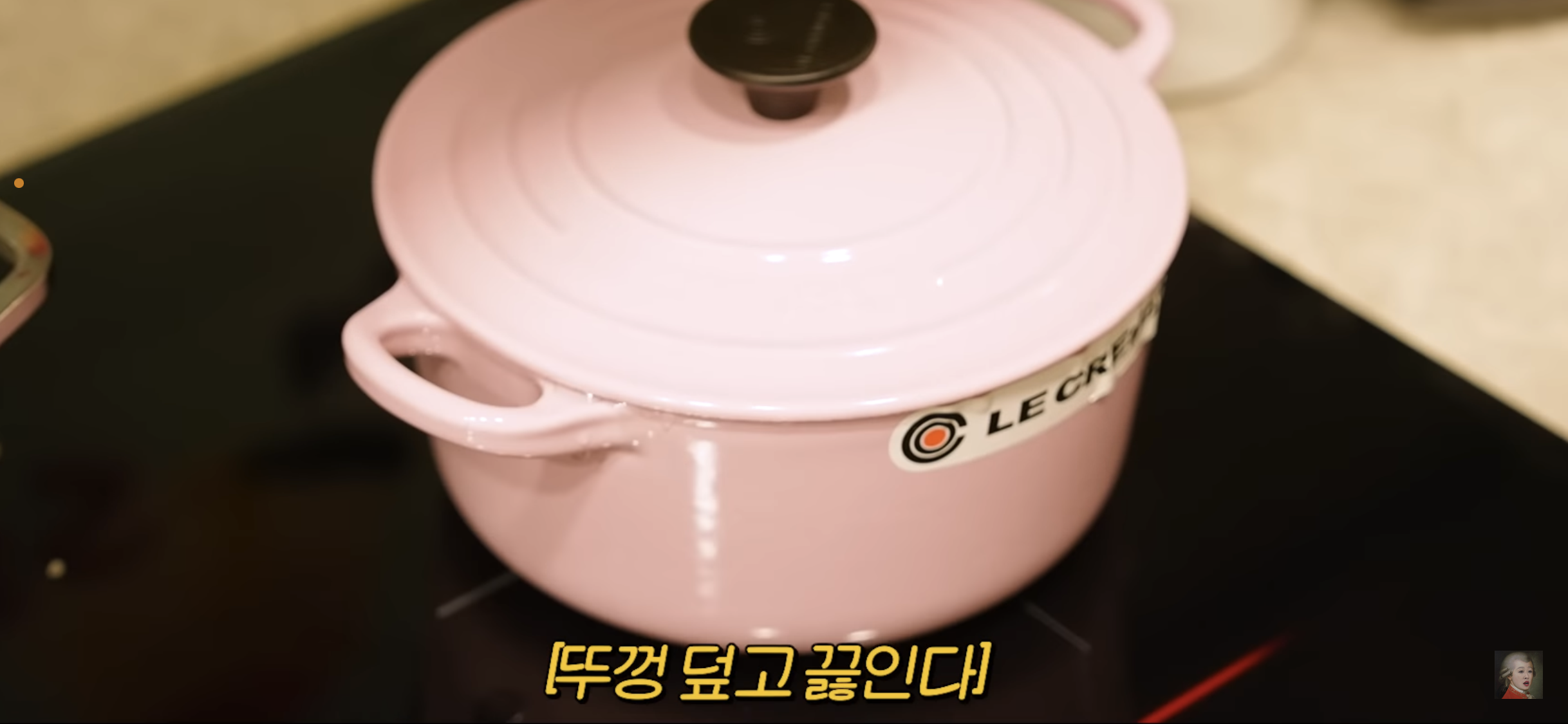 최화정주방아이템르쿠르제 핑크모델로 맛나게 멸치 전복솥밥을 휘뚜루마뚜루 해주기 , 아마도 추청되는 사이즈는 20cm 로 추정된다.