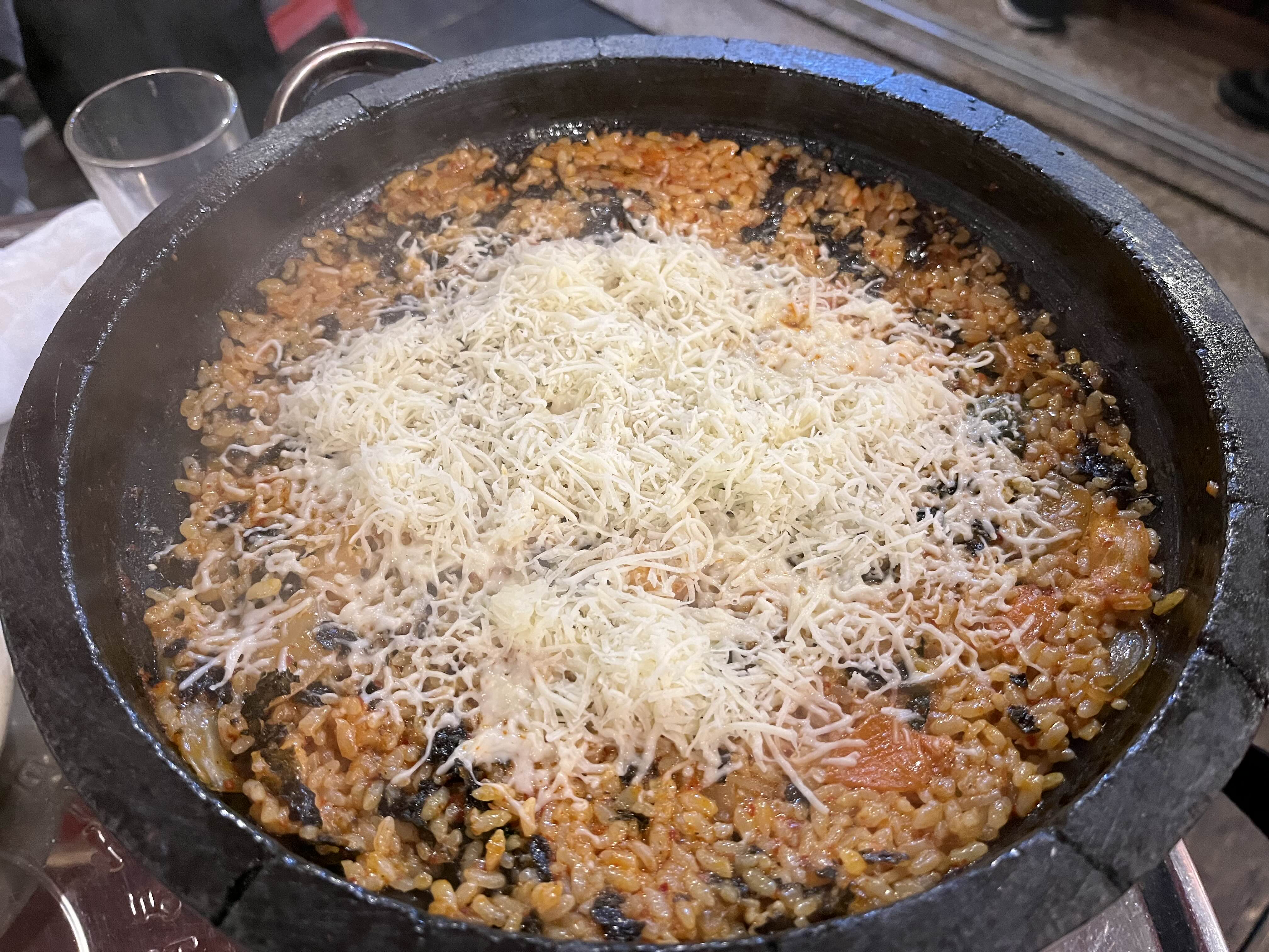 역시 마지막은 볶음밥.! 볶음밥은 전골이 남은양을 기준으로 최대로 볶을수 있는 양이 한계가 있다. 아무튼 많이 먹으려면 전골을 조금은 남겨두어야 한다.! ㅋ 아무튼 볶음밥 위의 눈꽃 치즈가 일품 ㅋ 그래도 진짜는 마지막 누룽지인데,