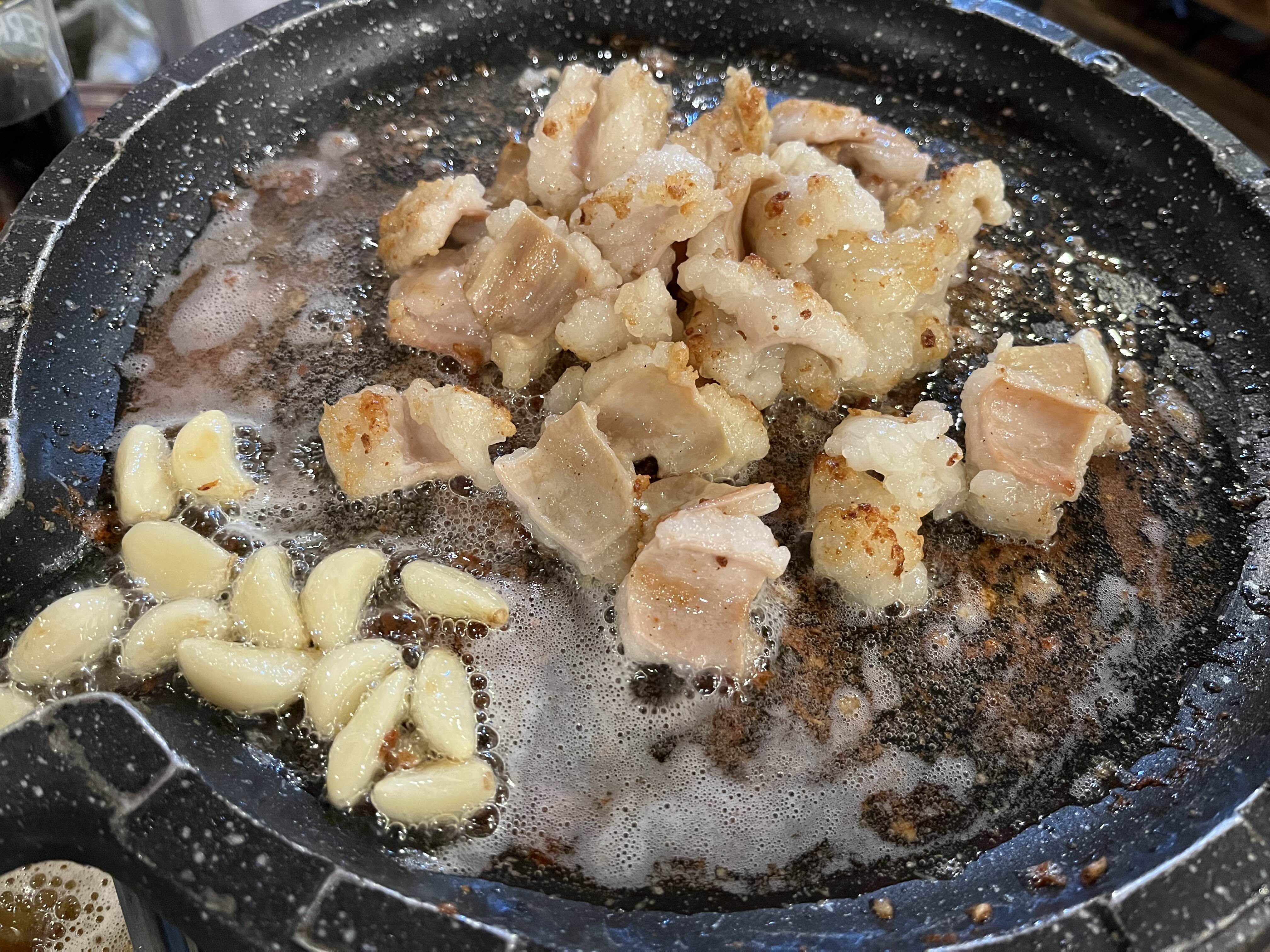 5.조금탄 부분은 전골에서 퍼 놓았던 육수를 뿌려 주면서 긁어 먹는다.!