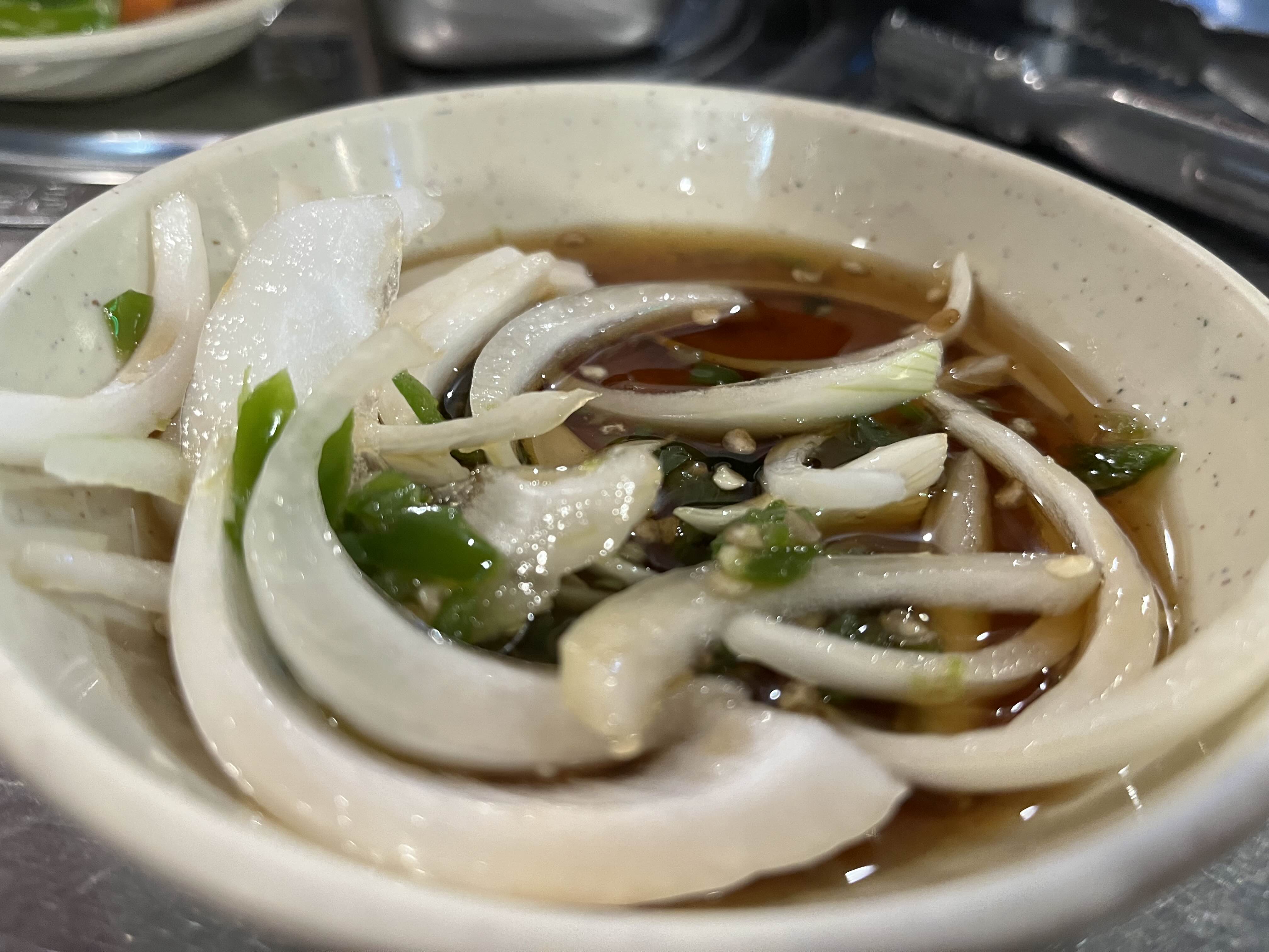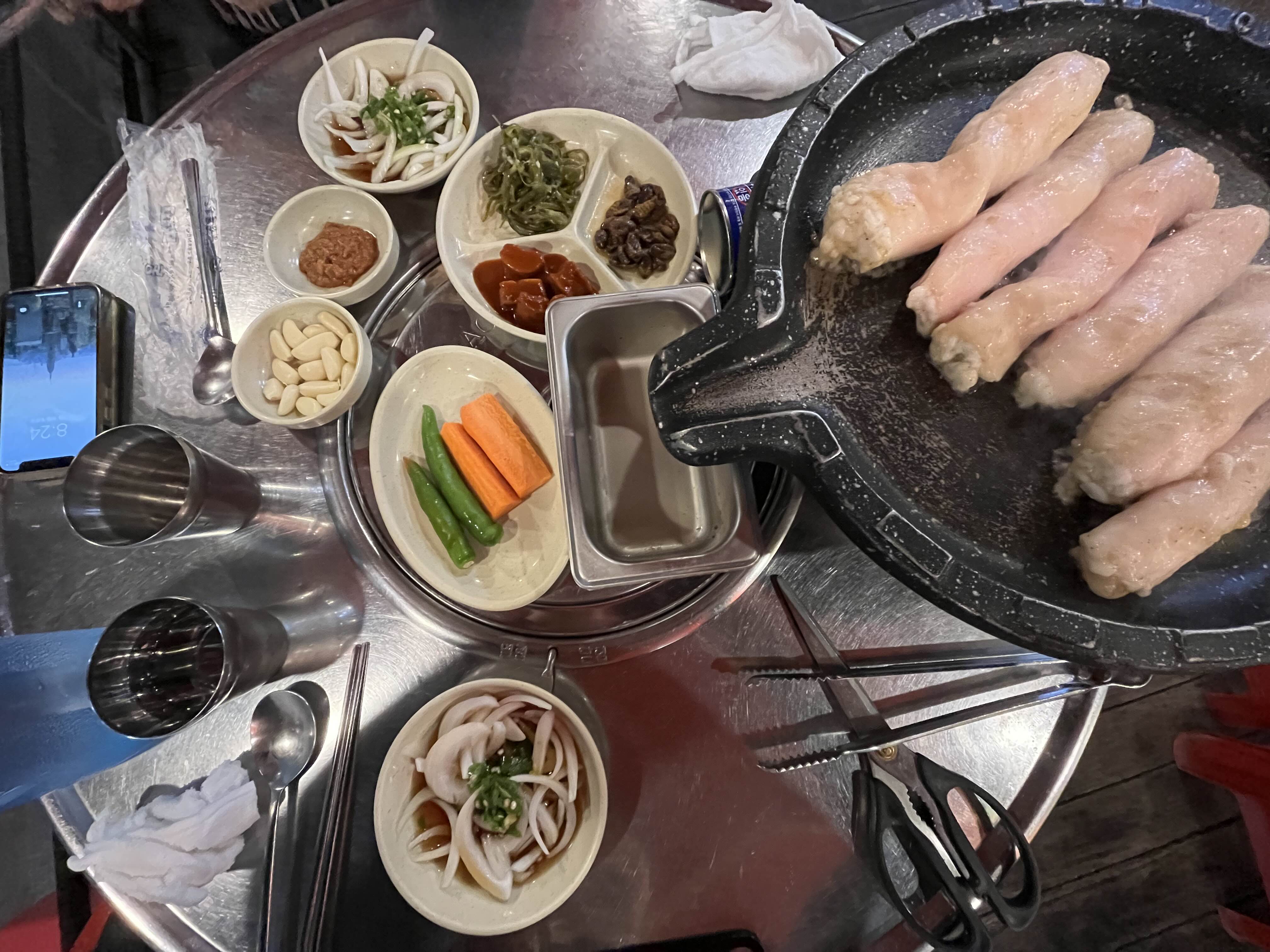 곱돌에 전골이 들어가 있고, 깻잎이 손으로 찢어진 느낌으로 흩뿌려져있다. 향이 깊고, 오히려 구운 대창보다 더 부드러웠고, 이게 진짜 오히려 더 맛난다!! 이걸 먹기 위해선 3인분 고기 그리고 2인분을 먹어야 하기에 3명을 추천ㅋ 전골은 멥다고 하는 인원이 약간 있음.