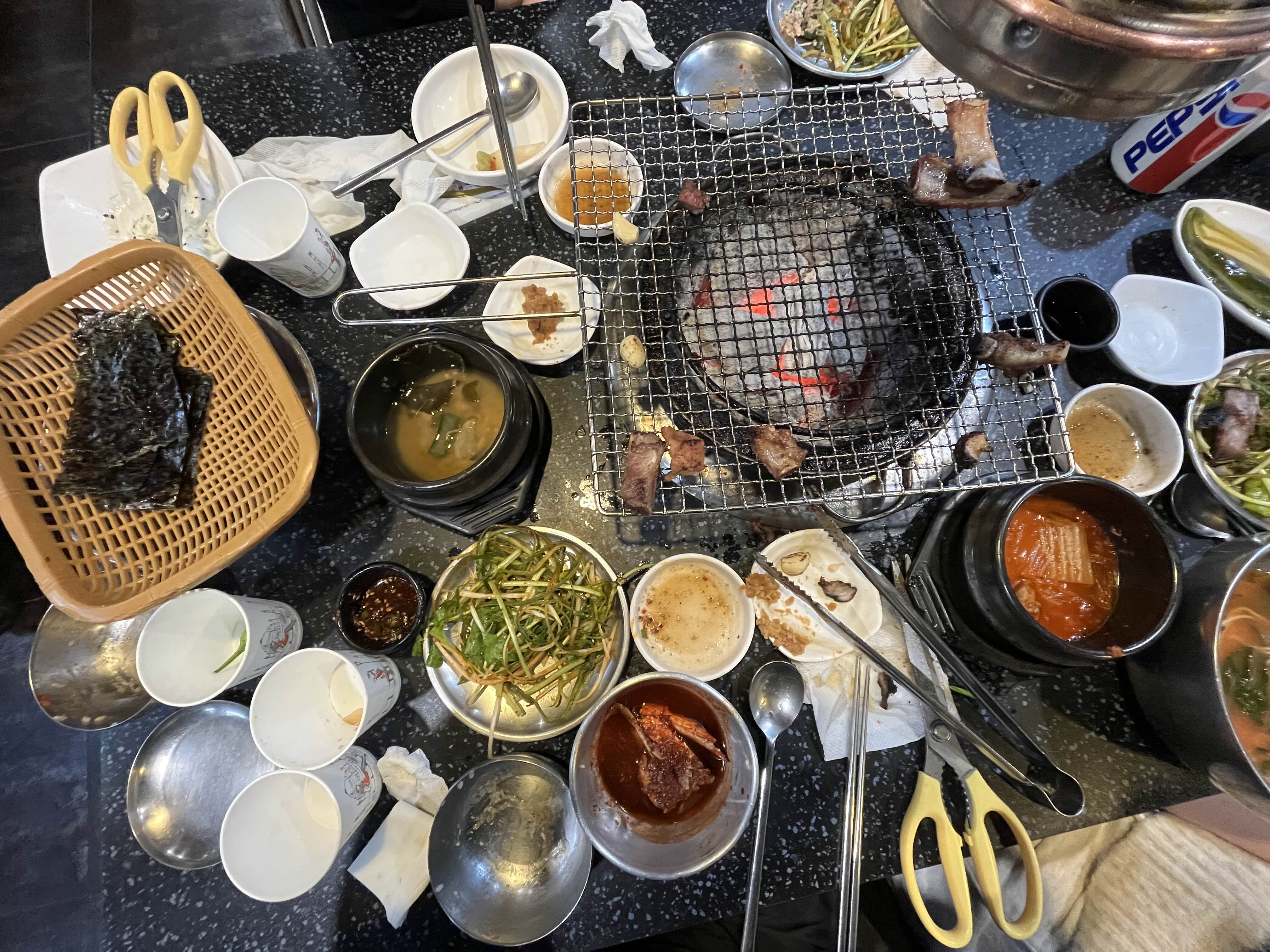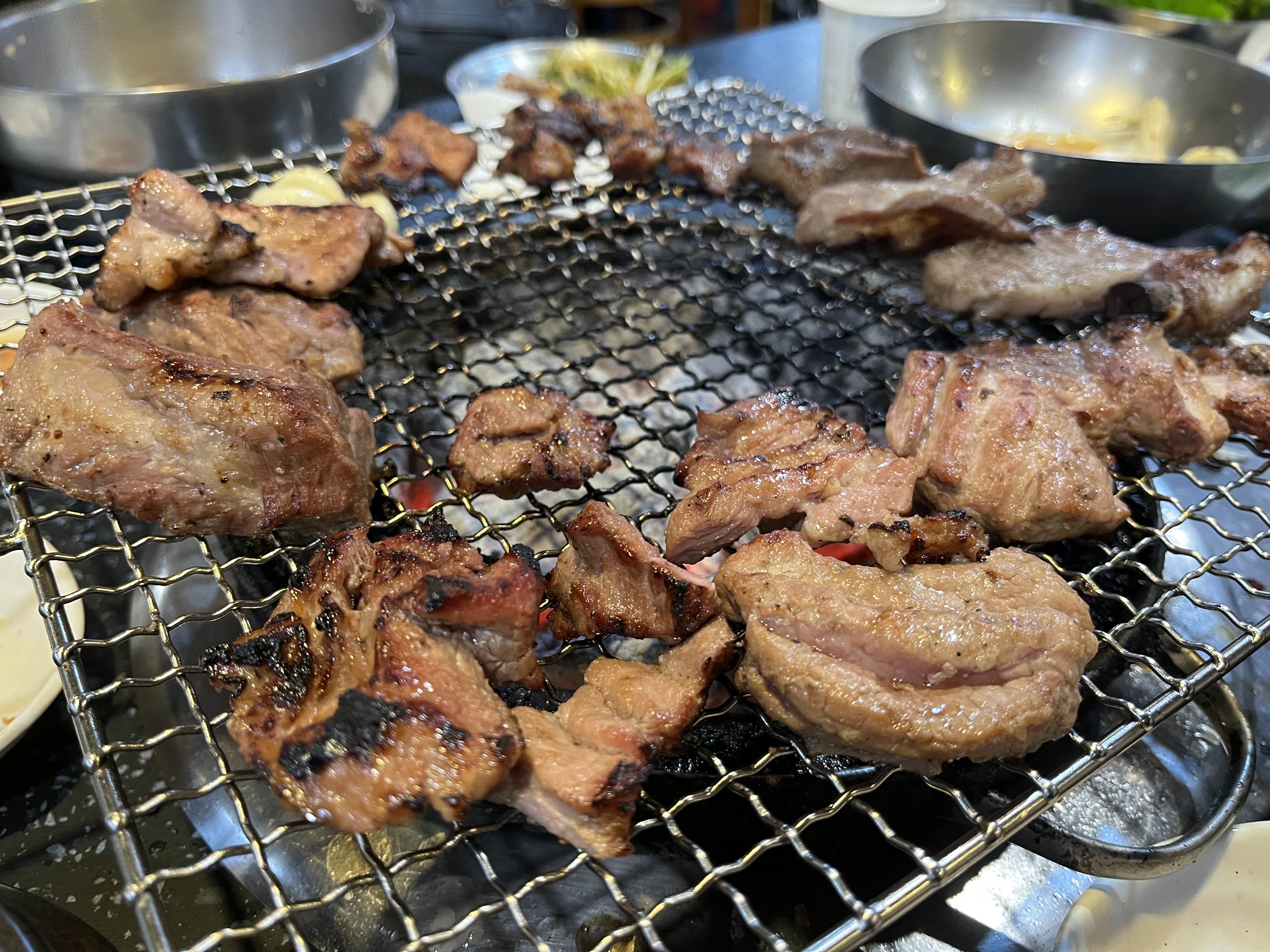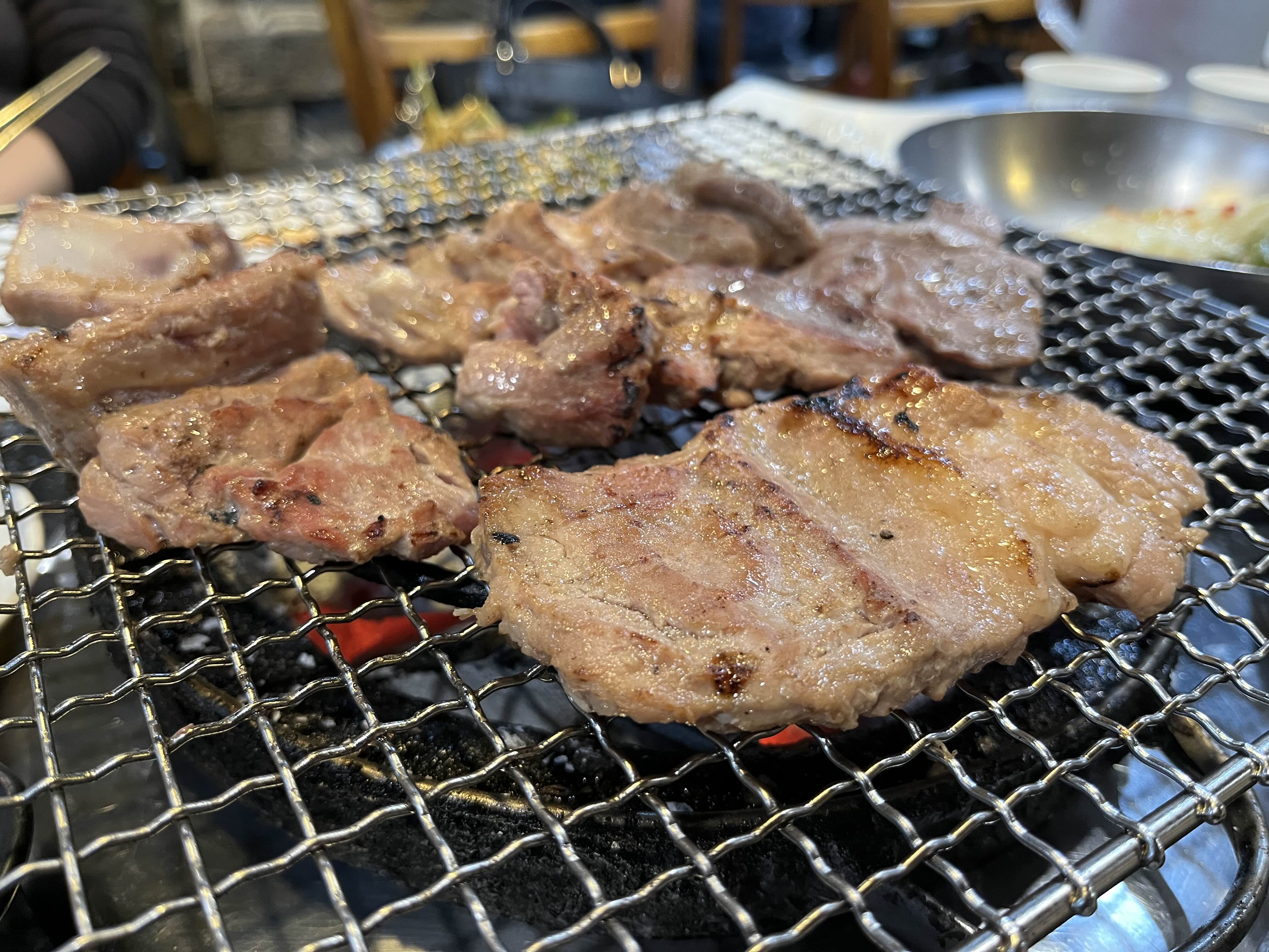 찌개가 김치찌개 된장찌개가 제공된다.! 김찌찌개도 맛나지만 된찌가 더 맛난다 고기도 들어있고ㅋㅋ 가장중요한건 탄수화물인데 밥이 맛있다!! 고봉밥은 아니지만 쌀이 나름 잘 지어진 밥이다! 양념개찜이 조금 나오는데 이것마저 맛있다! 양이작아서 문제지만.. ㅋ 나는 고기구우며 미리 밥한공기를 매운고추랑 먹어준다!