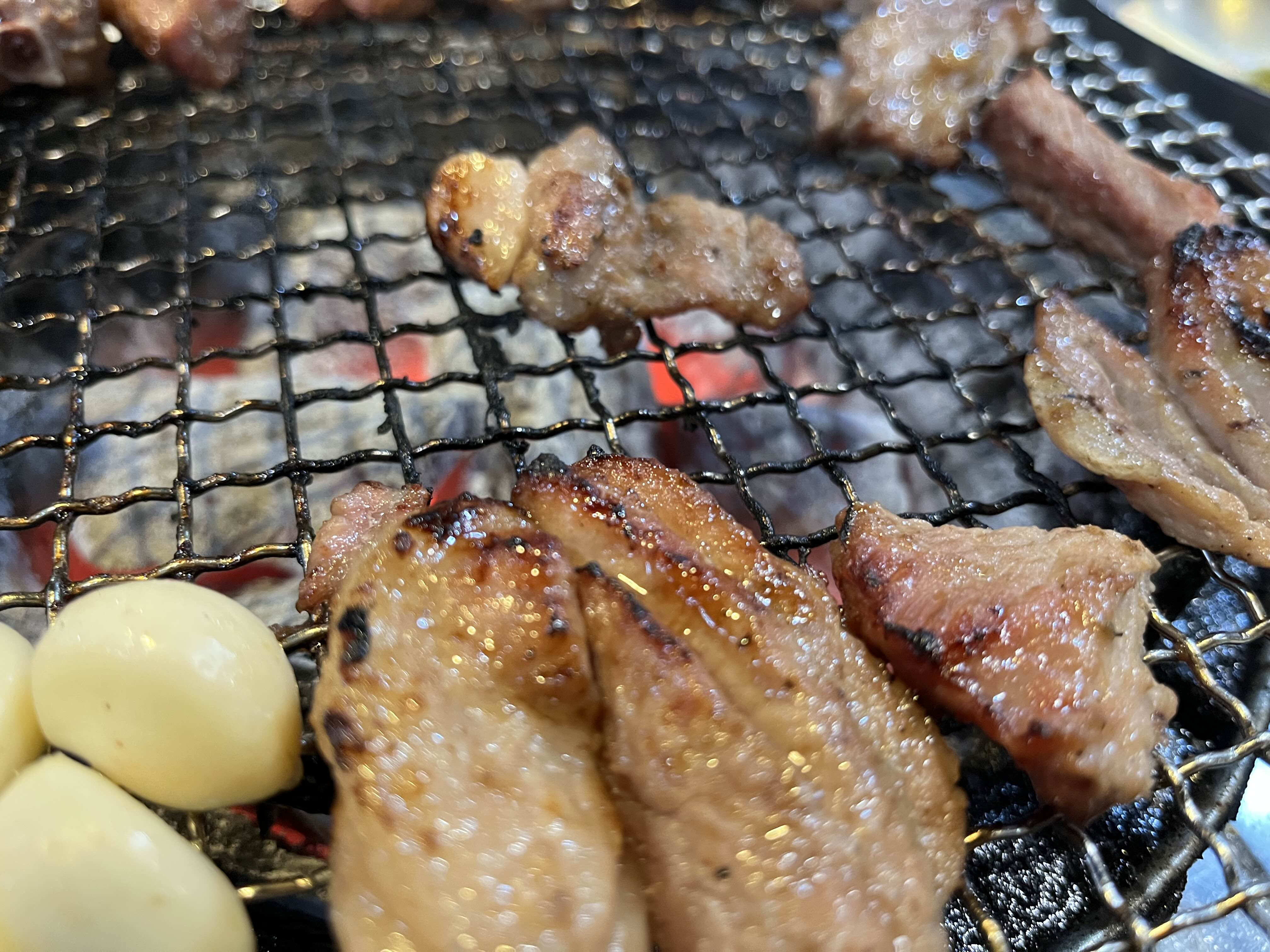 갈비는 부위에 따라 약간 호불호가 나뉠듯 하다.! 아주 야들한 부위가 있고 또 상대적으로 질긴 부위가 느껴졌다. 그리고 양념이기에 초보자들은 쉽게 태울수 있다.! 숯도 좋고 화력도 좋아서 조심해야한다!