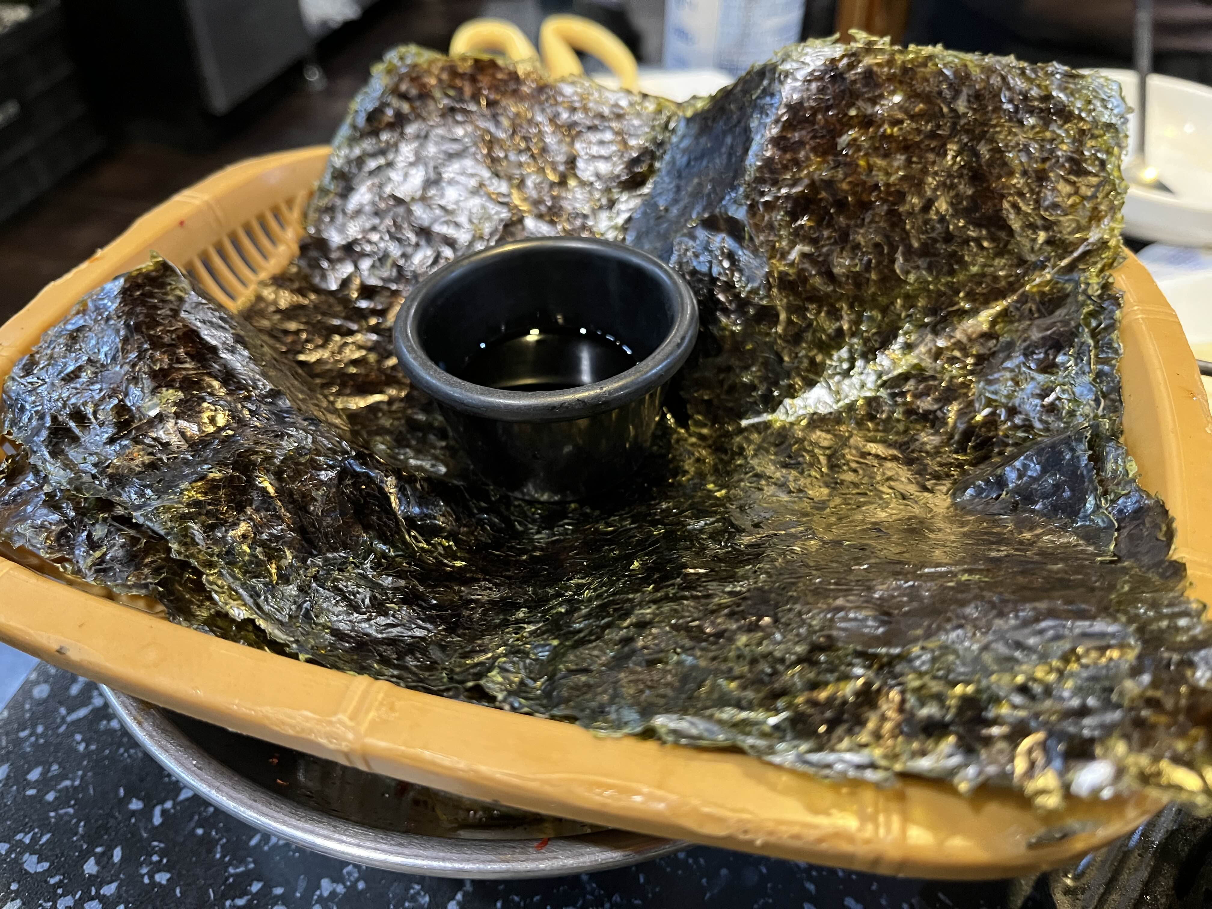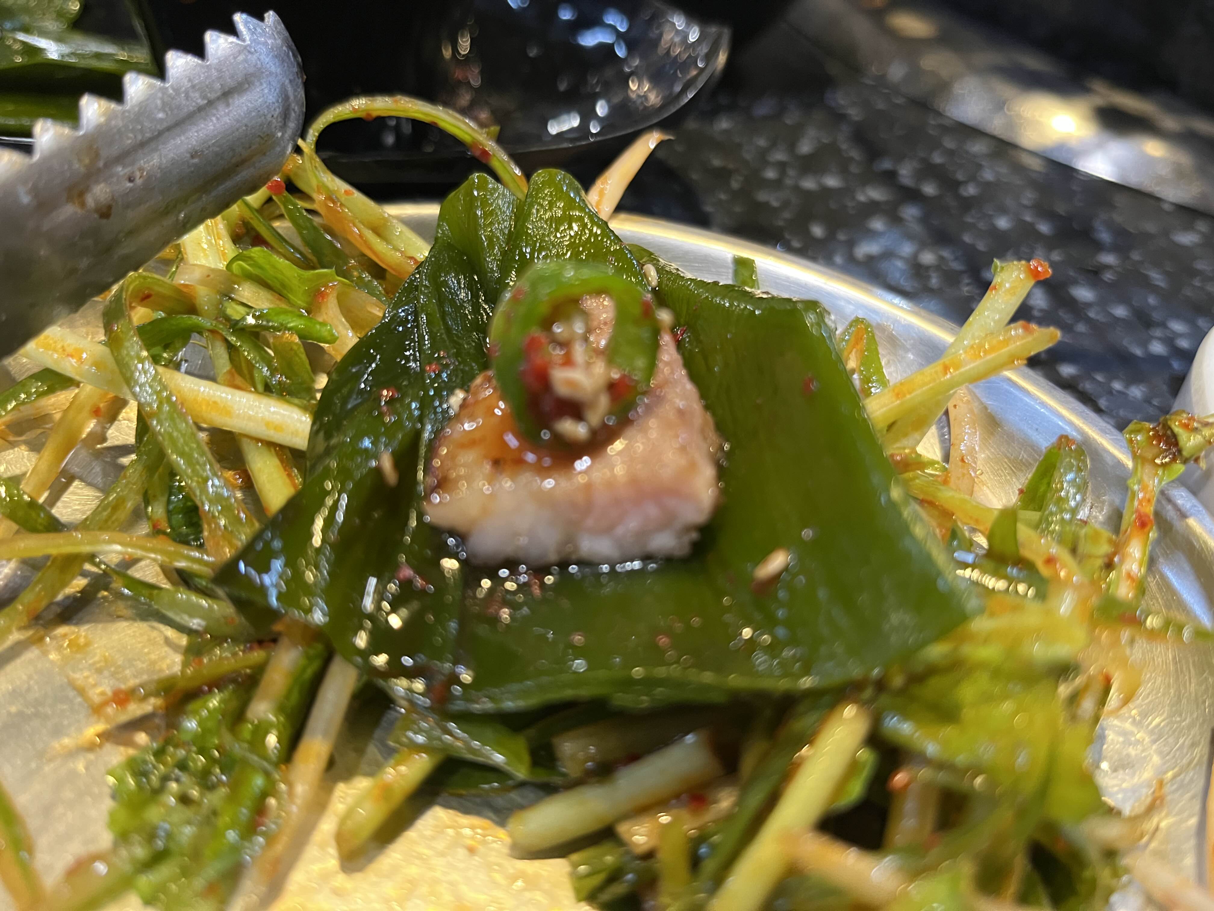 그렇게 돼지갈비가 익혀지고 그리고 쌈을 한번싸먹는데 앞서 한공기 후딱하고도, 넉넉하게 맛이났다! 다시마랑 액젓이 이곳의 킬포다!!