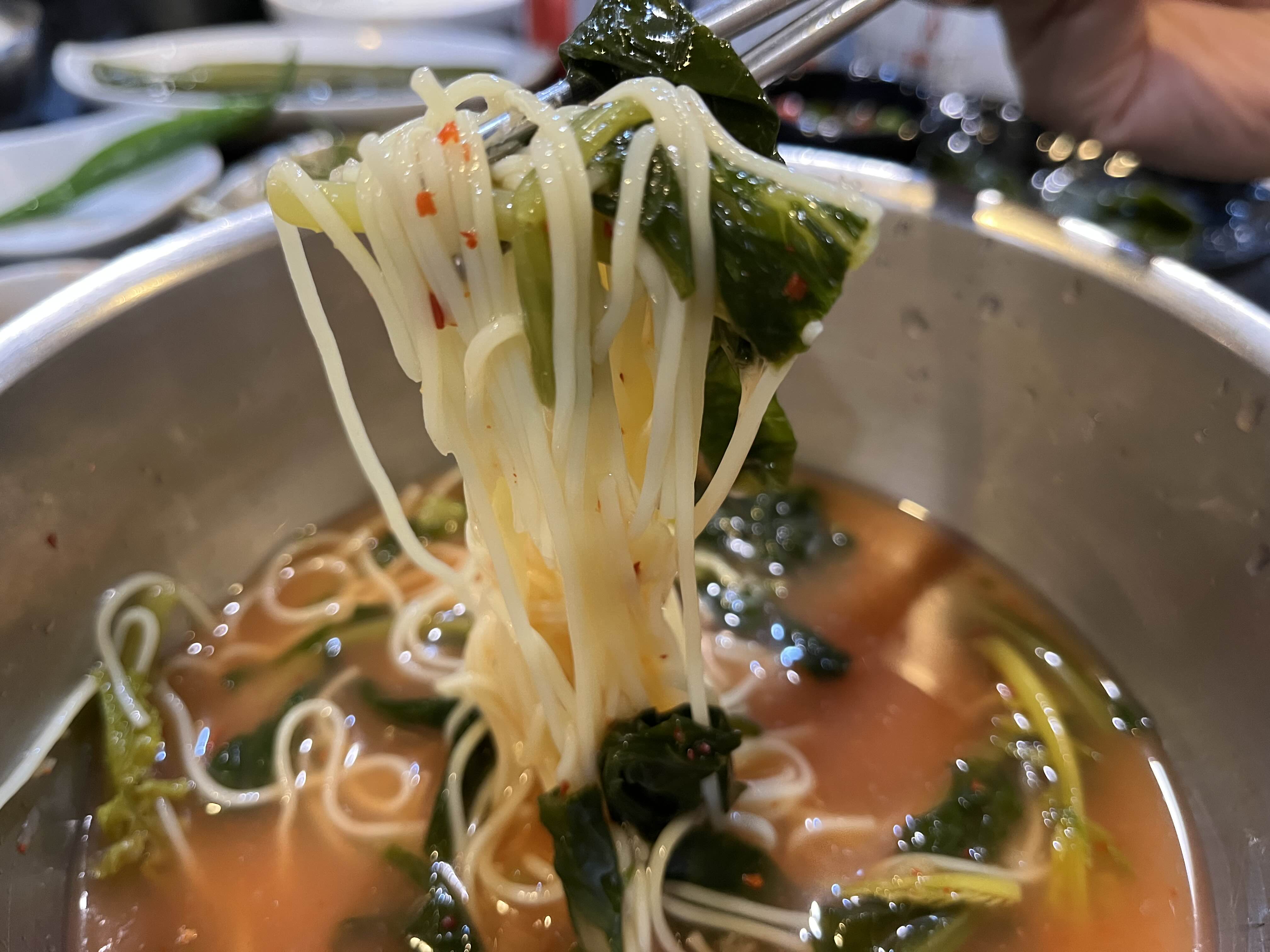 이곳의 별미! 나는 냉면파이지만 국수도 맛있다. 그런데 이게 국물이 캬… 이거 한숟갈 마시면 고기가 다시 들어가는 마법이 일어나기에 꼭 고기를 1인분은 남겨 놓아야 한다!