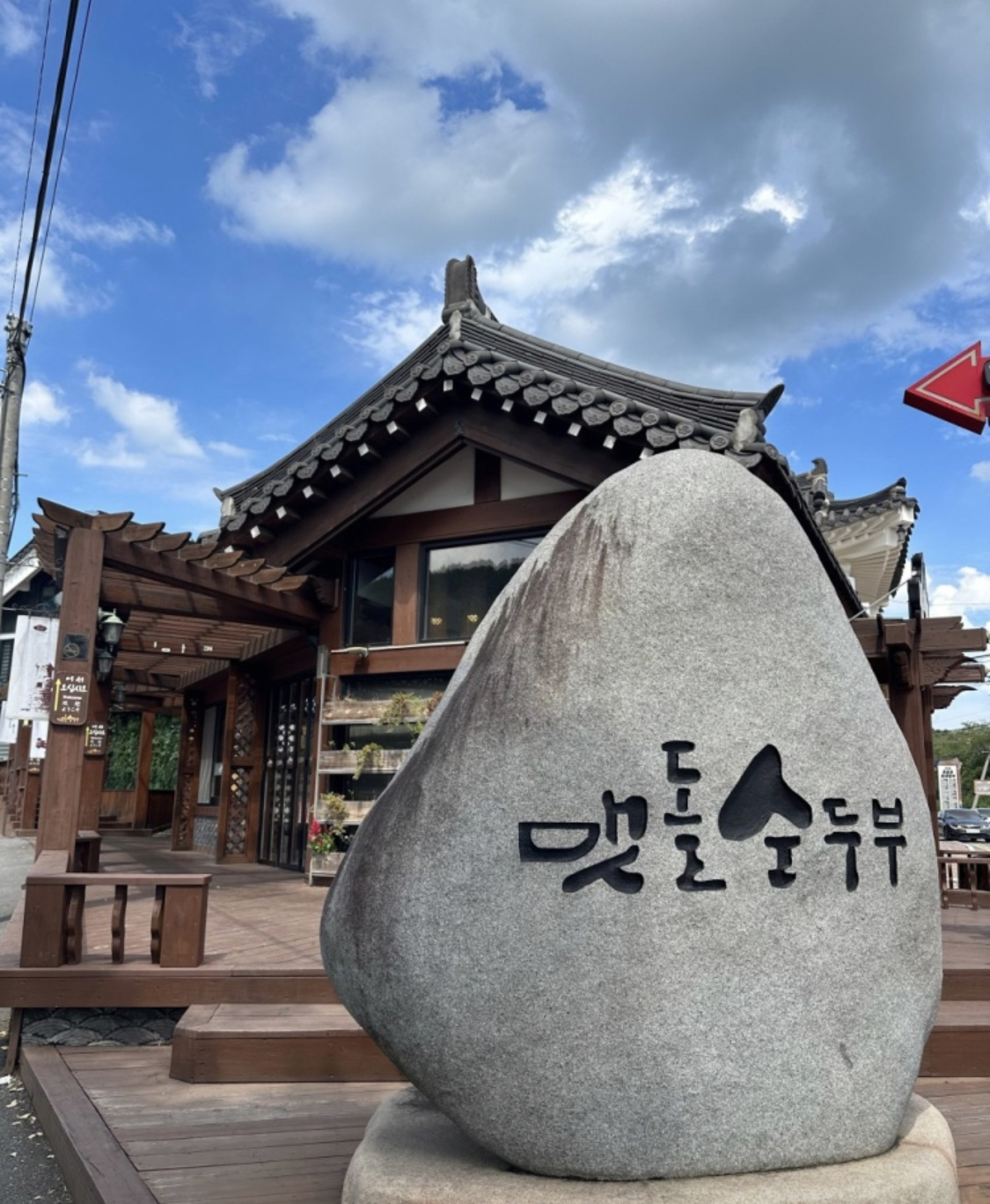 맷돌순두부 가게 입구 맷돌순두부상차림