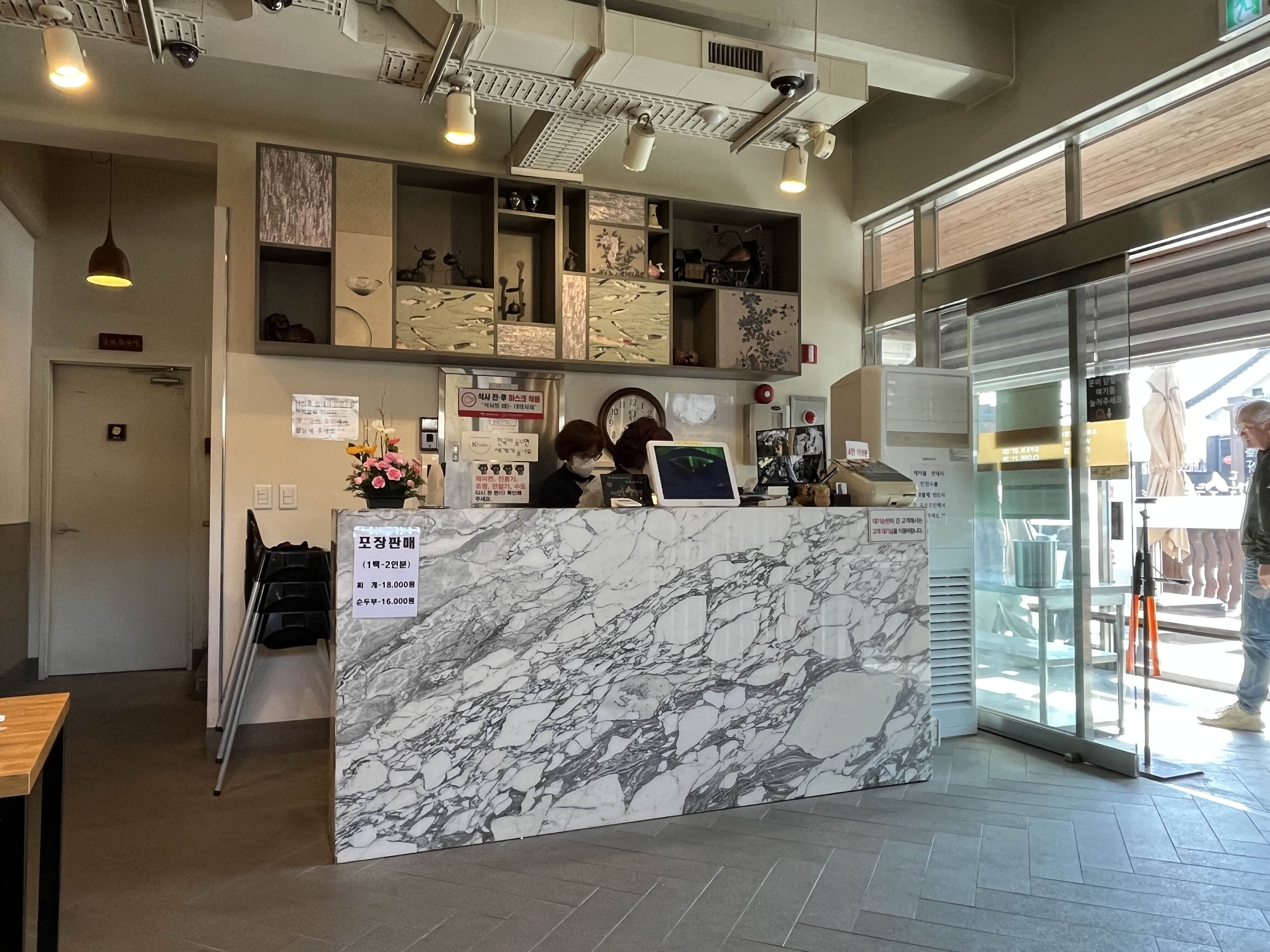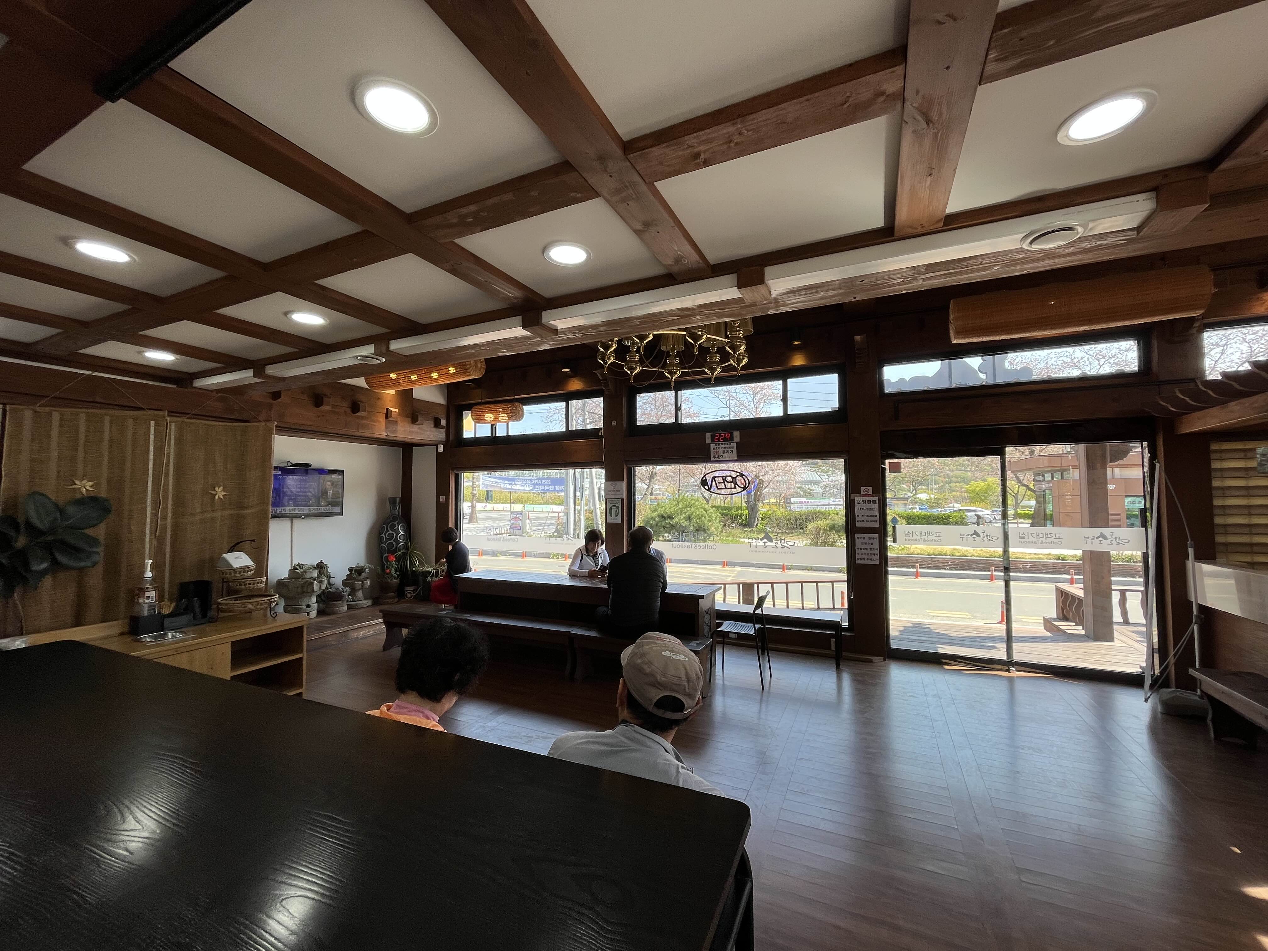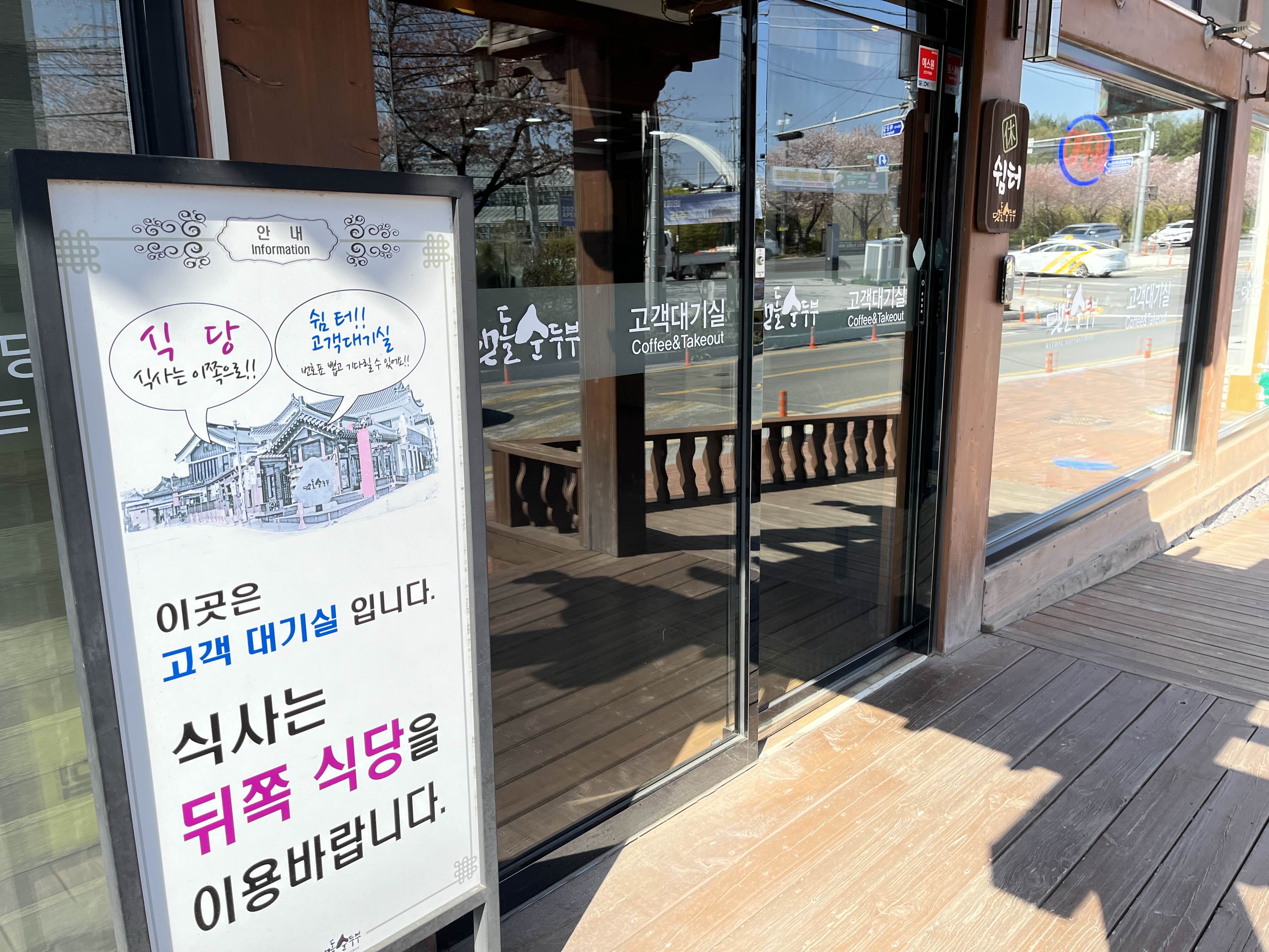 맷돌순두부는 입구쪽에 대기장소가 있다. 이날은 봄이라 사람들이 대부분 밖에서 대기중 아마 겨울이나, 더운날은 밖에서 대기하기 어려울듯.