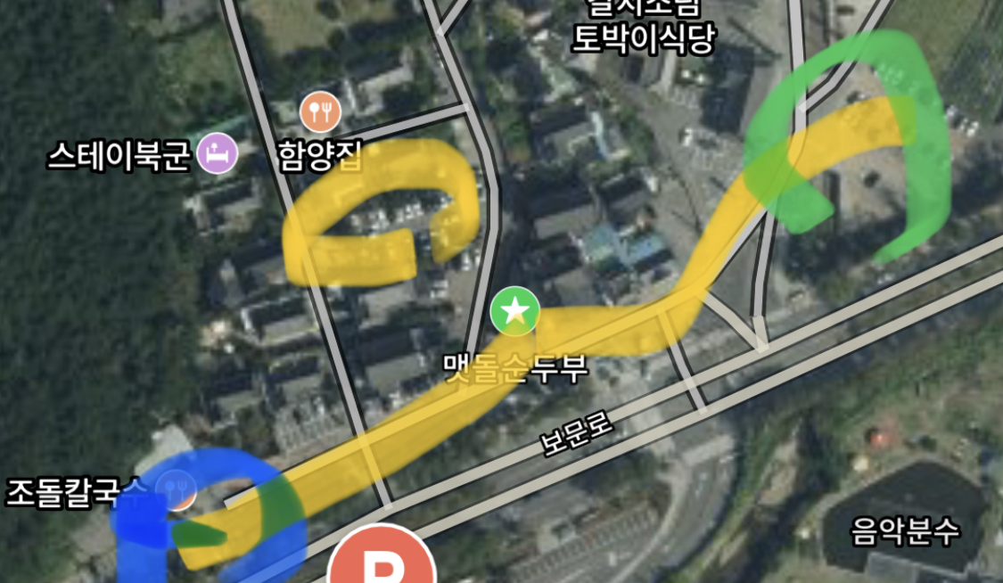 맷돌순두부 주차경주 보문단지 맷졸순두부 가게 주차는 3곳이 가능하다. 거리는 맷돌전용이 가장 가깝다(바로앞)