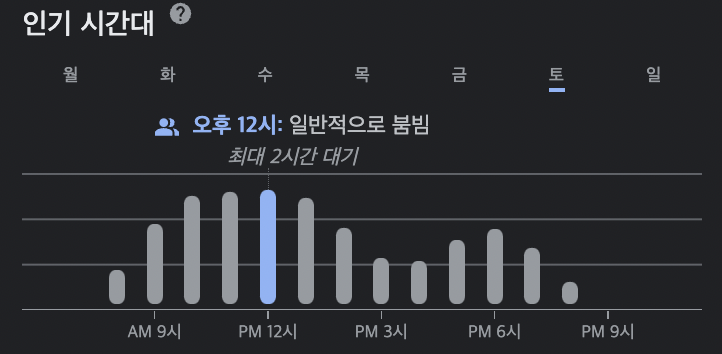 (출처는 구글)맷돌순두부에서도 브레이크 타임이 있기에, 요일별 조금이라도 사람이 덜 모이는 시간대를 알아보자.