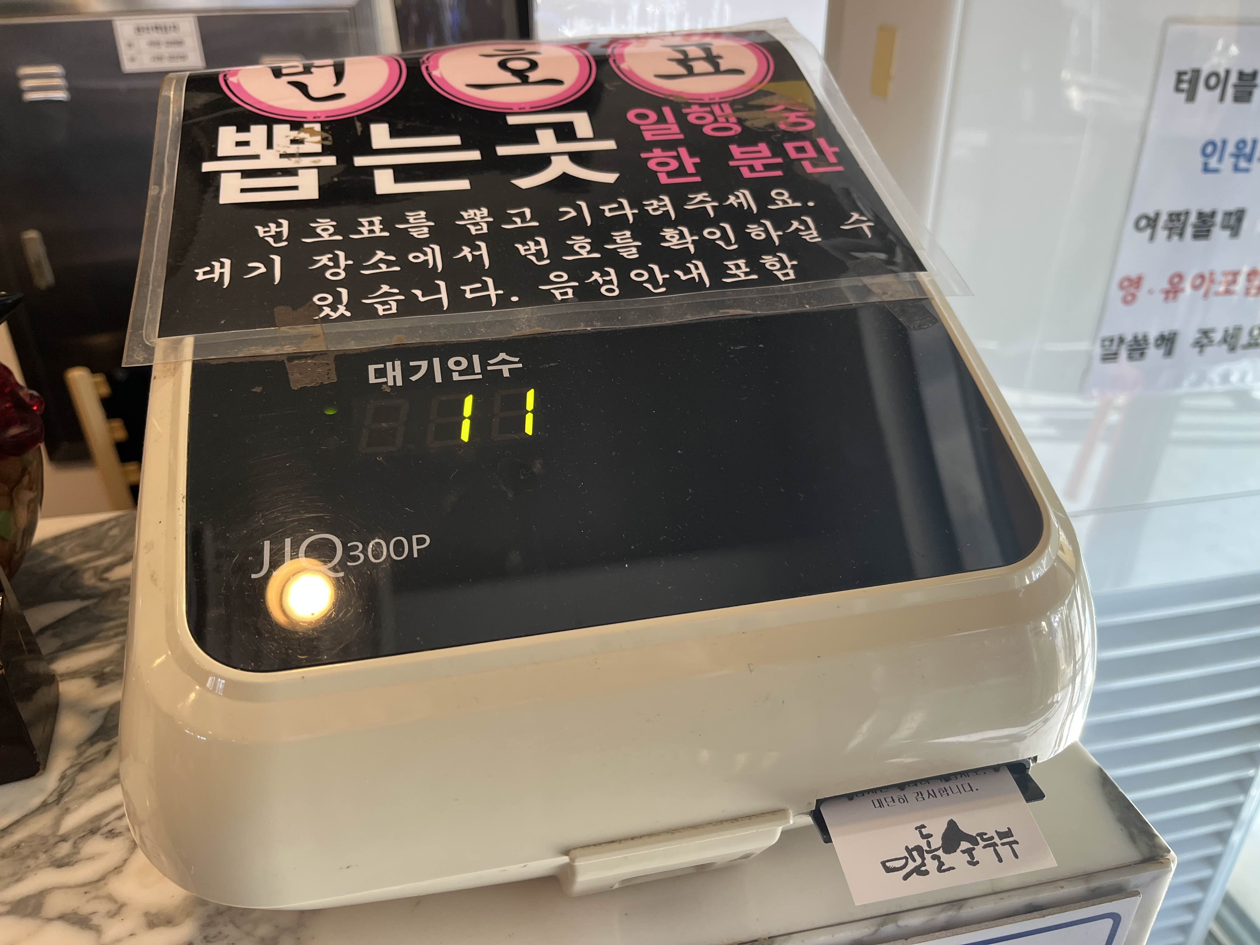 입장은 번호가 보이는 전광판이 있고 맷돌순두부대기장소