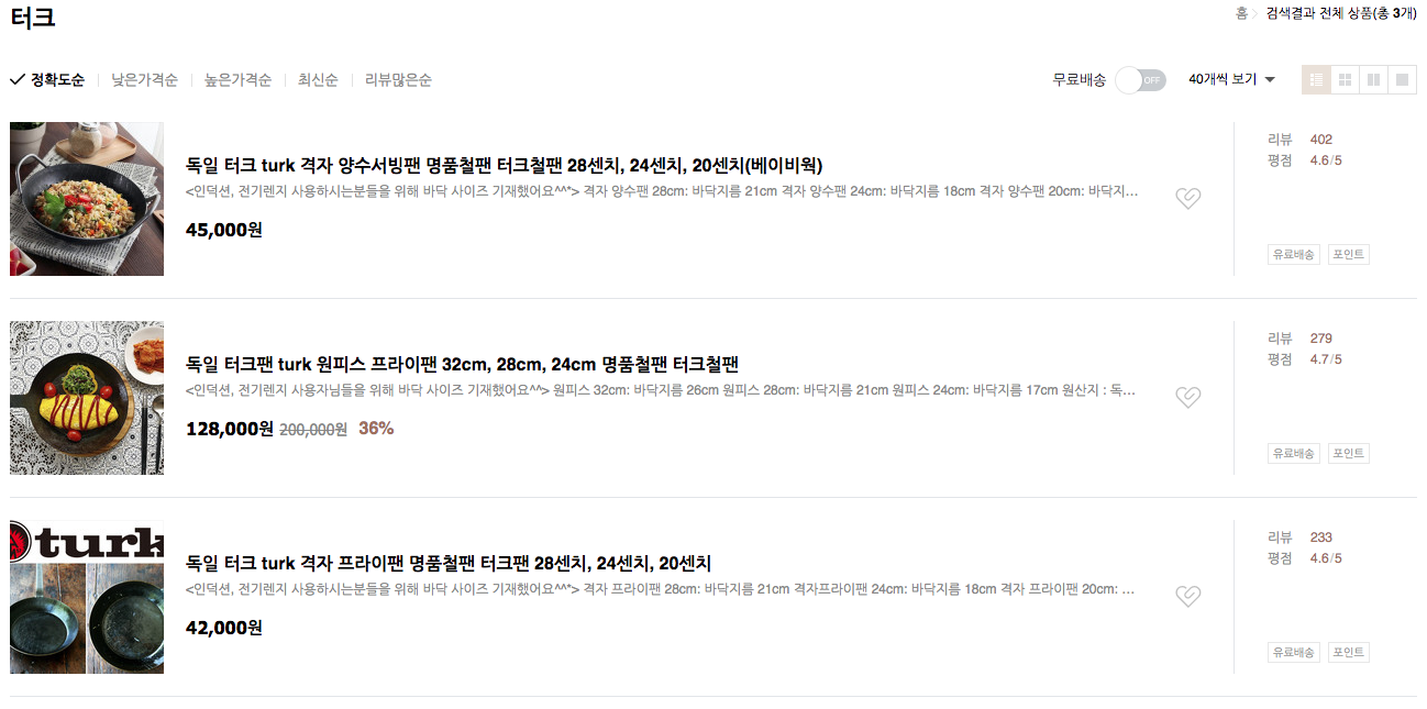 터크는 정말 좋은 팬으로 세척도 쉽고, 모양도 이쁘다..