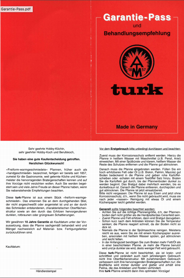 삽과 프라이팬은 큰 썰매 망치를 사용하여 제조되었으며이 제품은 곧 현지 지역을 넘어 널리 알려지게되었습니다.터크 회사 http://www.turk-metall.de링크