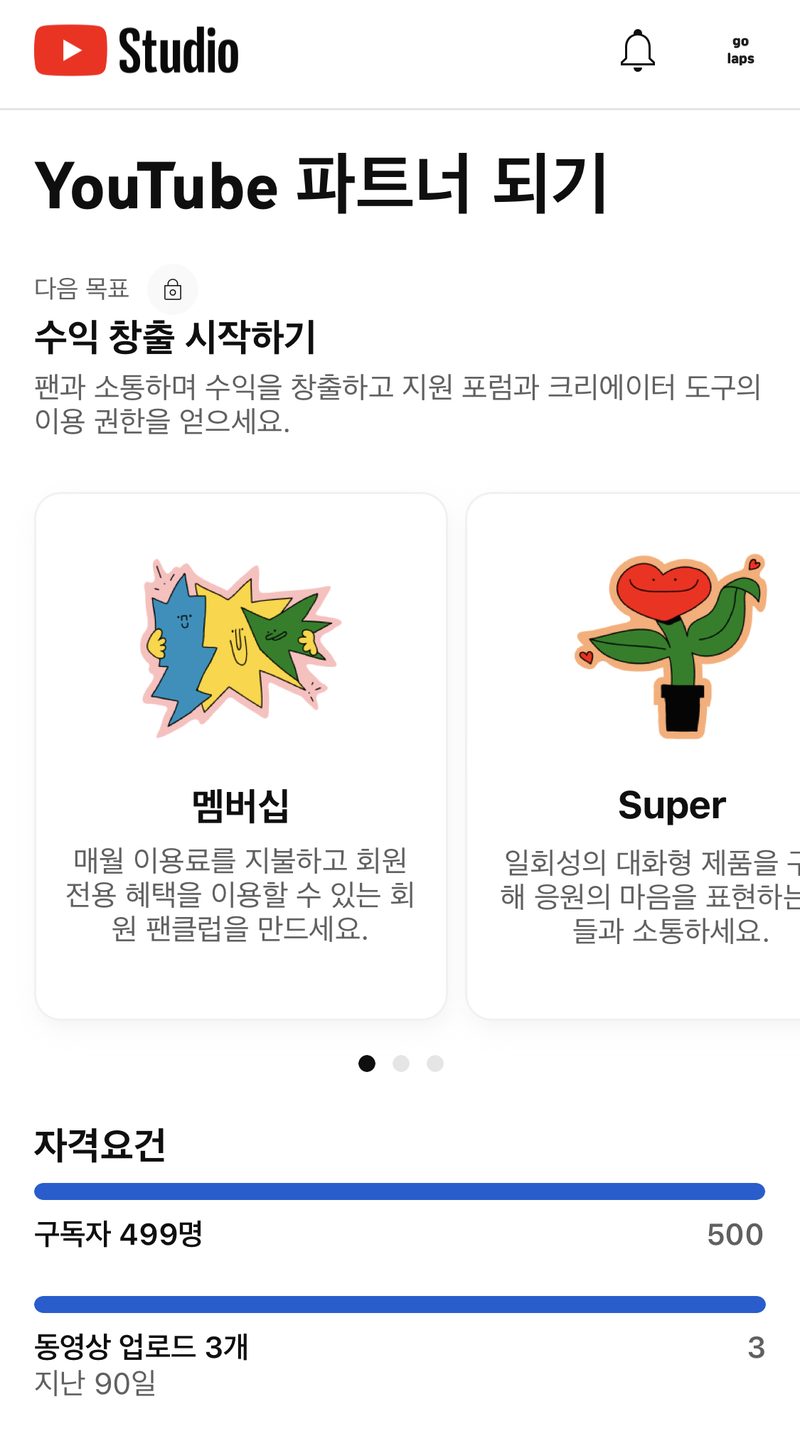 지난 90일간 공개 동영상 업로드 3회