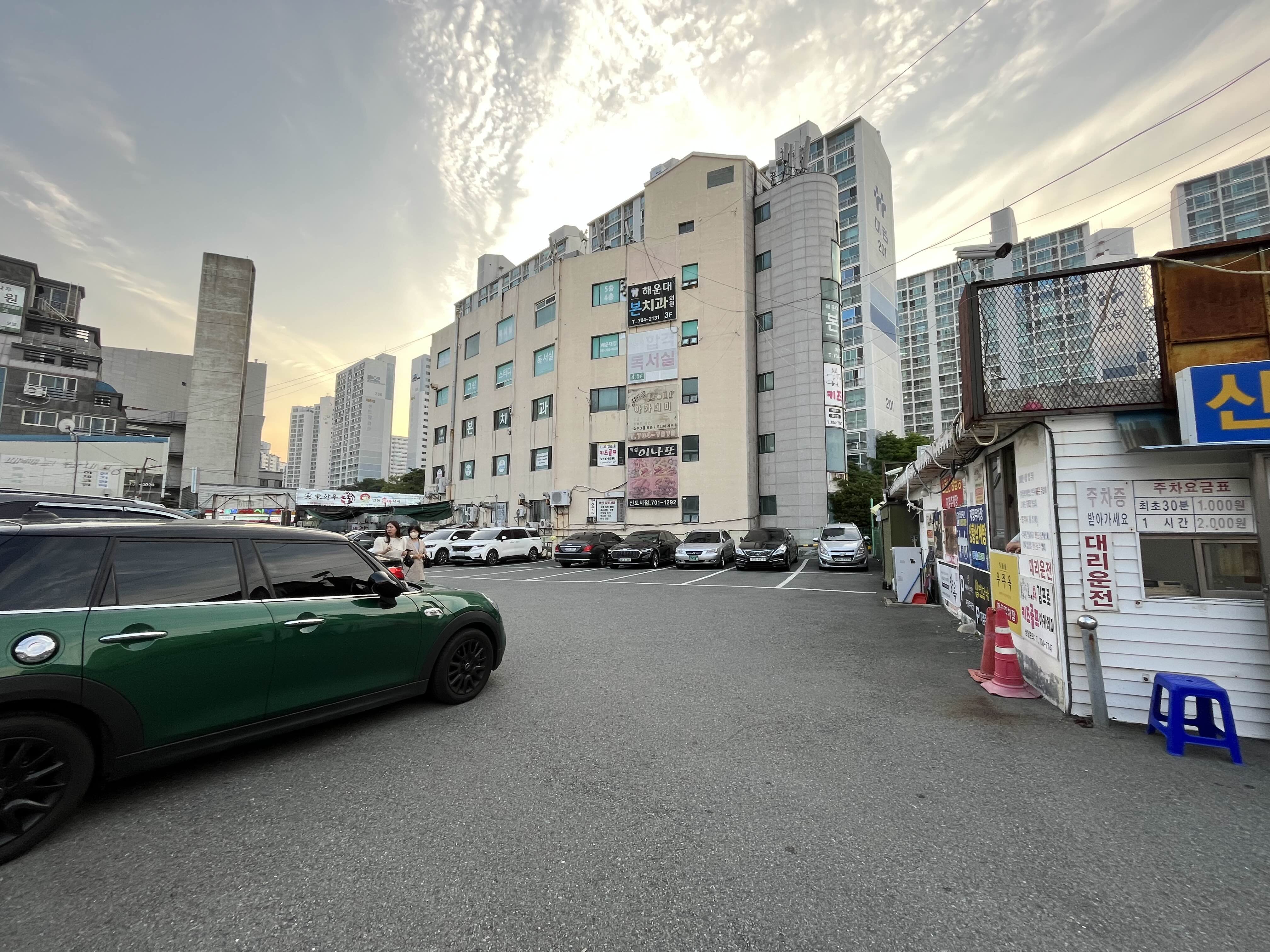 해운대 수조밀면 주차밀면집에서 5분거리의 주차장에 주차를 하고 표를 받아서 도장을 찍고 제출하면 된다. 초여름 하늘이 맑았다.