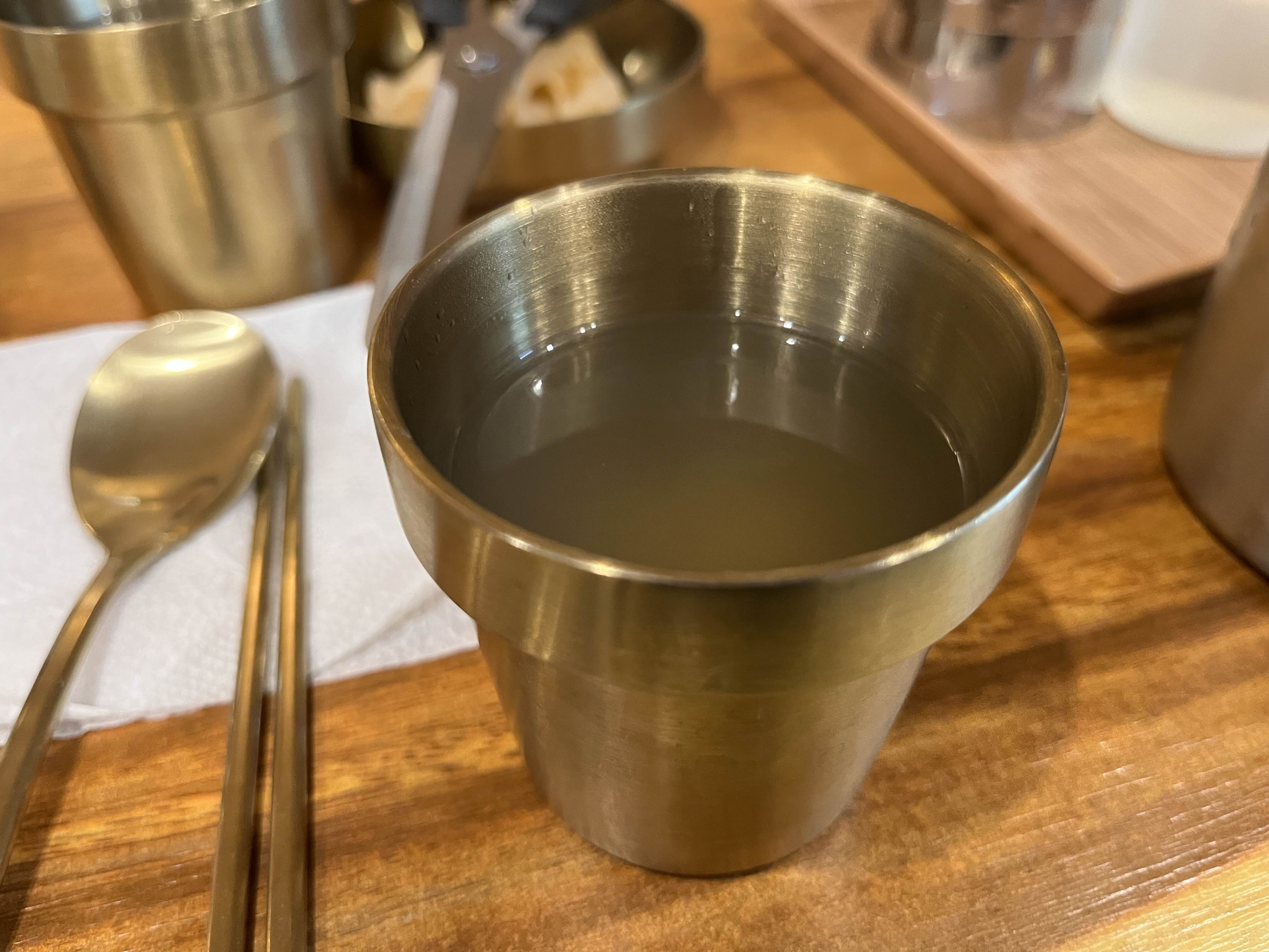 비빔밀면은 소스가 듬뿍 올라져 있고, 얼음 육수가 조금 깔려 있다. 나는 육수를 2-3잔은 마시고 또 추가로 부어서 비벼먹기도 한다.