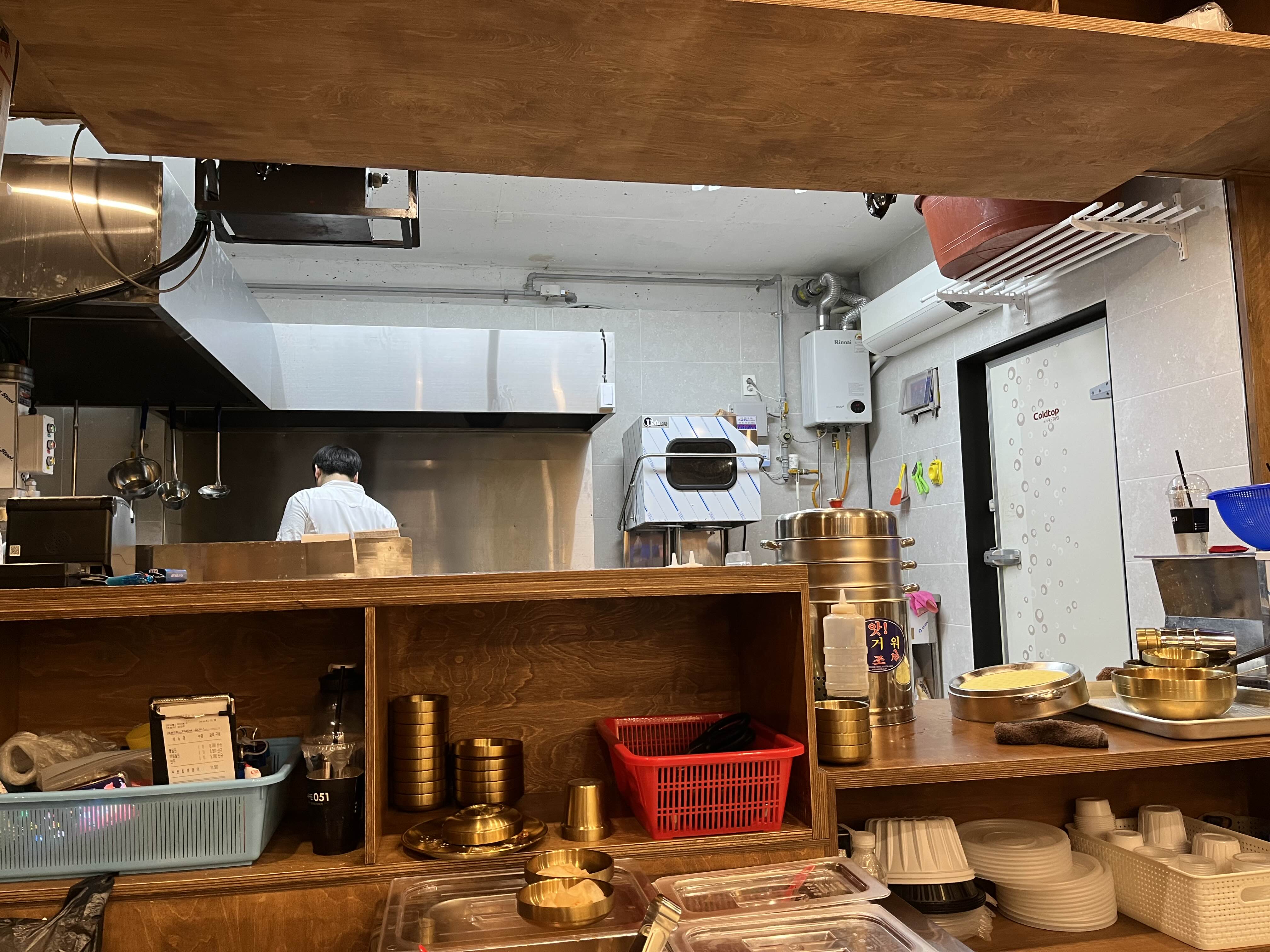 가게 내부 구조가 조금 특이한데, 길가에 있는데 ㄱ과 ㄴ 을 합쳐놓은 구조?.. 입구가 2곳이다. 오픈주방으로 요리사분들의 뒷모습을 잘 볼수가 있다.