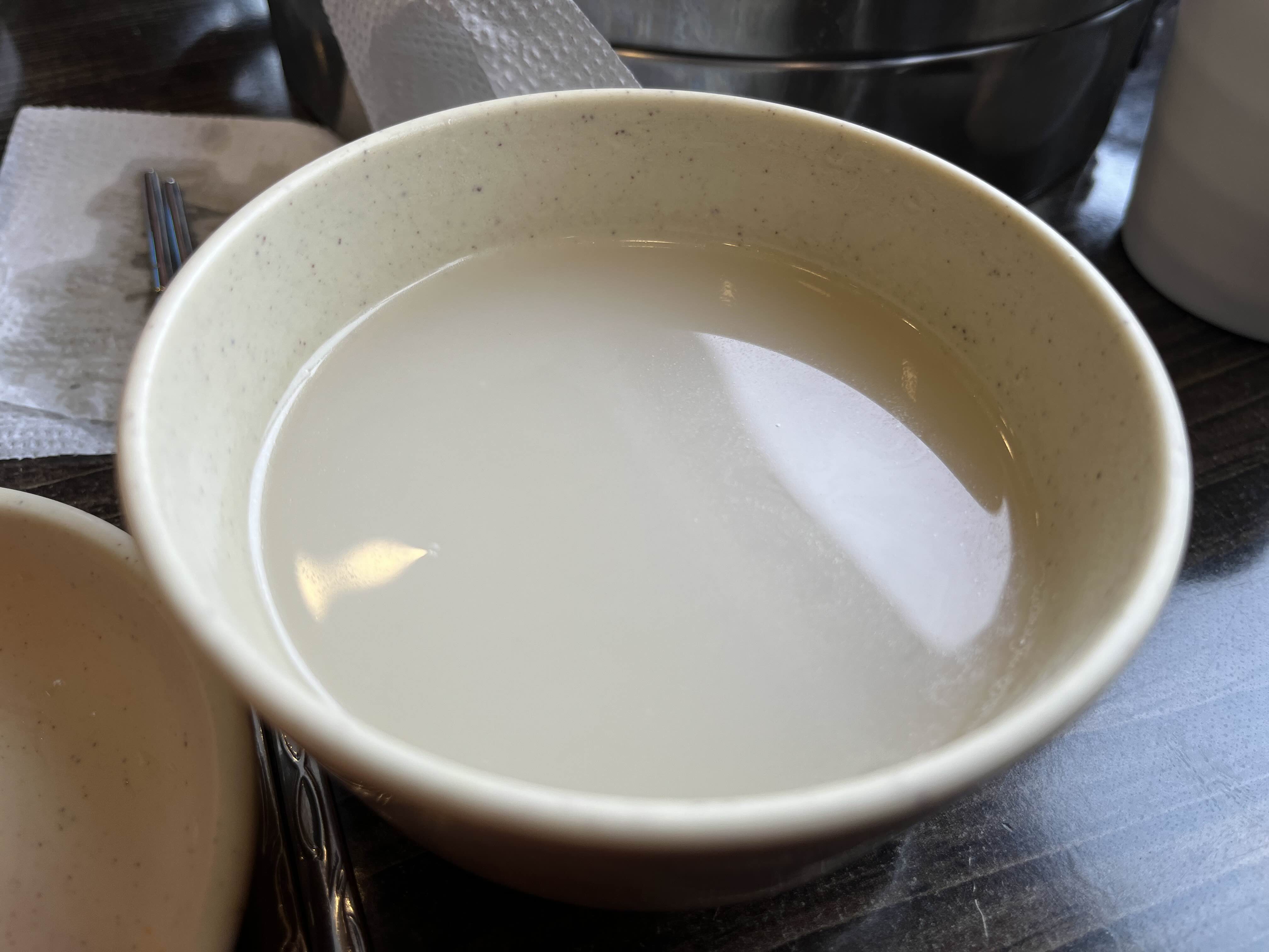 모든것의 기본이 되는 육수, 물보다 먼저 육수를 받아 마셔보았다. 물과 함께 셀프인 부분은 숙지하자. ㅋ 깊은 사골 육수맛이 약간은 3분 육수나 인스턴트 맛이 조금 강하게 느껴졌지만 마실수록 깊은 맛이 느껴졌다.! 난 육수를 일반 컵이 아닌 국그릇에 받아서 3번이나 마셨다.