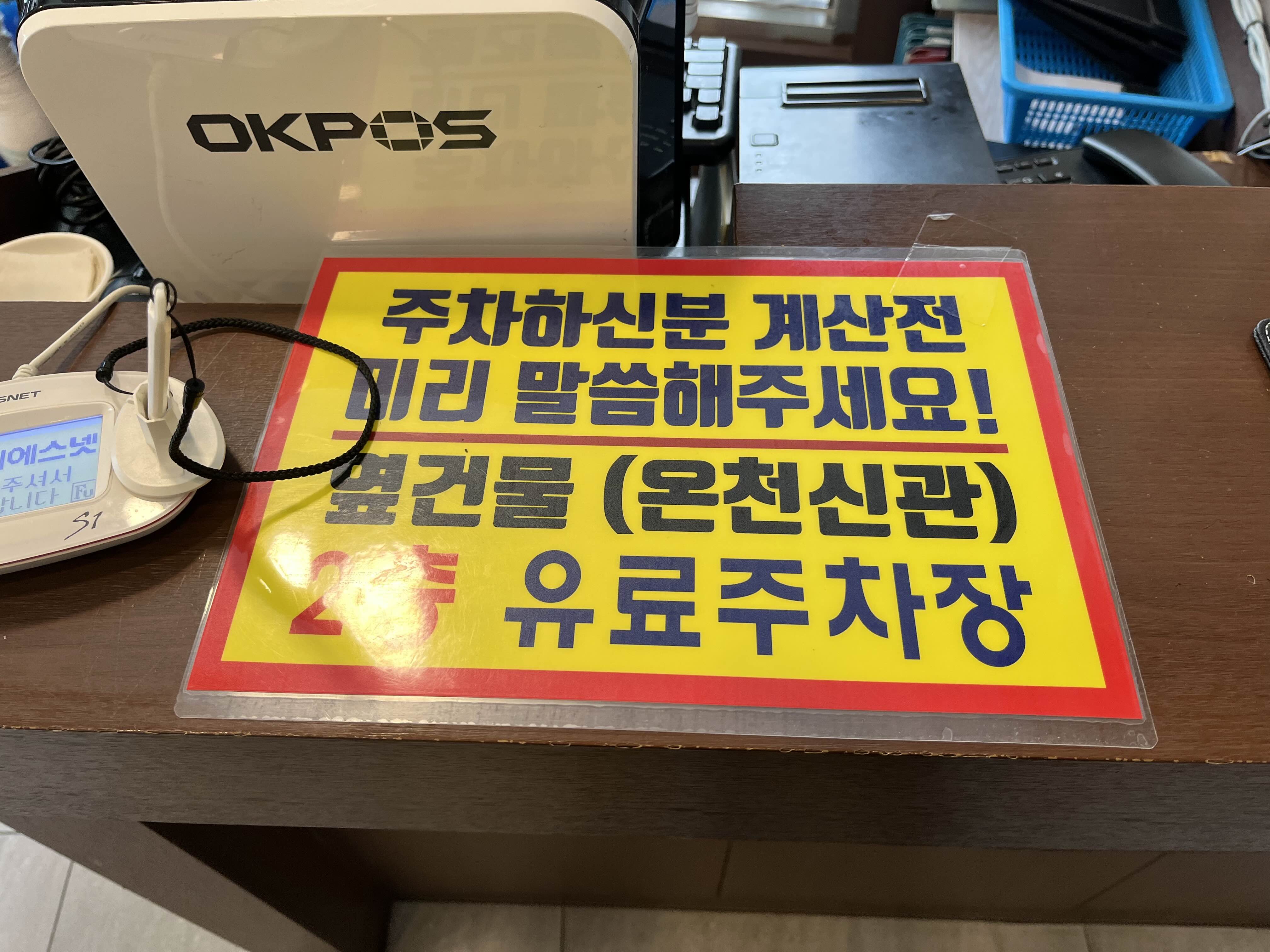 해운대 밀면 주차주차장은 없고, 식사대금에서 1천원 할인을 해주신다. 생각보다 빠른 회전에 주차비도 많이 나오지는 않는다. 다만, 길가에 주차를 해도 되긴하는데(빈자리가 있다면) 저멀리 구청 앞 사거리에서 이글아이가 내 번호판을 노려보고 있다.! 옆건물 한우리가에가 주차하는 것을 추천한다.