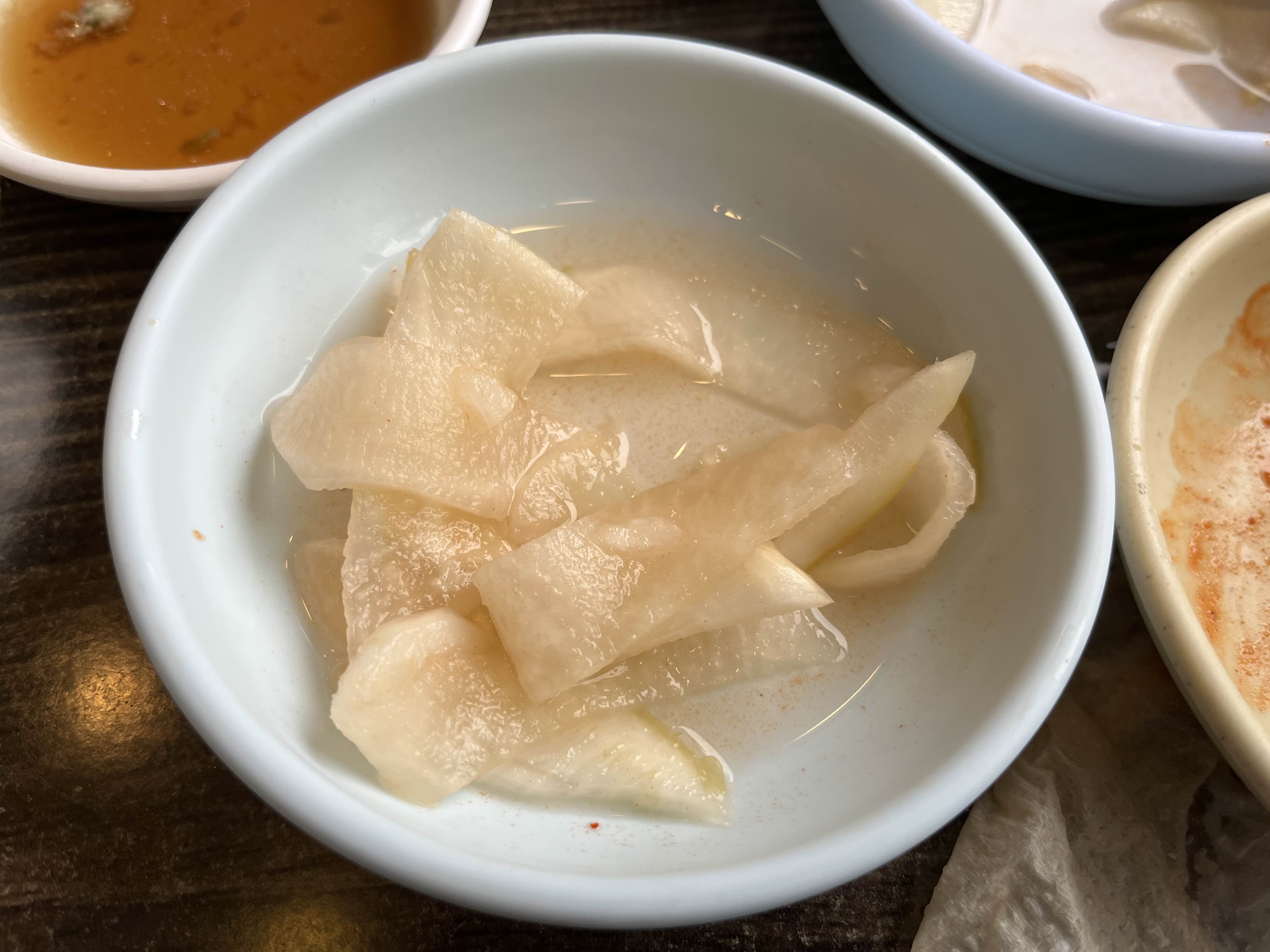 밑반찬의 종류는 단무지 절임무 당연 맛나다.!
