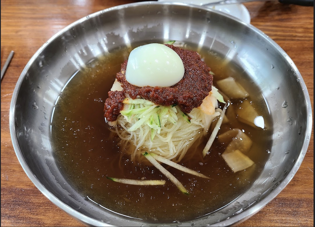 나는 주로 비빔을 먹는데, 소스의 감칠맛을 먼저 느끼고 육수를 부어 깊은 맛을 한번더 느끼면서 먹는다. 오이 알러지 주의.! 면빨이 쫄깃하다.!