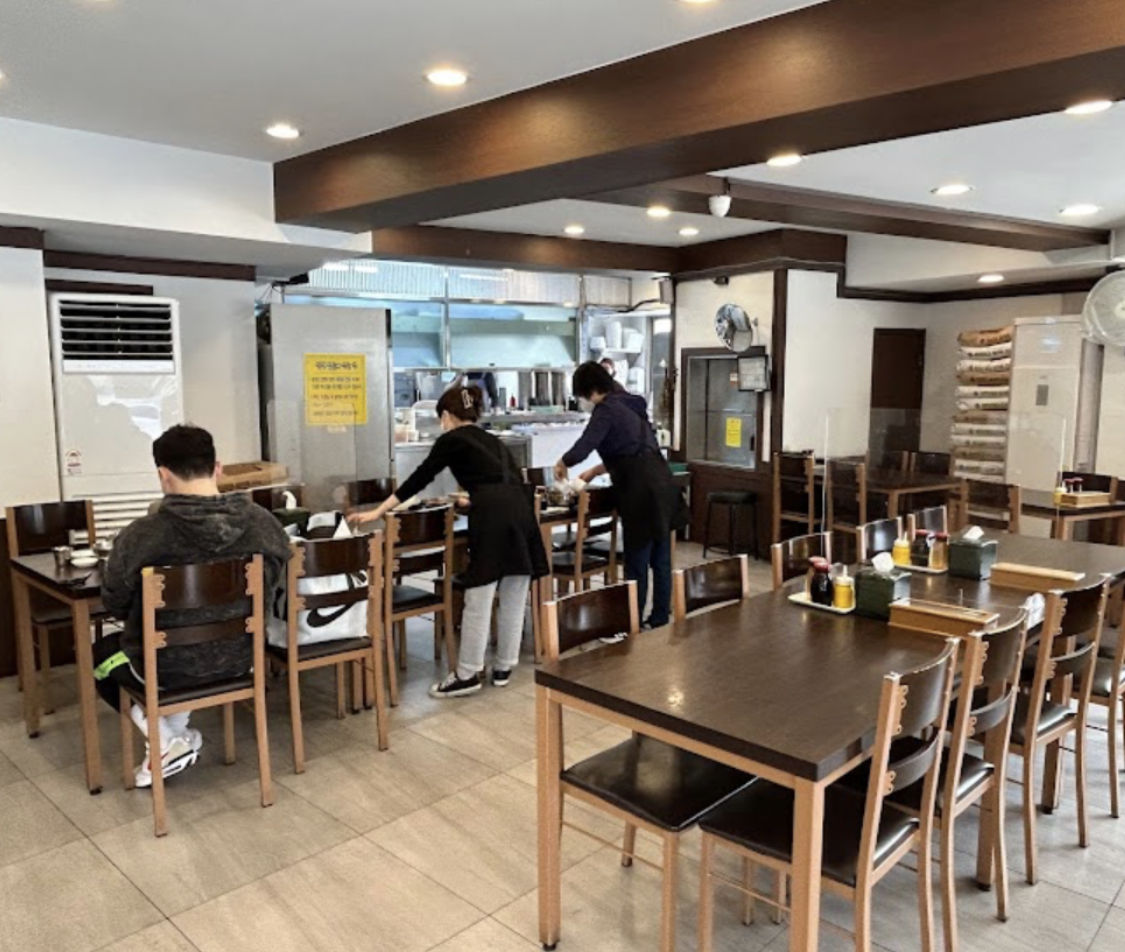 밀면집 앞에서 바라본 구청방향(길이 하나다) 우리는 운이좋아서 대기없이 테이블을 잡았다.