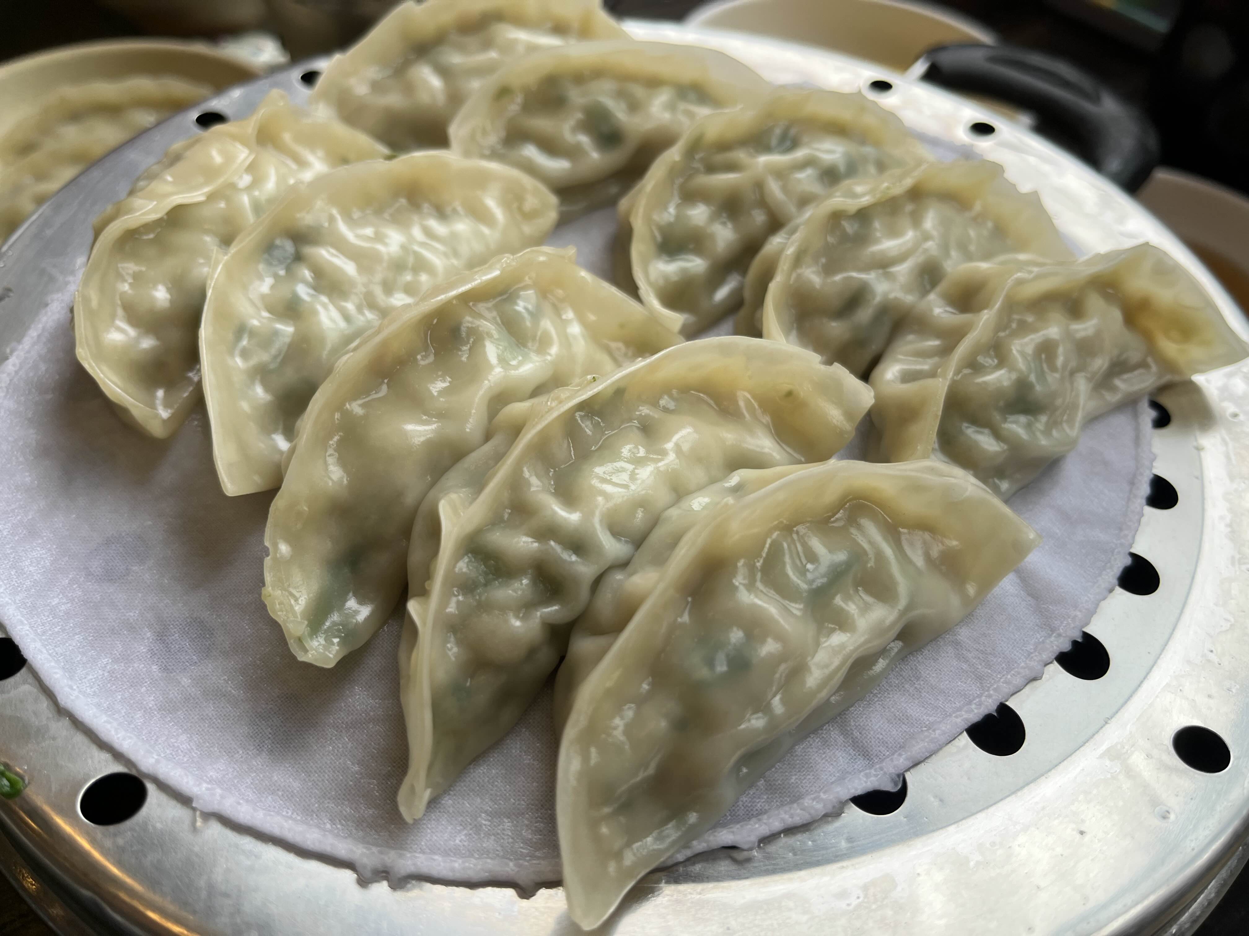 해운대 밀면 만두우리는 물3개 비빔1개 만두2개를 주문했고, 만두가 먼저 도착했다. 만두는 피가얇고 속이 고기로 차 있었다. 지난번 먹은 수조밀면의 만두랑은 찰기와 쫀득함에 차이가 느껴졌다. 만두간장이 조금 슴슴했는데 식초를 섞어주면 좀더 강한맛을 얻을 수 있다.