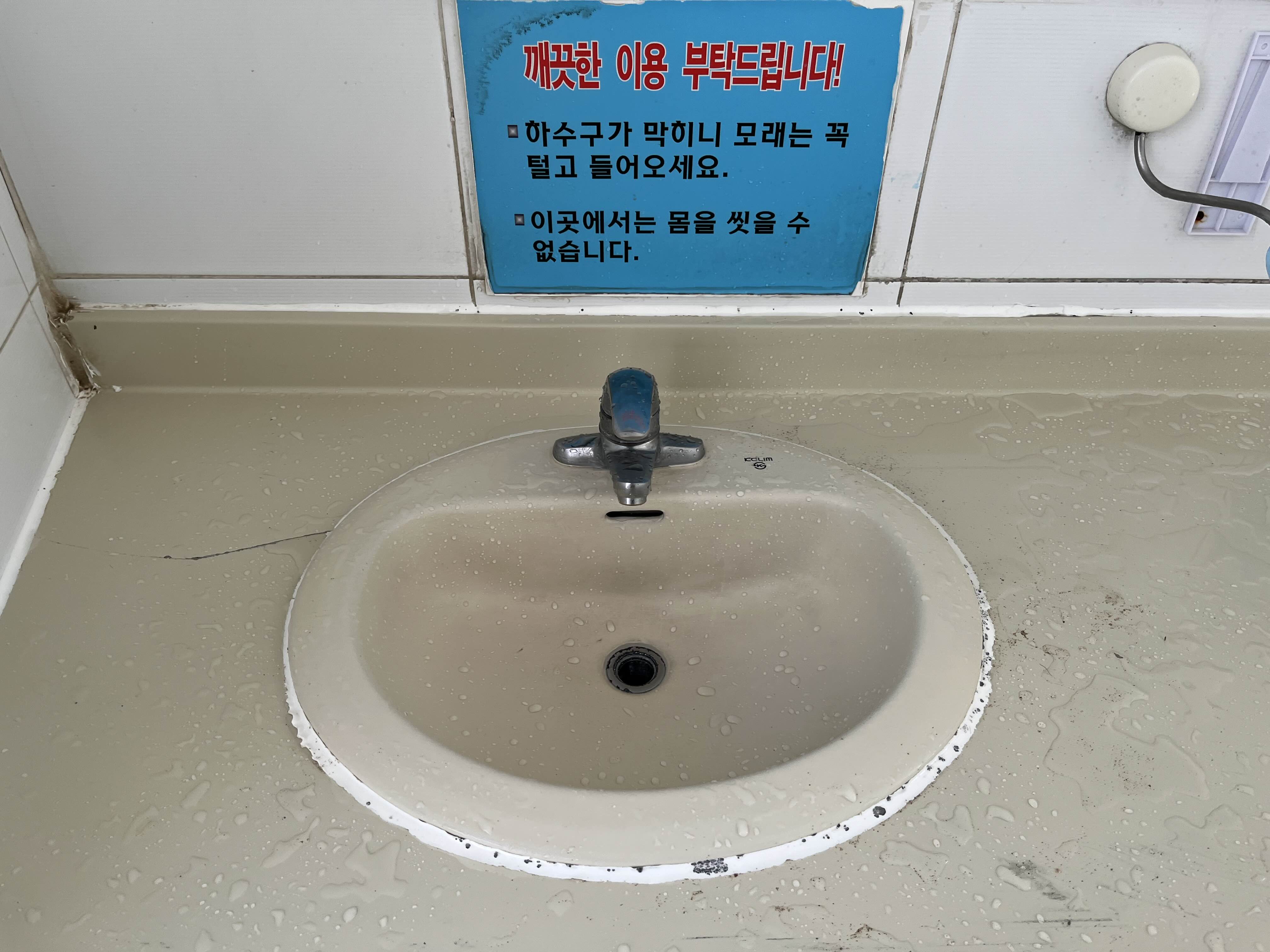 바닷가 중앙건물에 공용 화장실이 있는데, 이곳말고도 몇군데 더 있긴 하지만 이곳이 샤워실과붙어있고, 관리가 잘된다. 그래서 단점은 꼭 신발을 털거나 씻고 입장해야 한다. 워낙 모래로 막히다보니.. 할머니 할아버지 분들이 눈에 불을 켜고 계신다 ㅋ