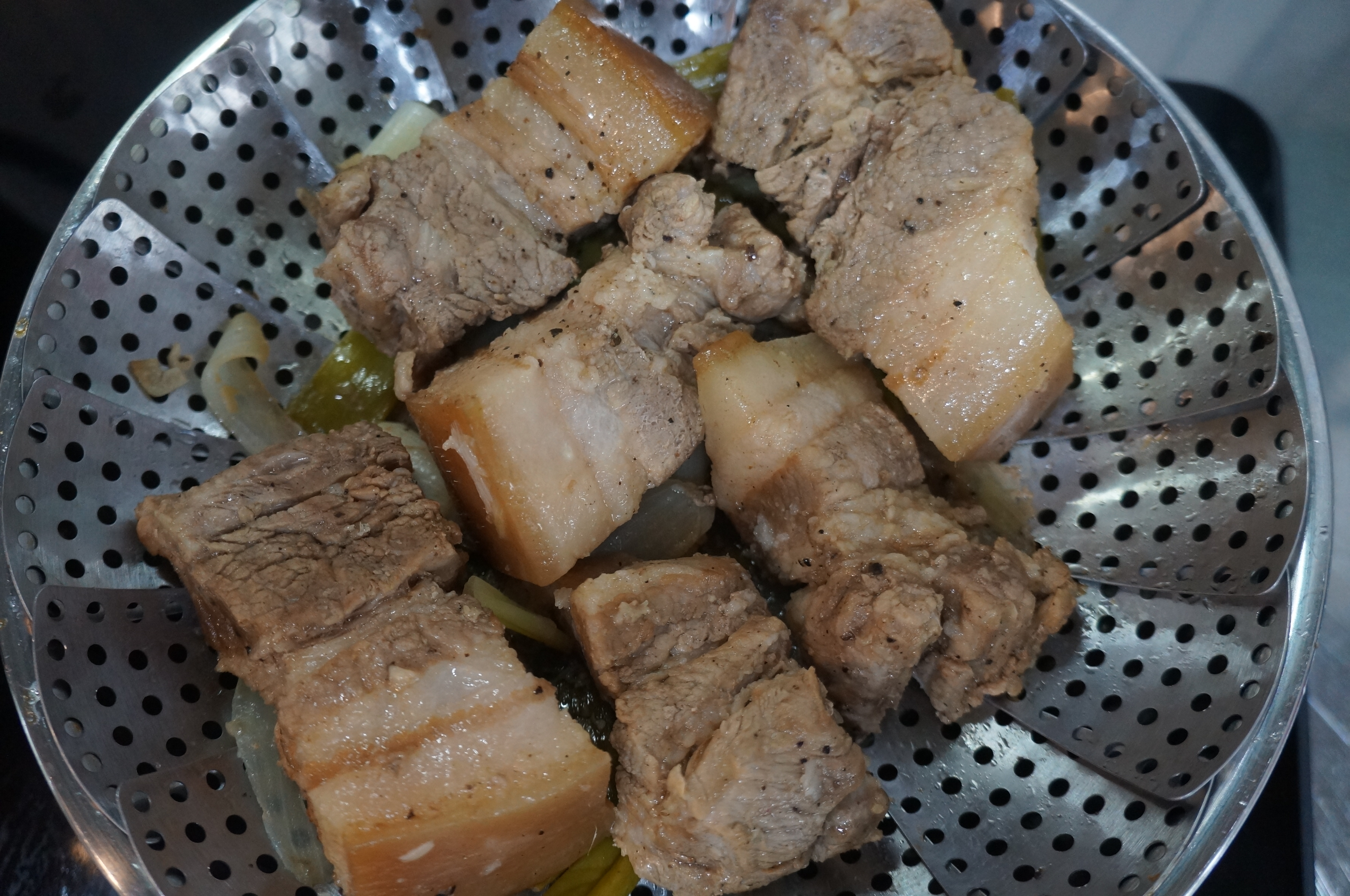스테인레스 웍으로 스팀을 이용하여 쪄보기 이번에 사용한 스테인레스 팬은 나쁘지 않았다.