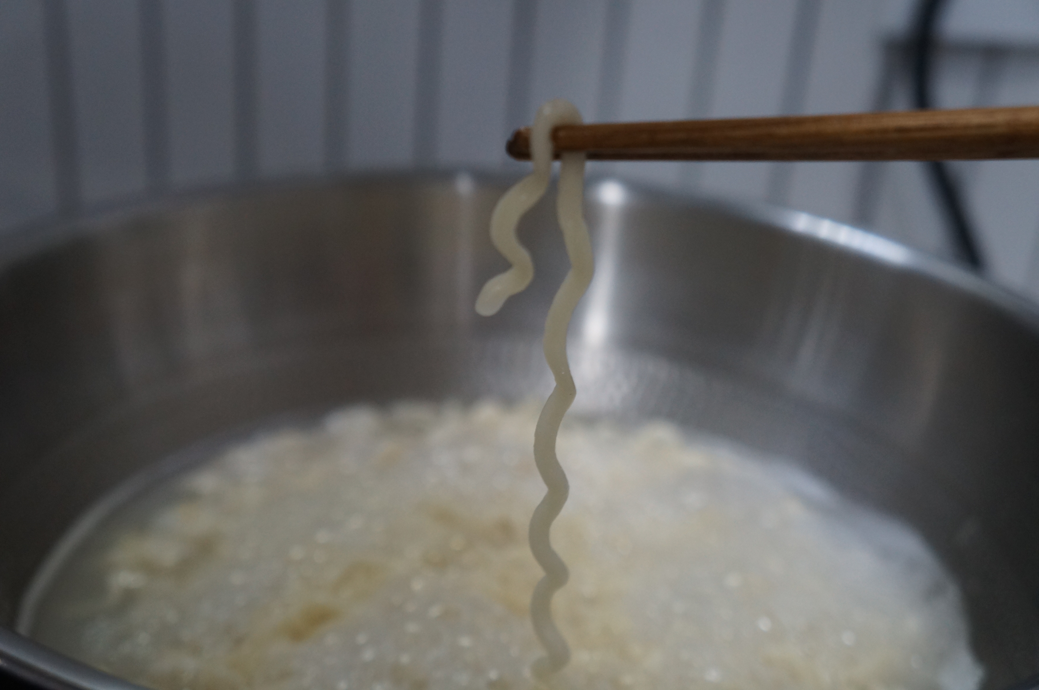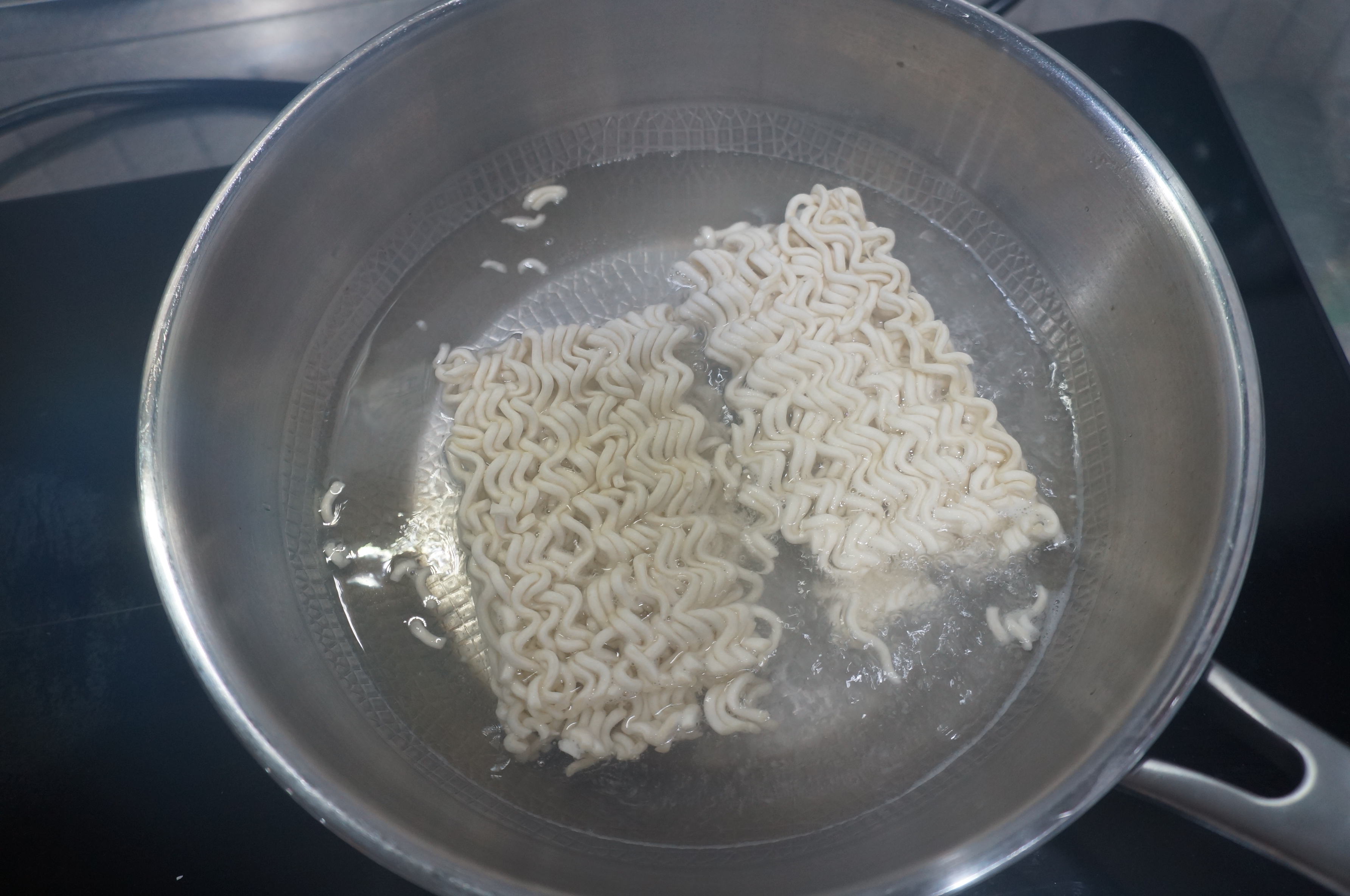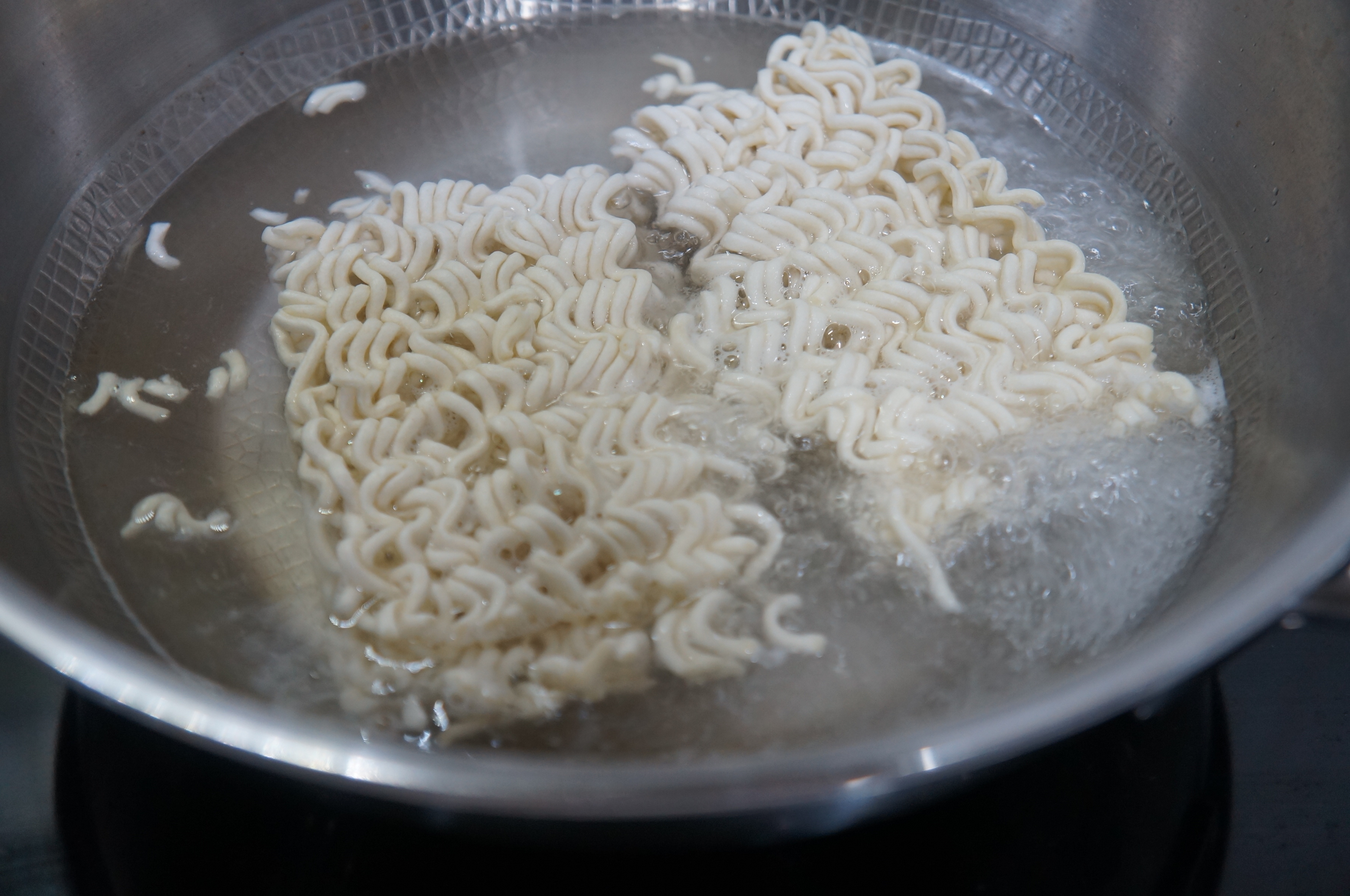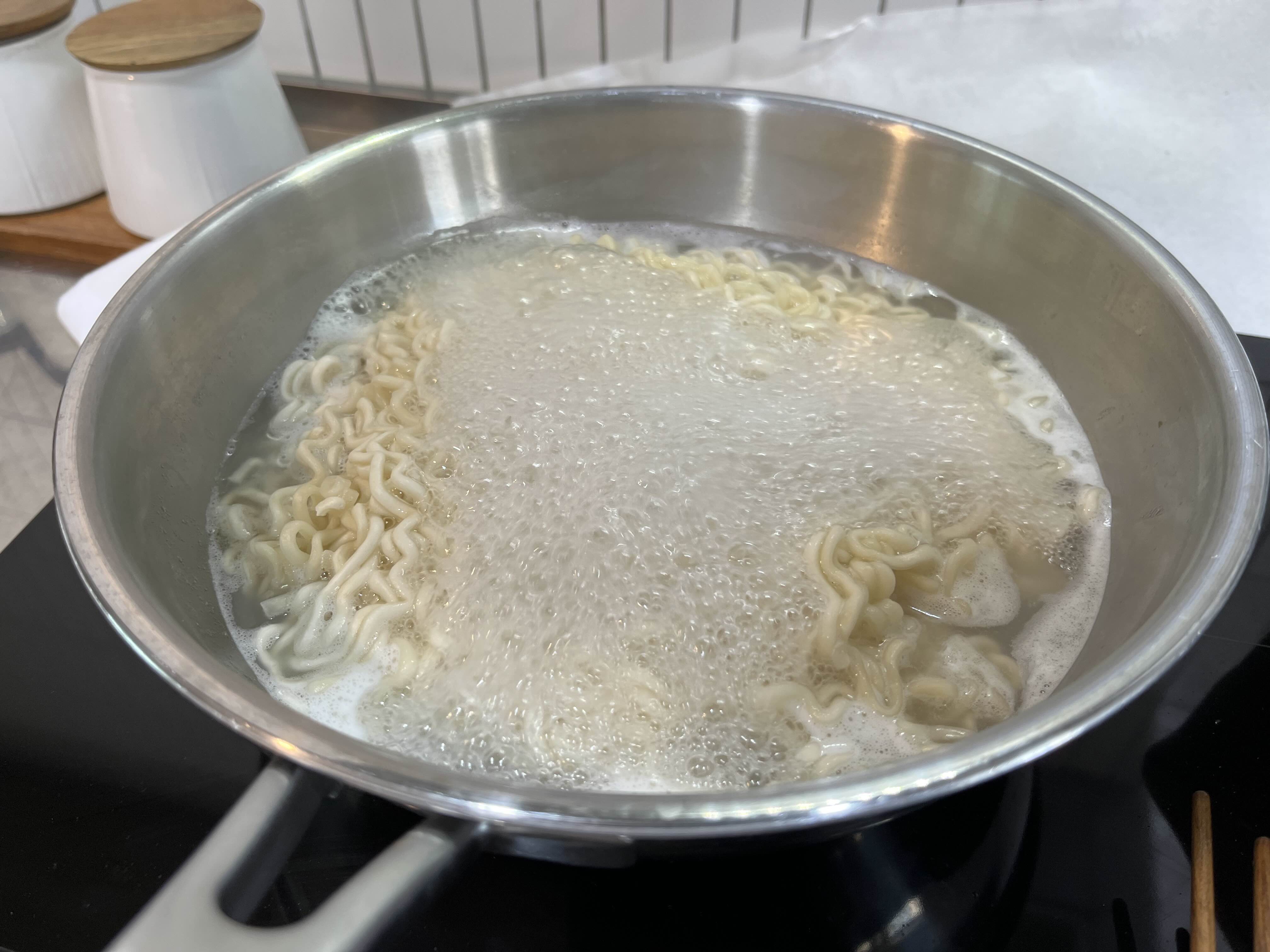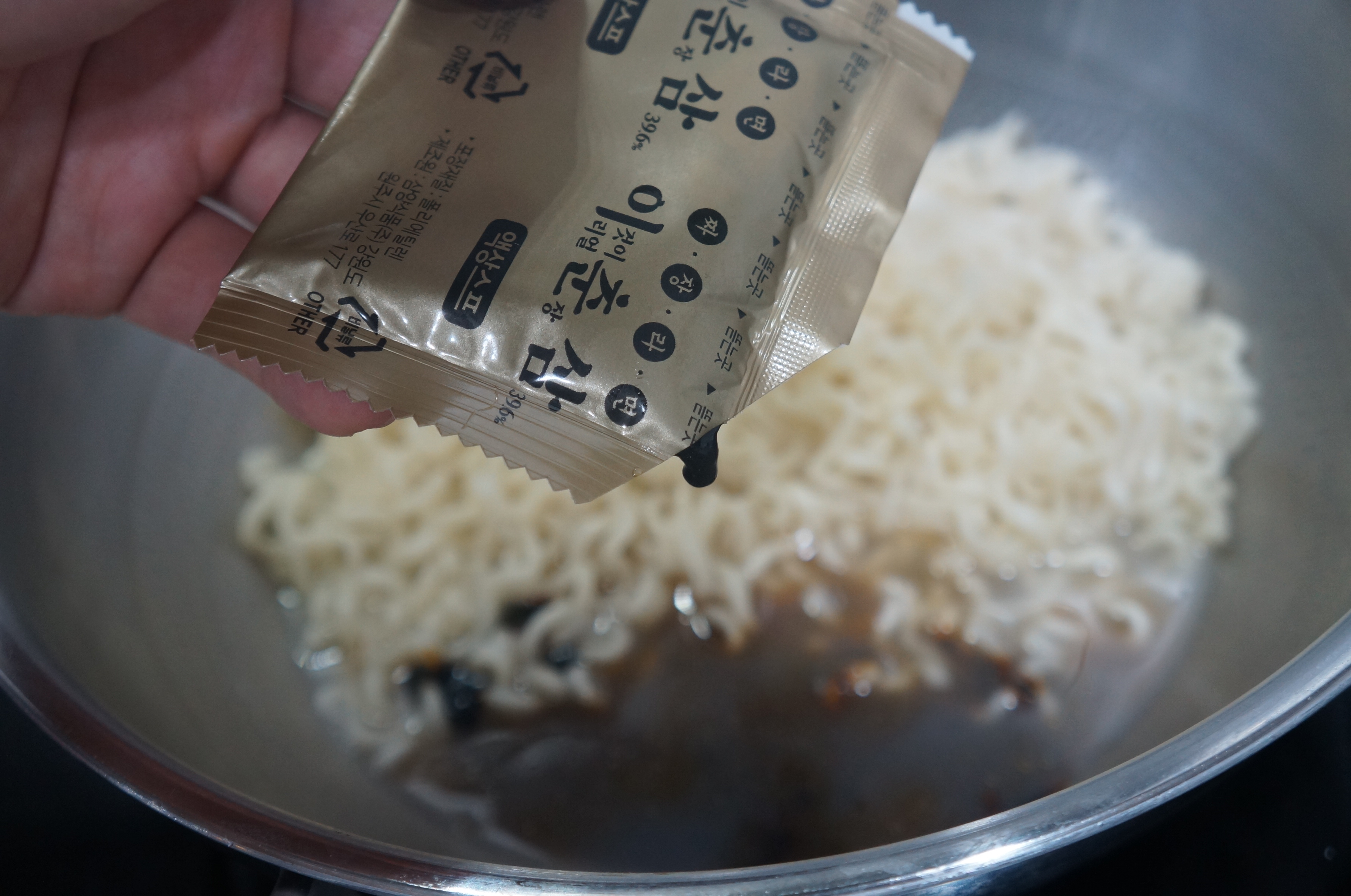2. 면이 꼬들해질때즘 물을 따라버린다