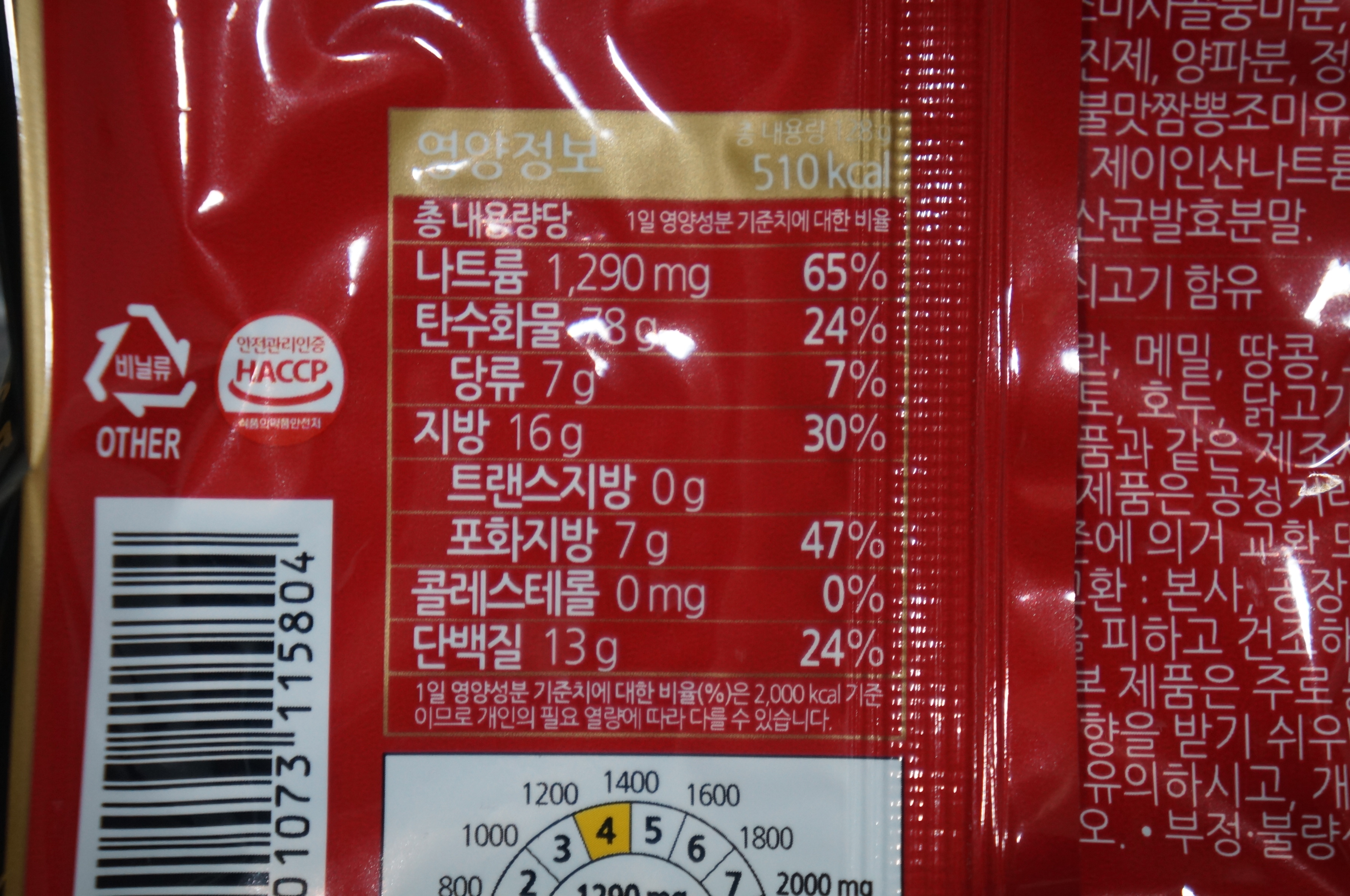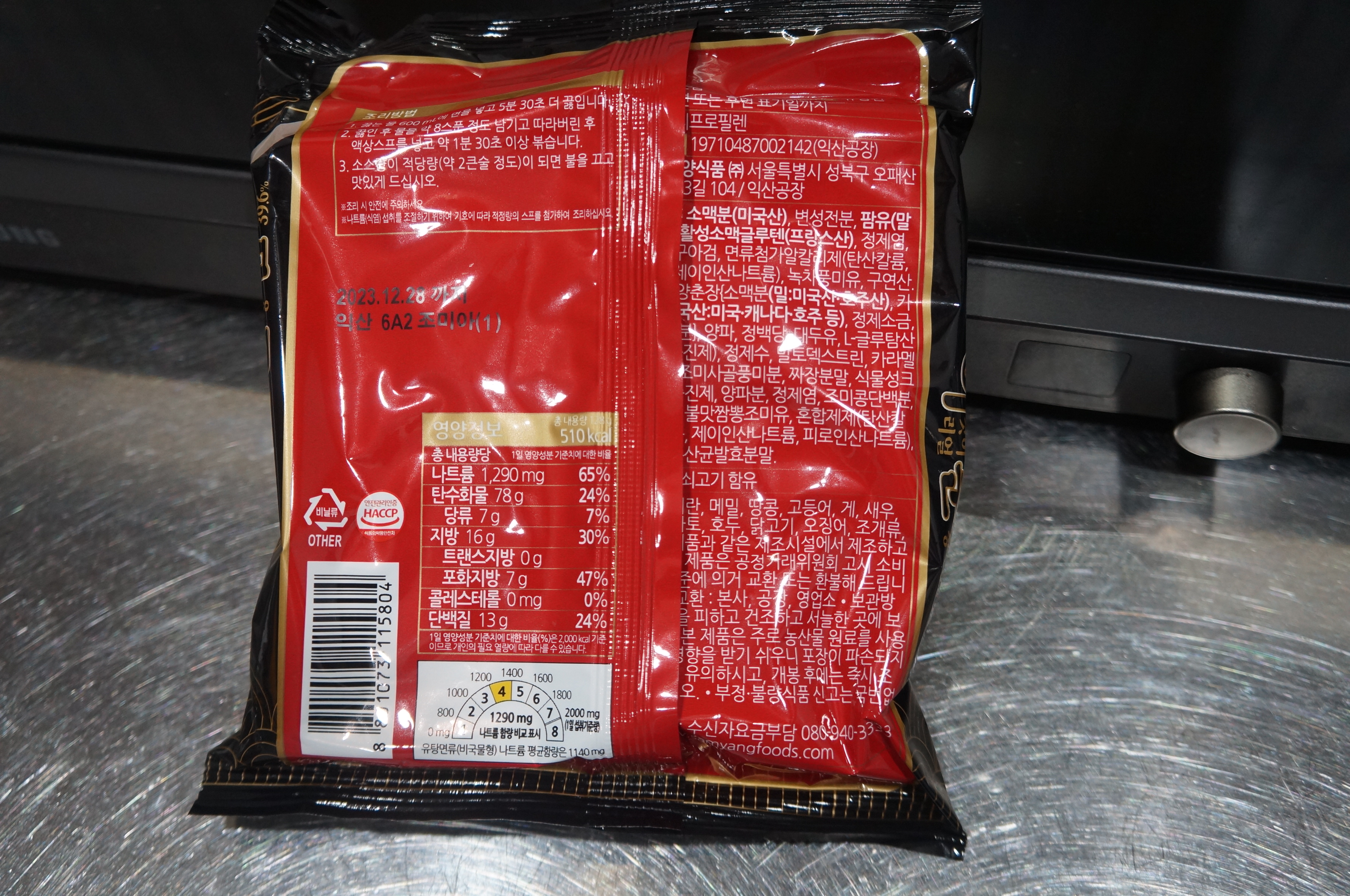 액상스프 중에 춘장 39.6%가함유된 특징과 함께 128g의 용량 기준 총 열량이 510kcal 의 진한맛이 일품!