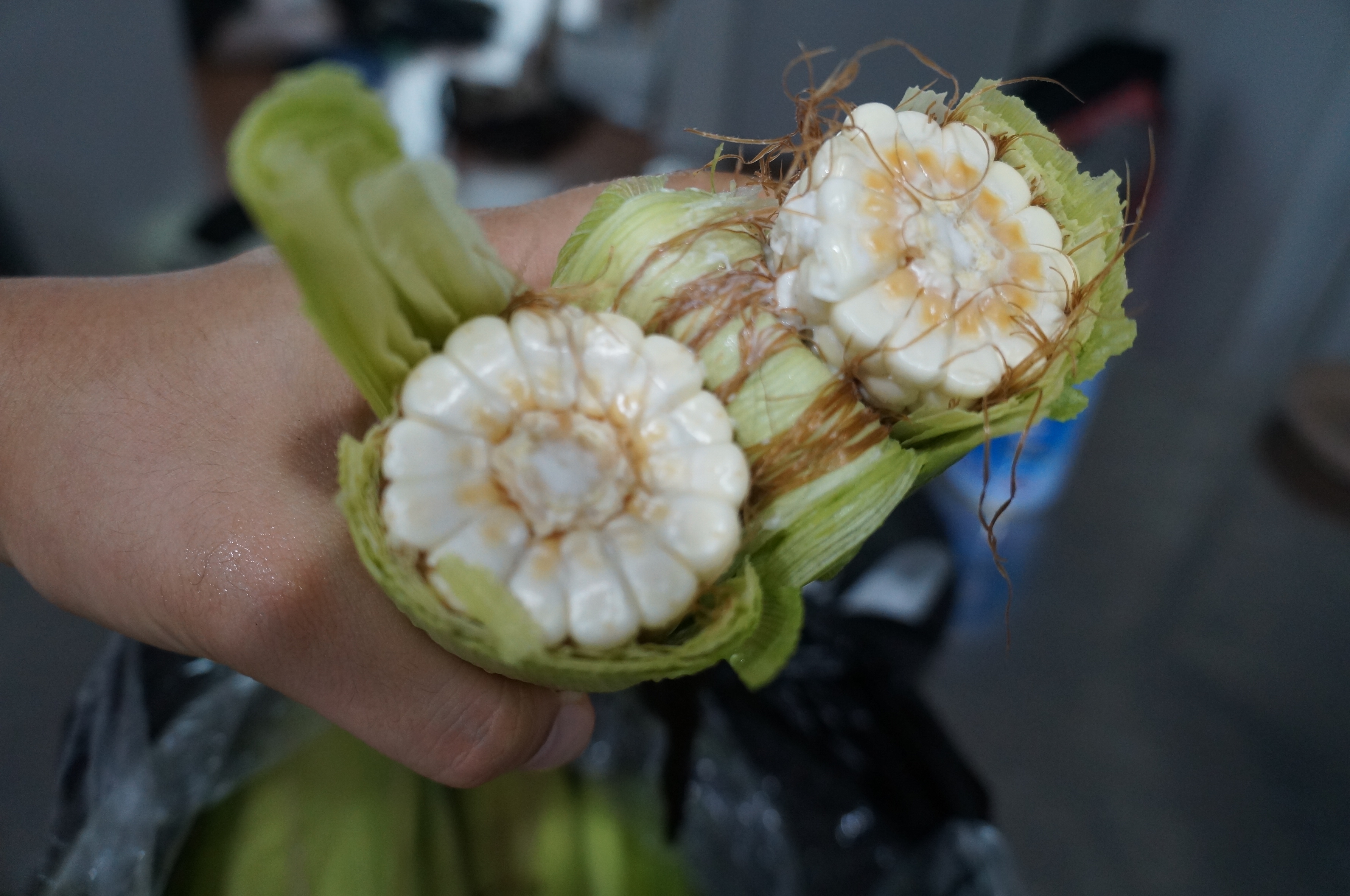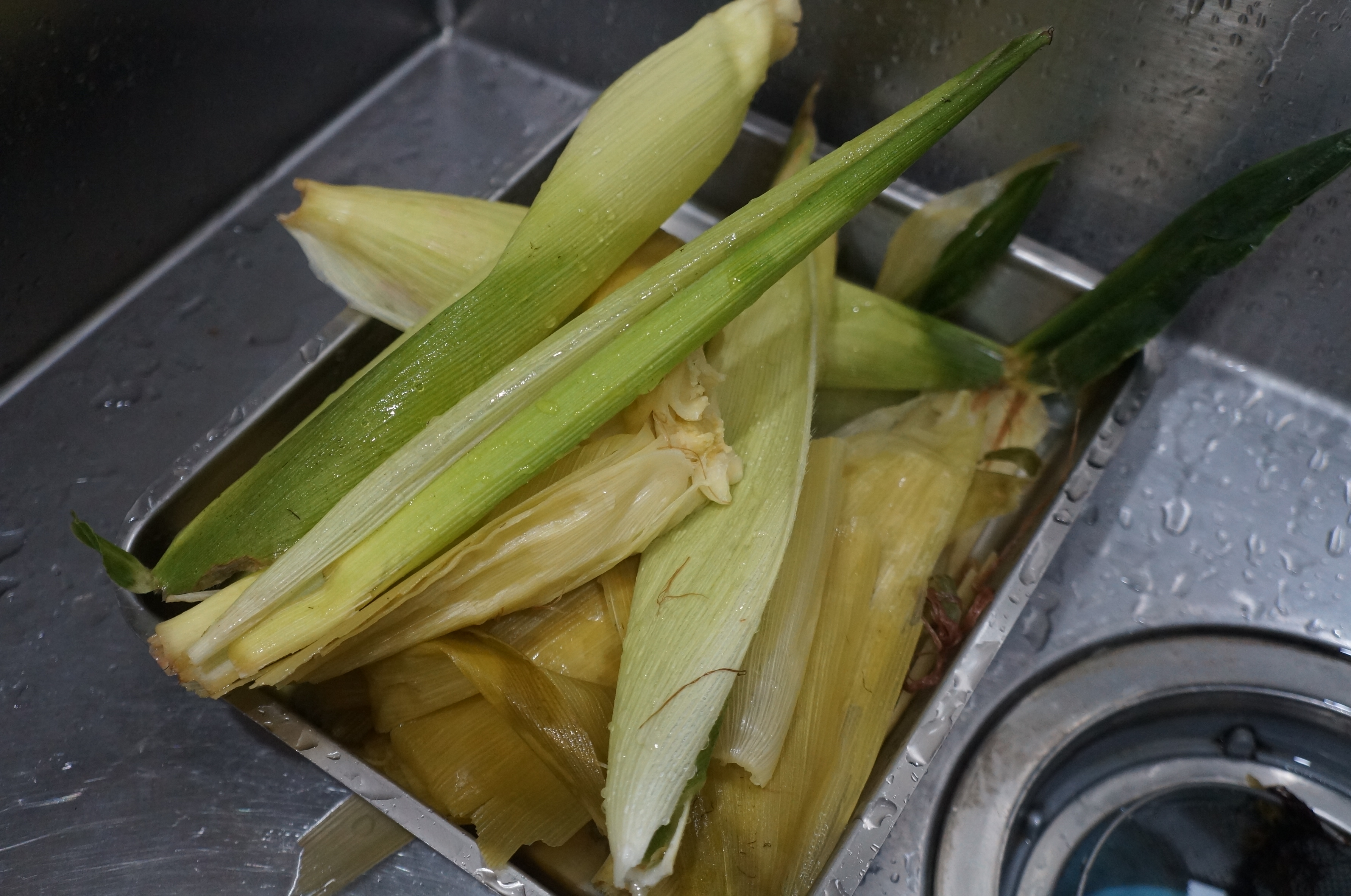 1. 옥수수 껍질을 벗겨내고 필요에 따라 잎이나 세잎을 제거합니다.