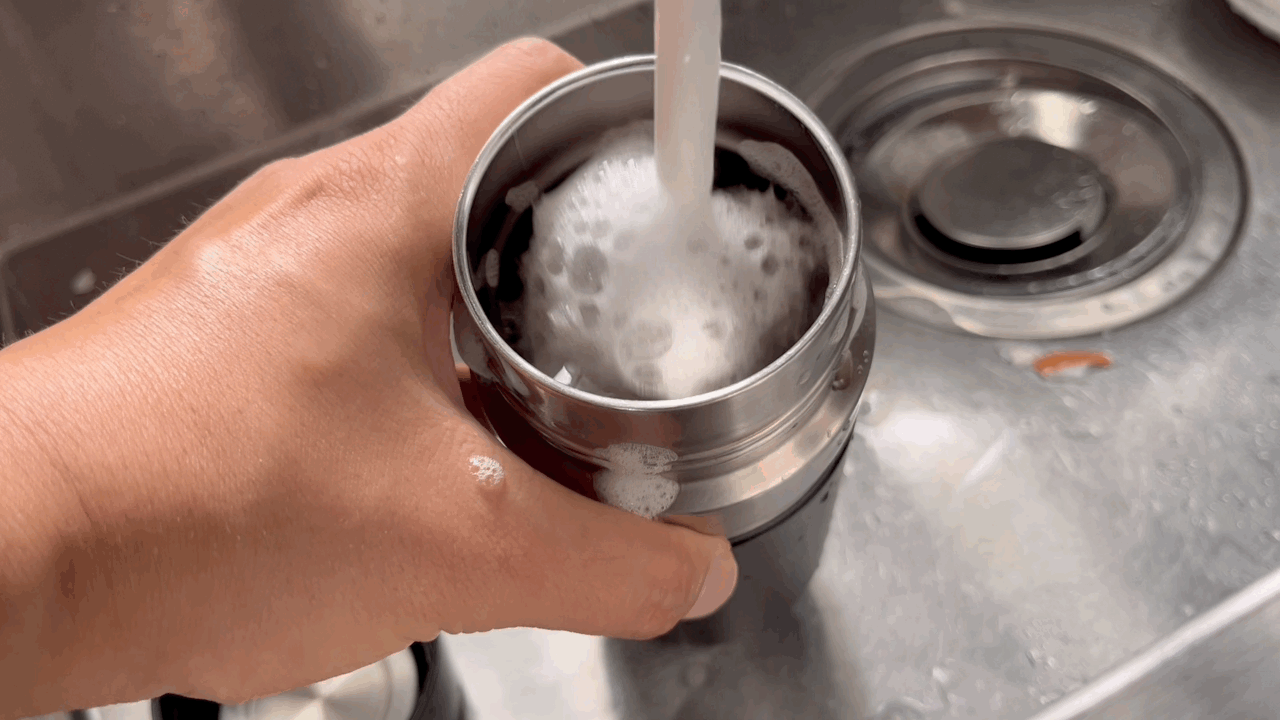 세제를 넣고 물을 넣고 솔을 적셔준다. 너무 팍 넣게되면 거품이 튀어 나온다.
