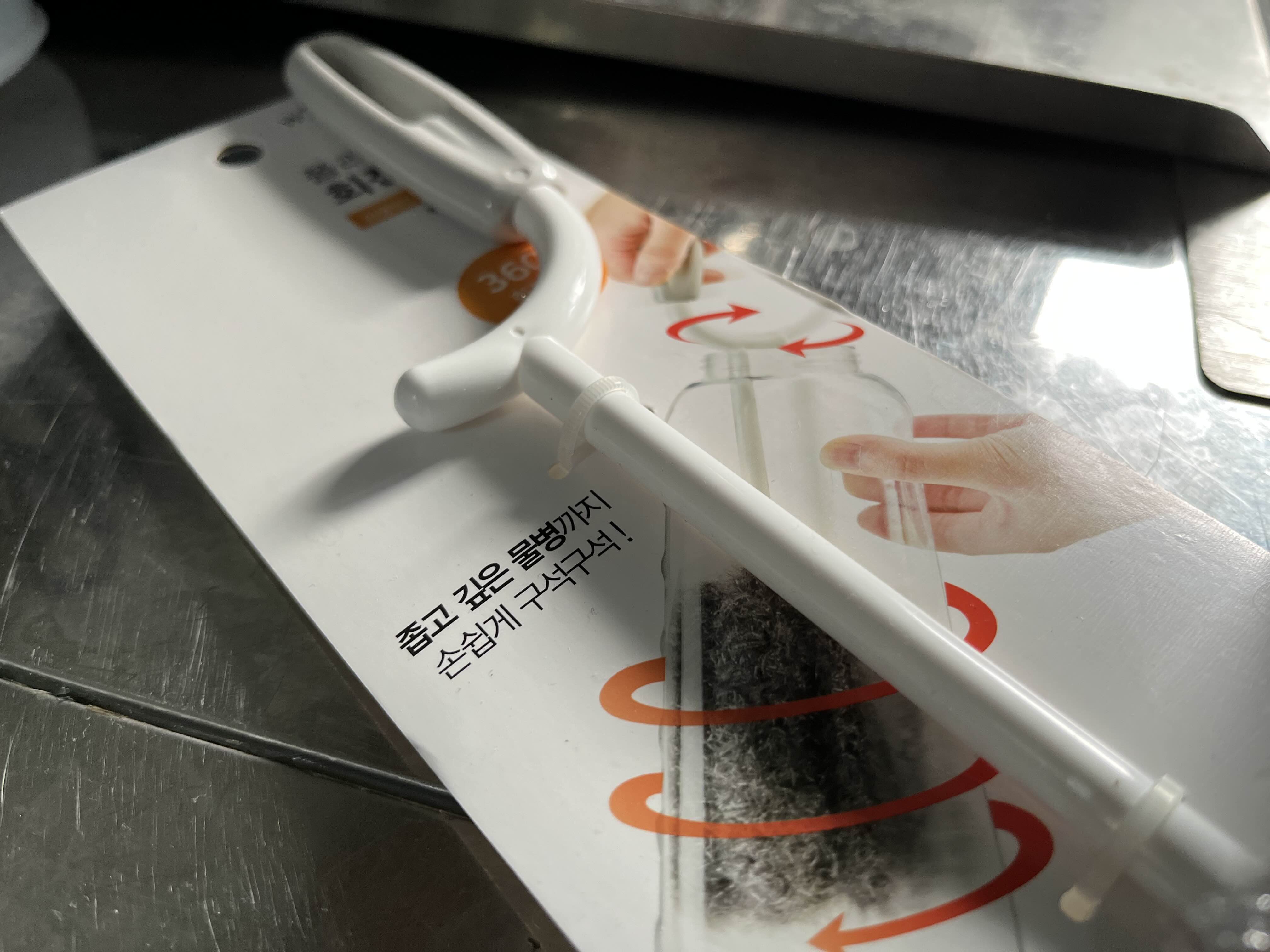 이건 불편하고 잡기도 어렵고.. 그래서 최근 다시 구매한 다이소 물병세척솔 물병세척솔이 종류가 엄청난데, 아무거나 구매했다 ㅋ 그래도 오래 쓸 수 있을 것으로 정했다.