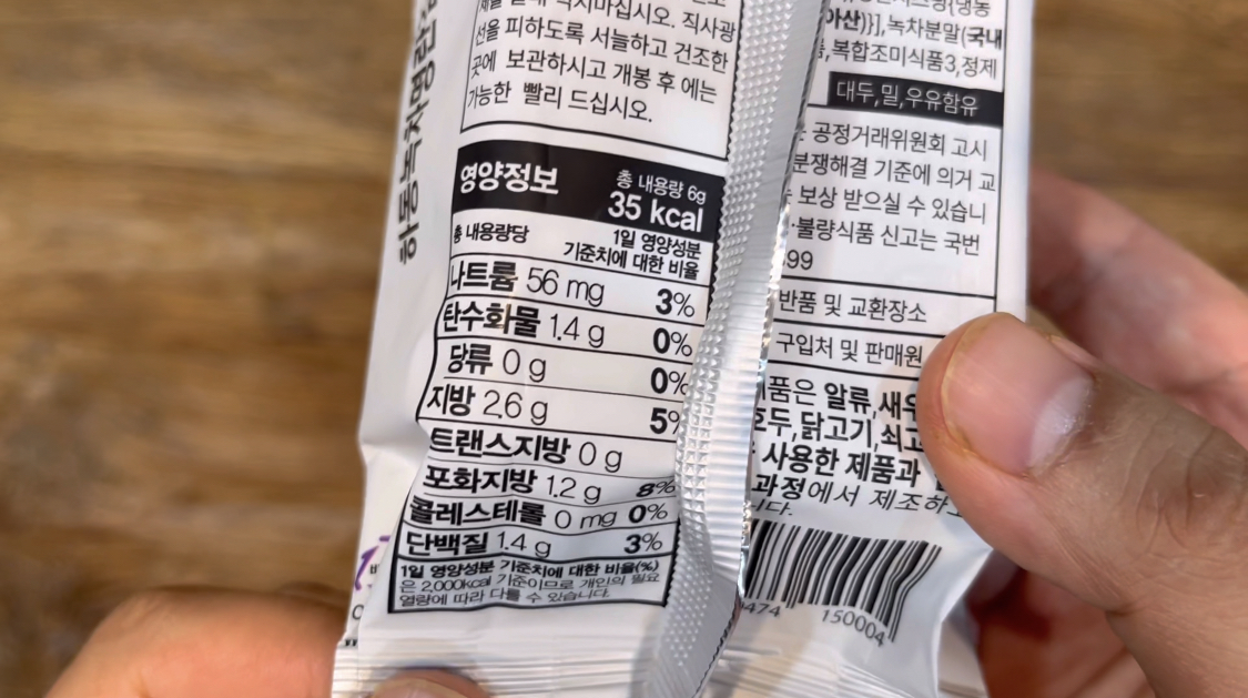 35kcal/1봉, 밥도둑이기에 무심코 먹었다간, 탄수화물과 함께 칼로리 폭탄을 받아야 할 수 있다. ㅋㅋ