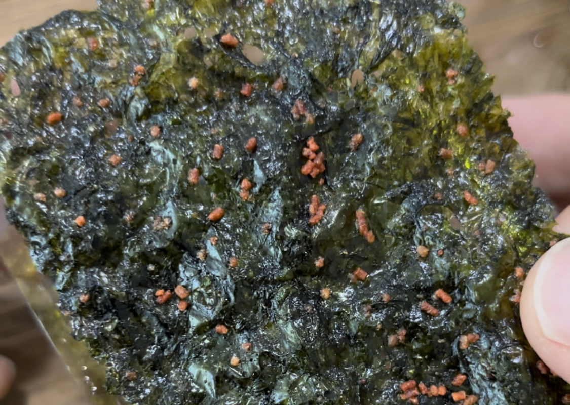 뒷면에는 명란이 없다. 그이유는 위에서 보았듯이 제작방식에 한쪽면만 뿌려지고, 구워지기에.. 그런듯 하다.