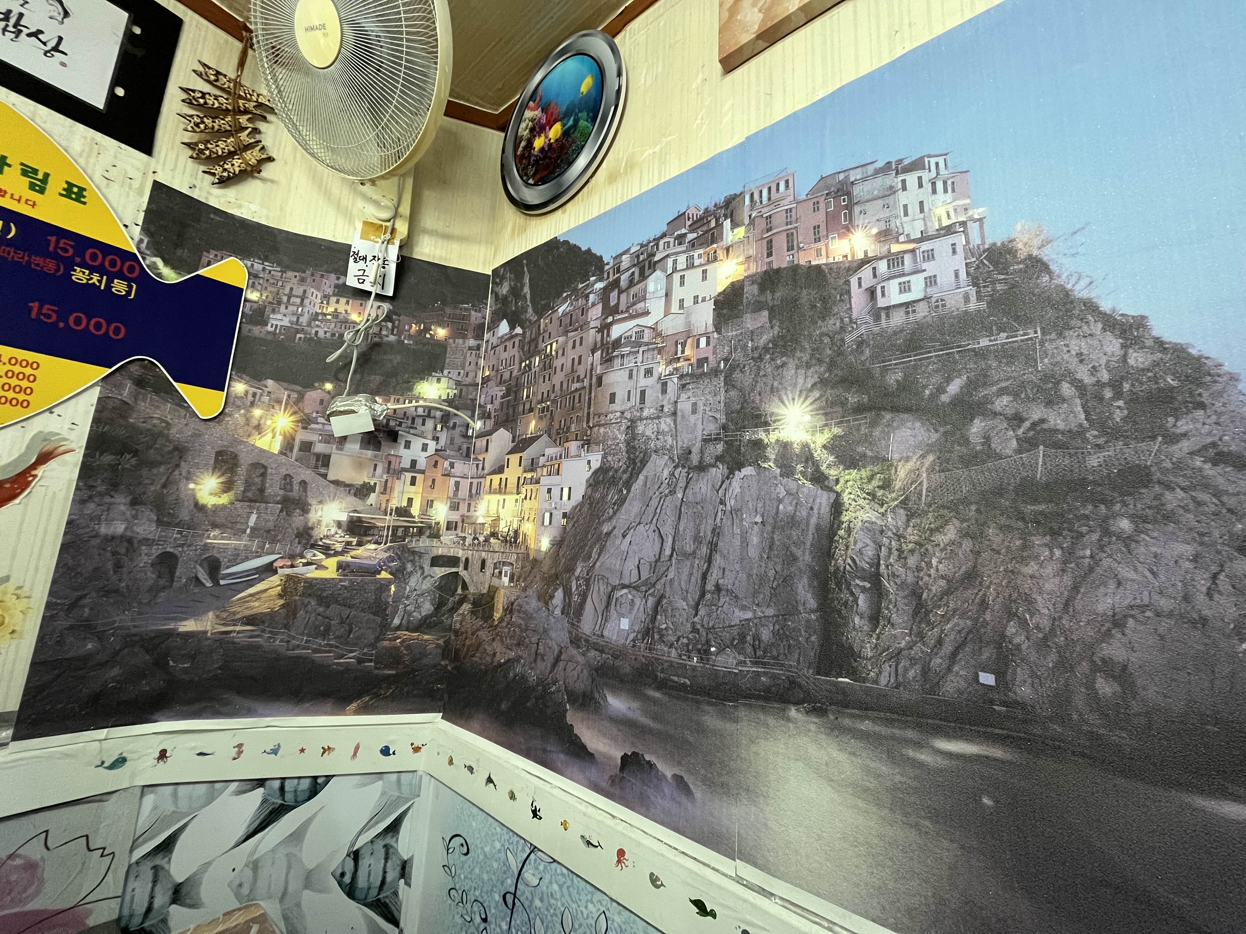 사장님의 물고기 사랑?? 다양한 해산물 소품들이 천장부터 벽까지 가득 메우고 있는데, 이게 은근 포인트! 뭔가 조금 엉성한데 이상하게 바다속에 들어온 느낌같은 느낌?!
