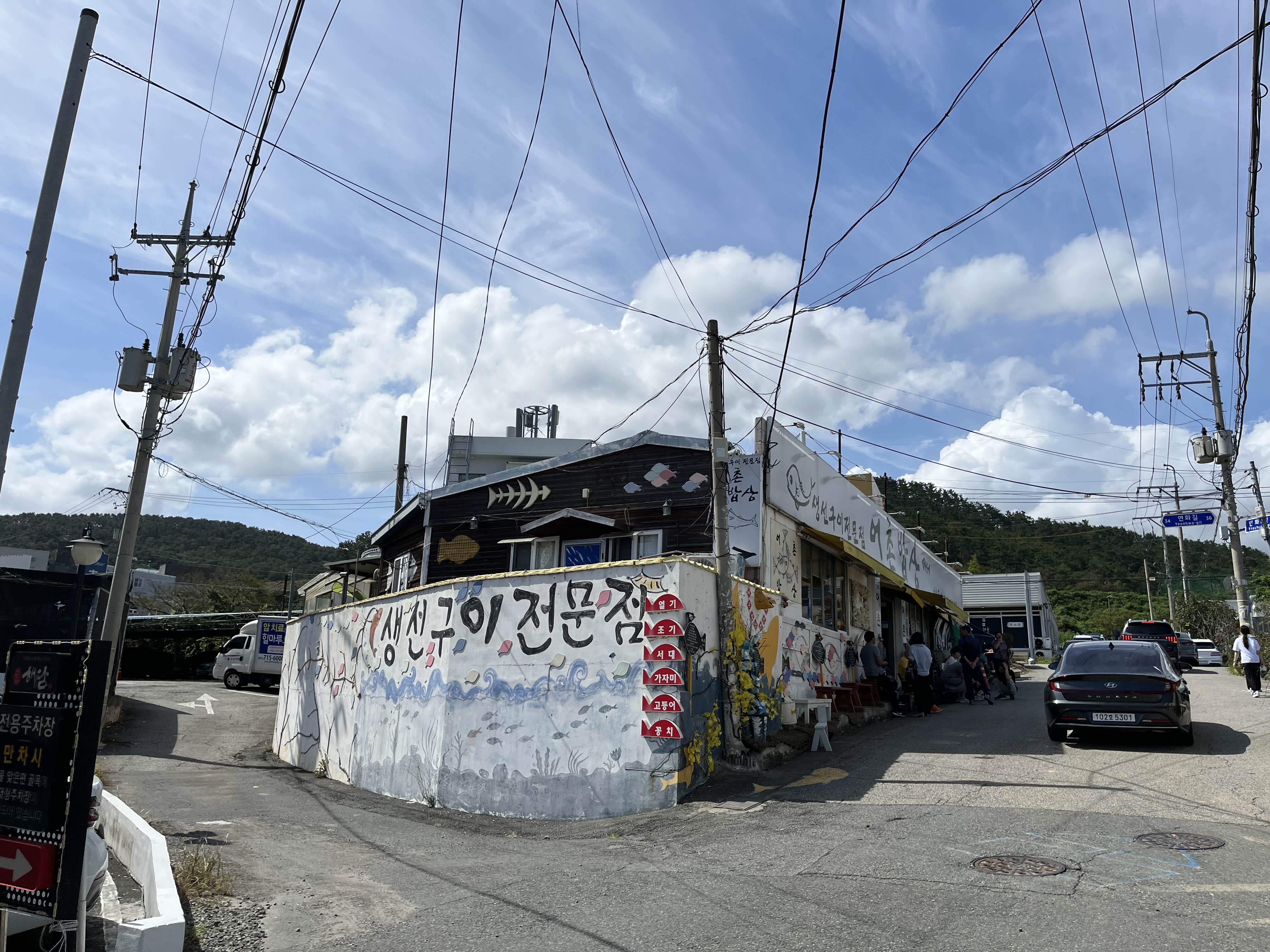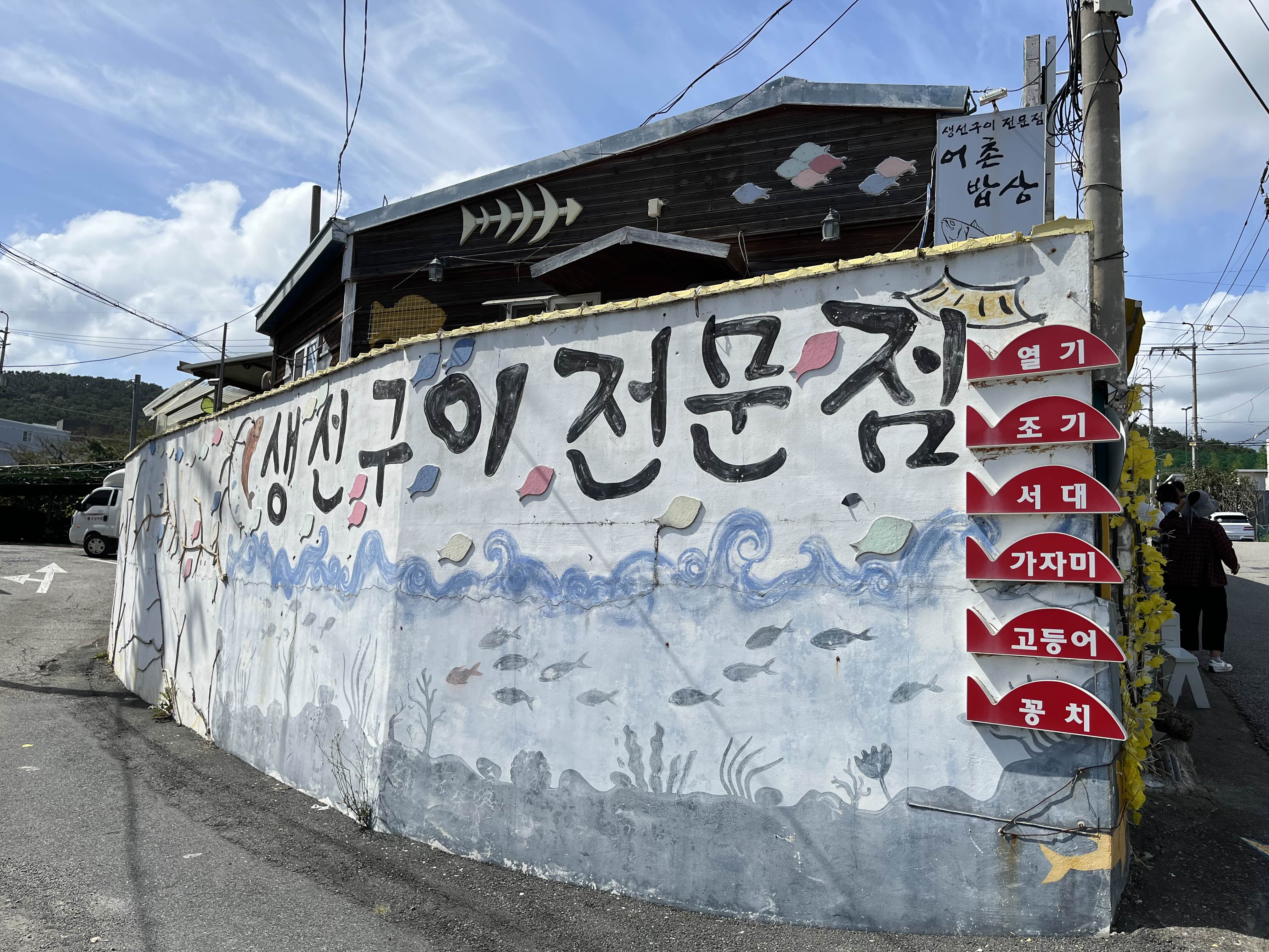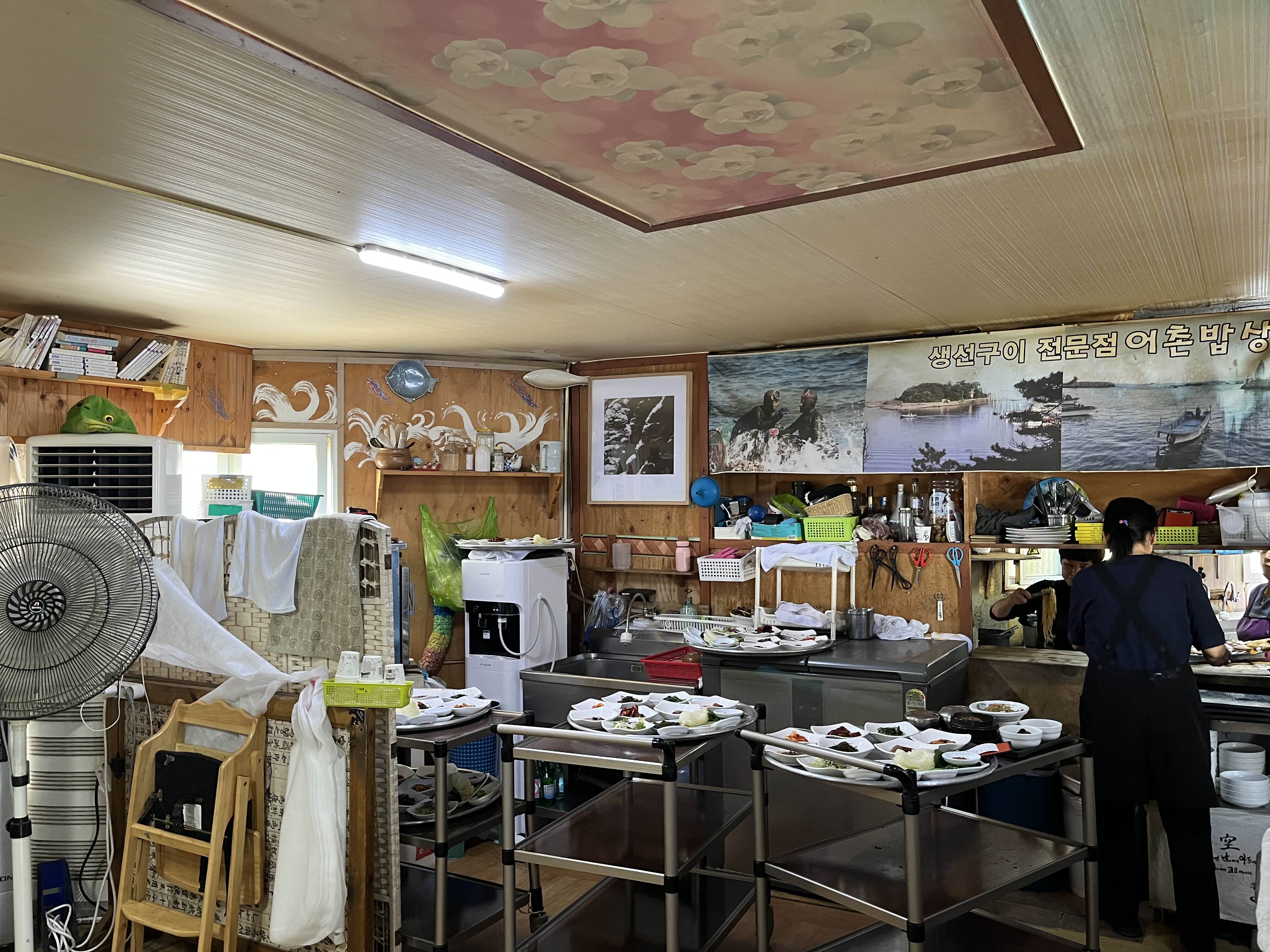 기장 연화리 대변항이 보이는 어촌마을에 있는 생선구이로 유명한 어촌밥상을 다녀왔다.! 기장 대변항과 죽도가 한눈에 보이는 뚝방과 갈매기를 구경하다보니 금방 나의 순서가 되었다.! 특별할거 없는 생선구이지만, 조화가 아름다운 식당이었다.!