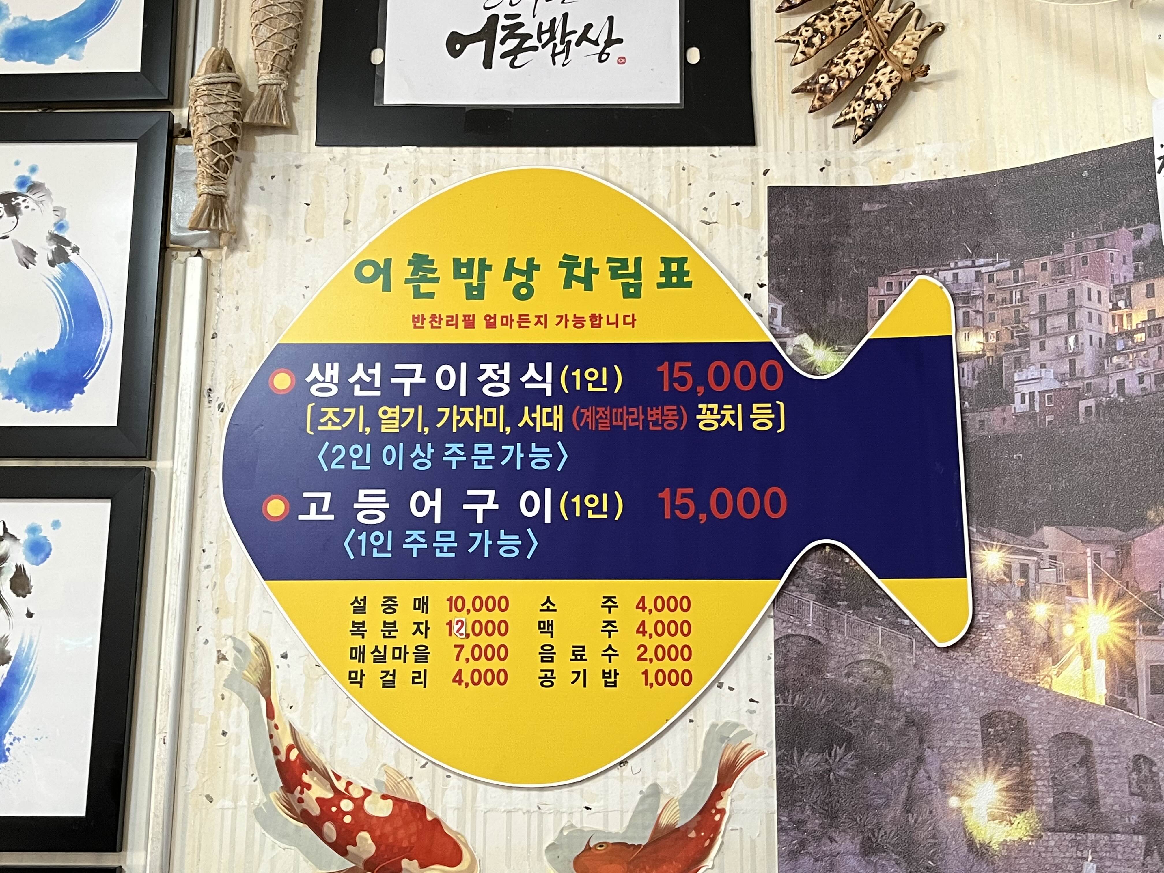 반찬리필 얼마든지 가능함! 이모님이 인원수에 맞게 추천해주시는데 진짜 고등어 메니아만 아니면 인당*15000원 으로 계산하면 심플하고 넉넉하다.! 술은 모르겠다. ㅋㅋ 공기밥 추가는 필수다.!