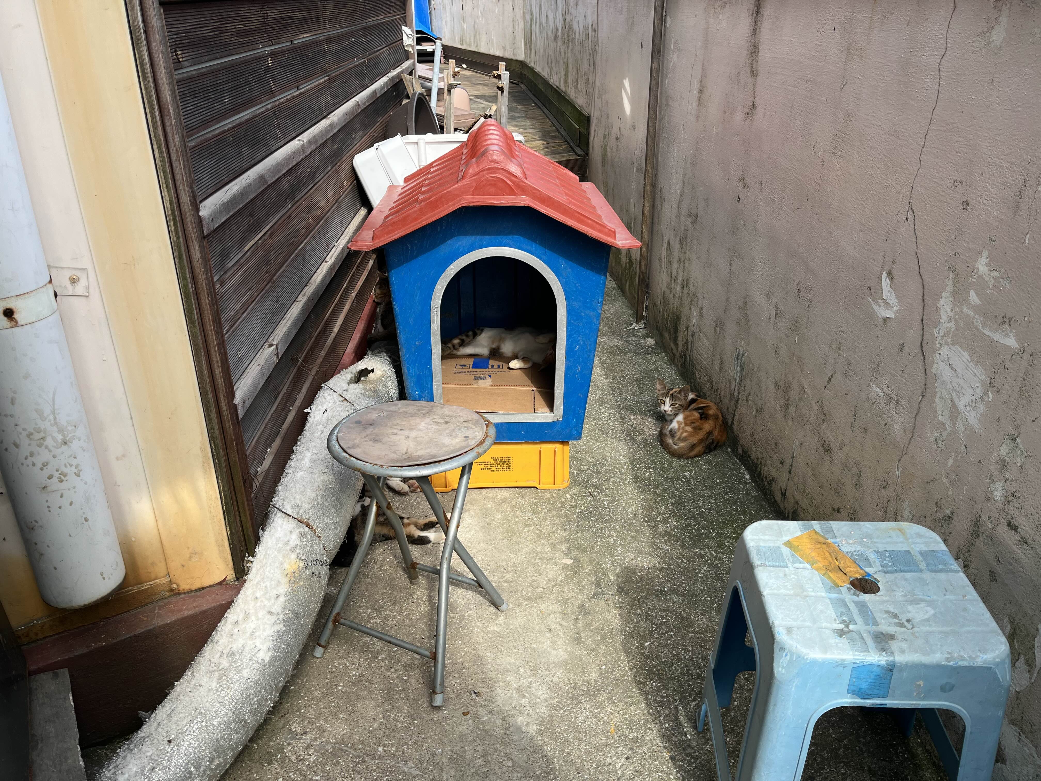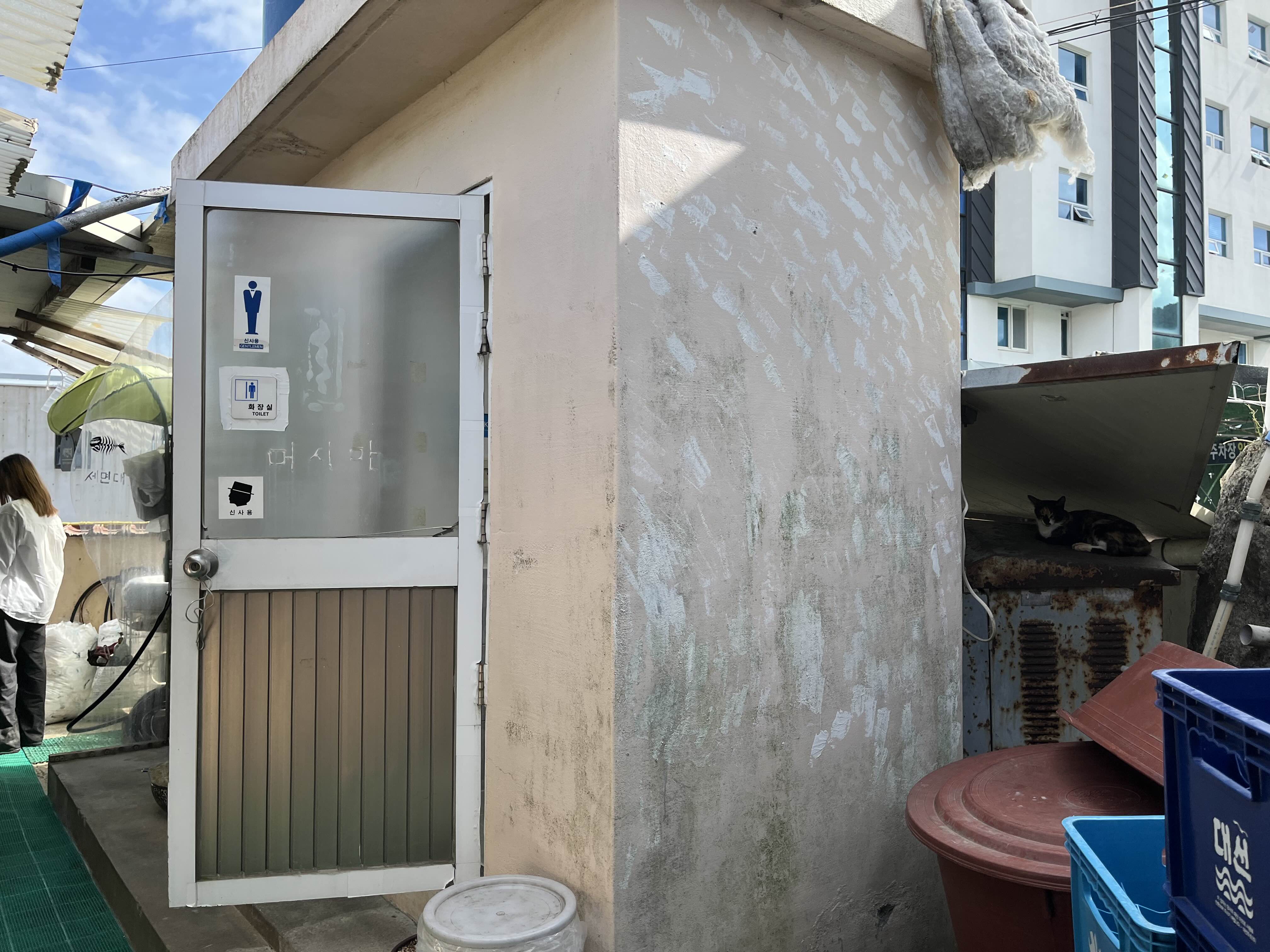 입구에서 우측은 주방이고, 좌측은 테이블인데 직진을 하면 화장실이 나온다. 문제는 이곳이 화장실이자 방앗간 비둘기처럼 들어와 있는 반려묘 서식지였다.! ㅋㅋㅋ 상태를 보면 키우신게ㅜ아니고 이녀석들이 걍 들어와 살고 있는것 같다.!