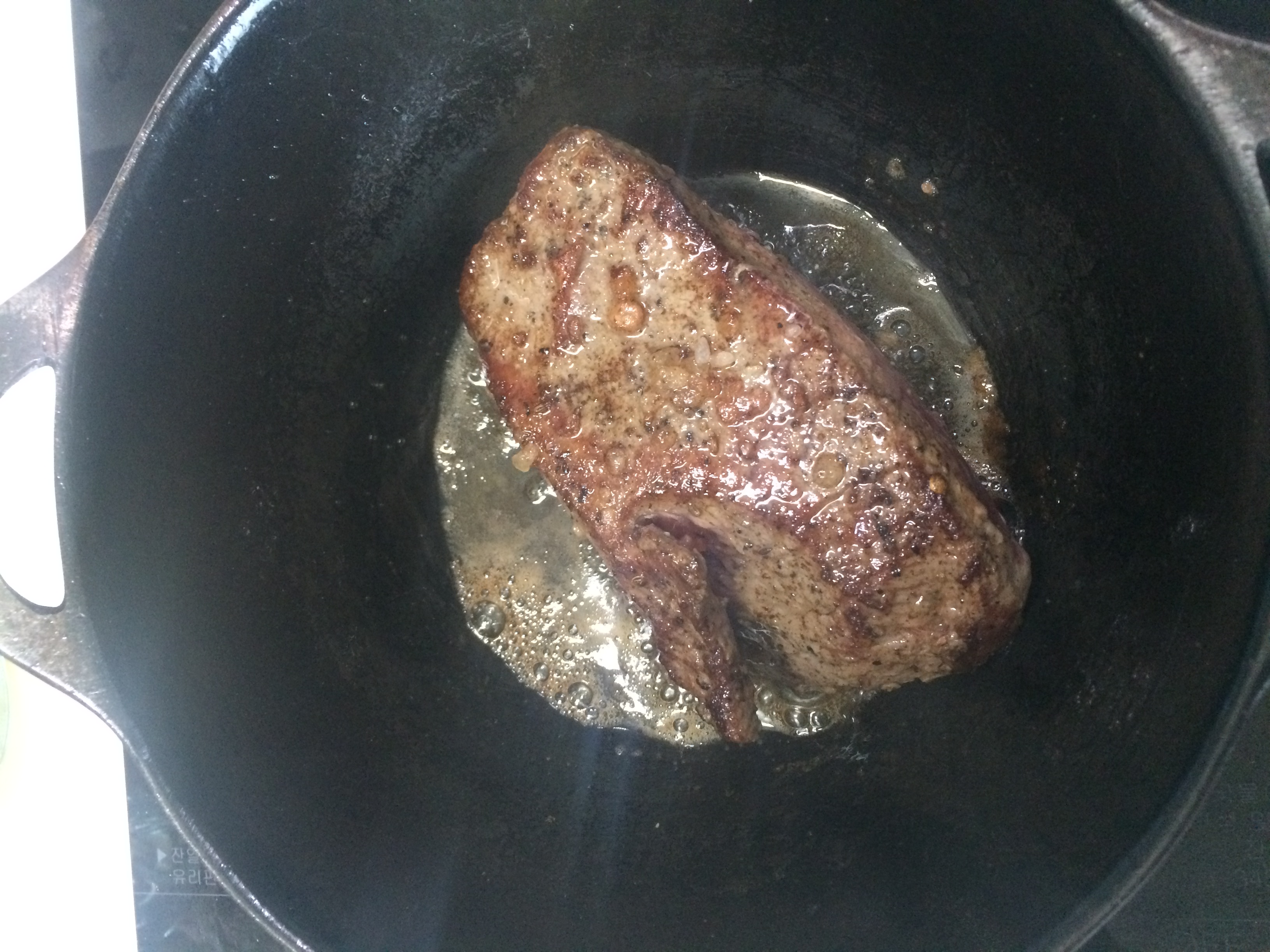 5. 스테잌을 4면 돌러가며 구워준다.(캬.... 향 소리 다 좋다) 운틴 미니찌개냄비 쵝오