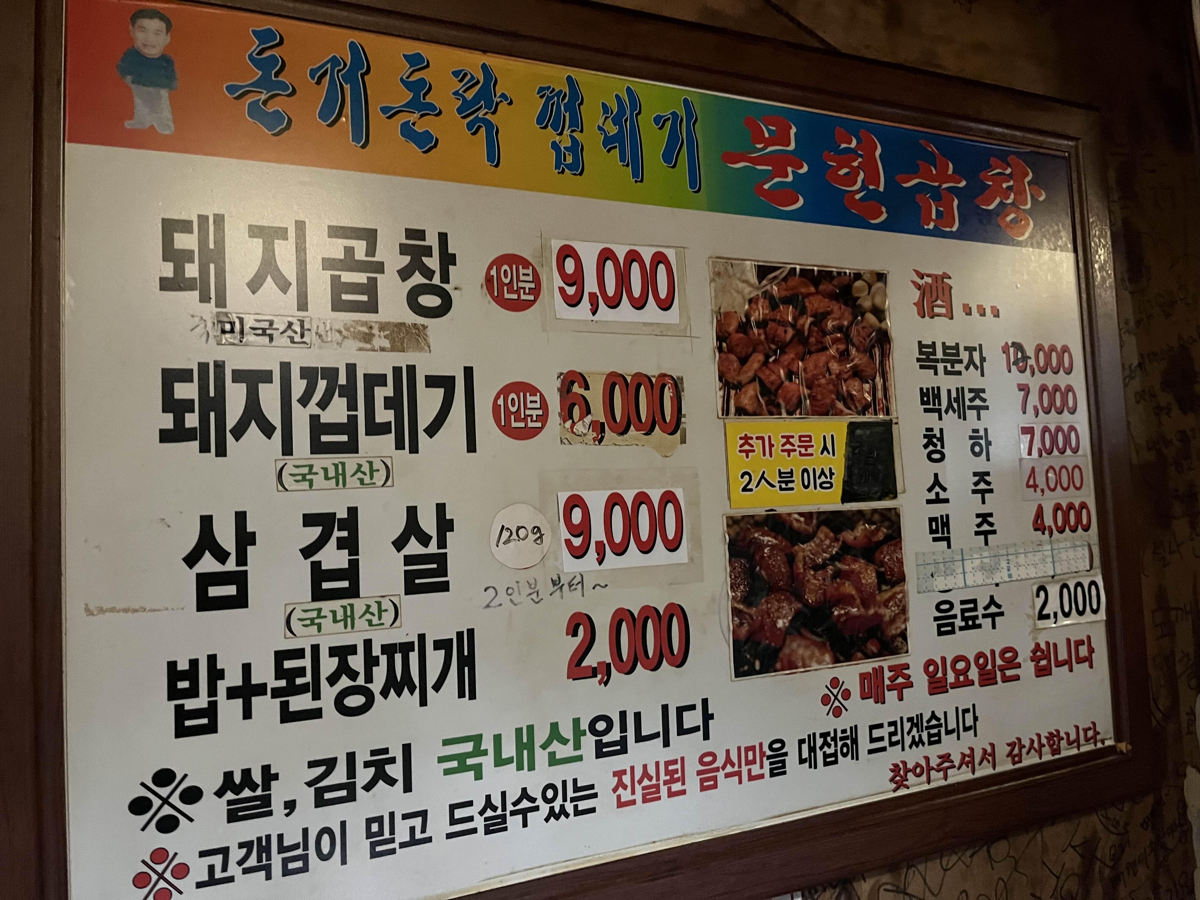 이런 올드한 느낌 ㅋ 좋다 돈거돈락껍데기문현곱창 상차림