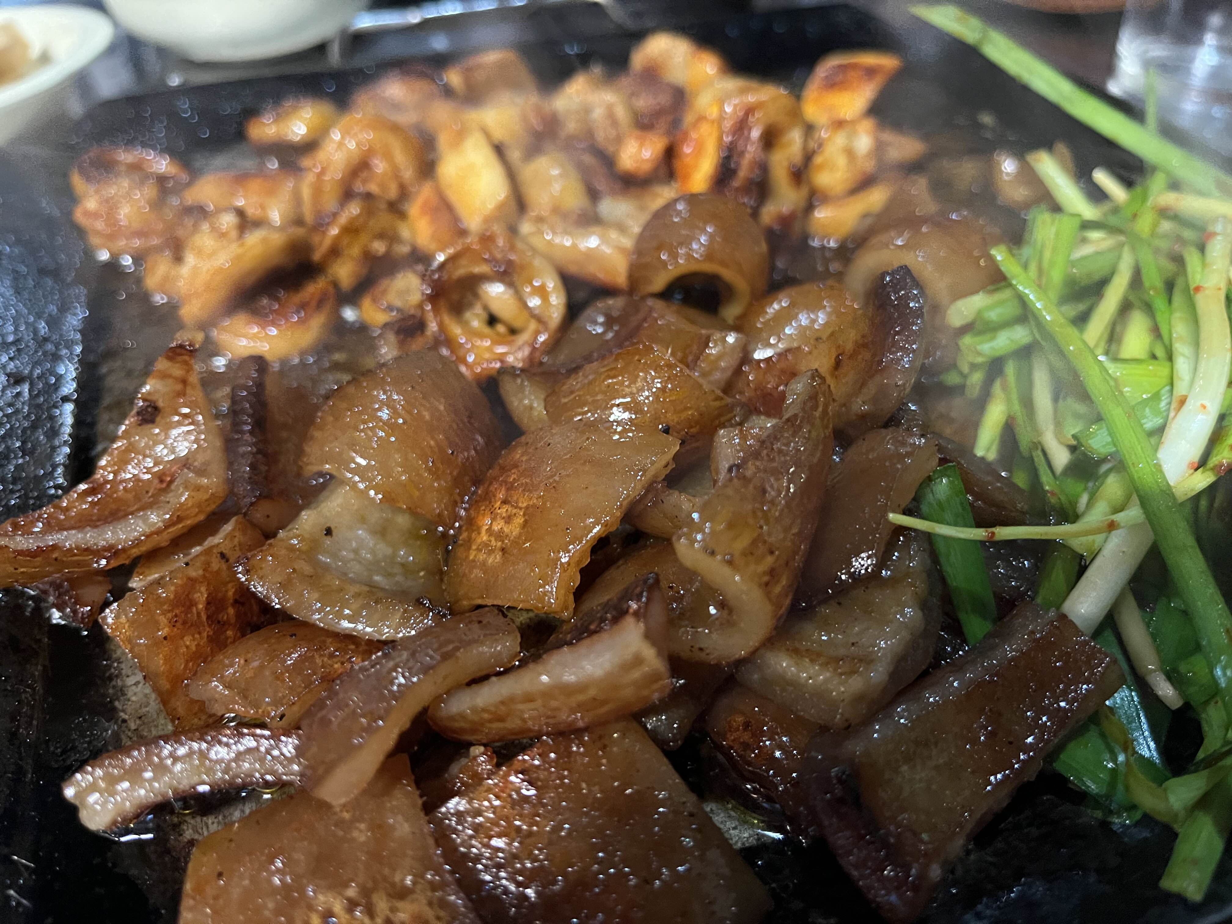 이곳은 양, 대창, 곱창전문이지만 돼지껍데기와 함께나오는 파?무침이 일품이다!