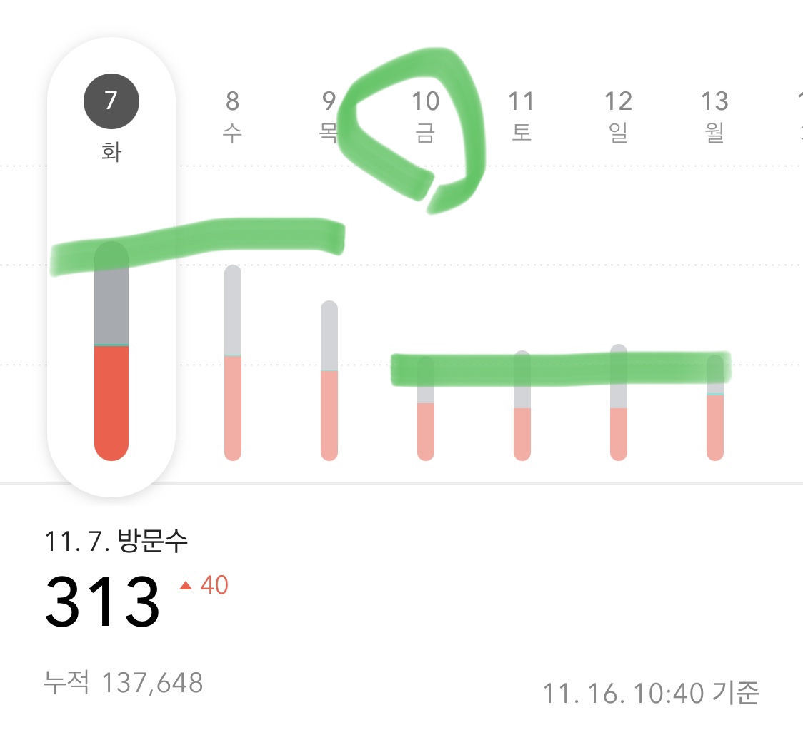 아마도 패널티를 받은게 아닐까 싶다. 지난번 화재때는 더 반의반토막이 조회수가 나왔지만 다시 300회/일 조회 수를 유지하다가 딱 절반이 되었다.