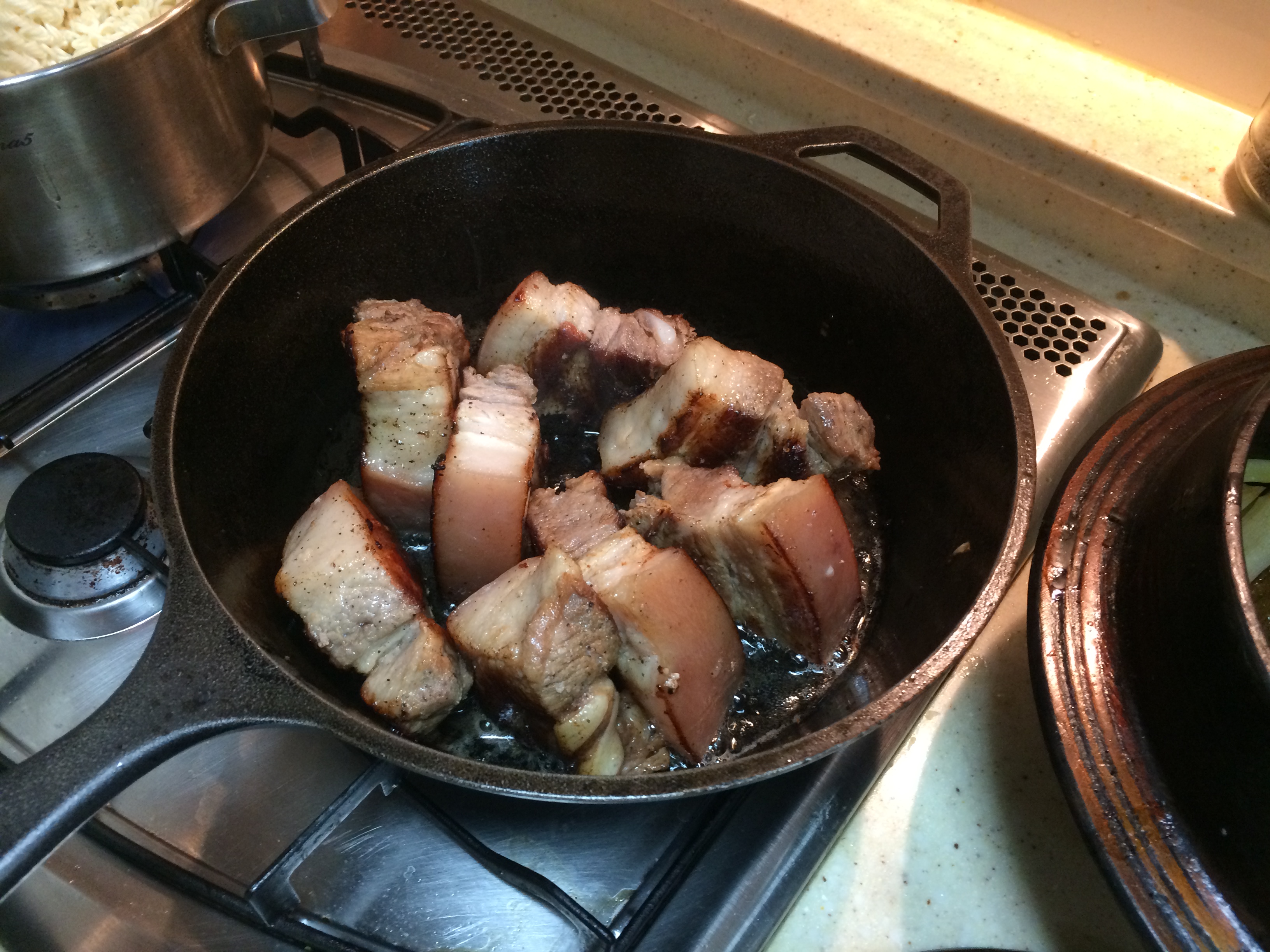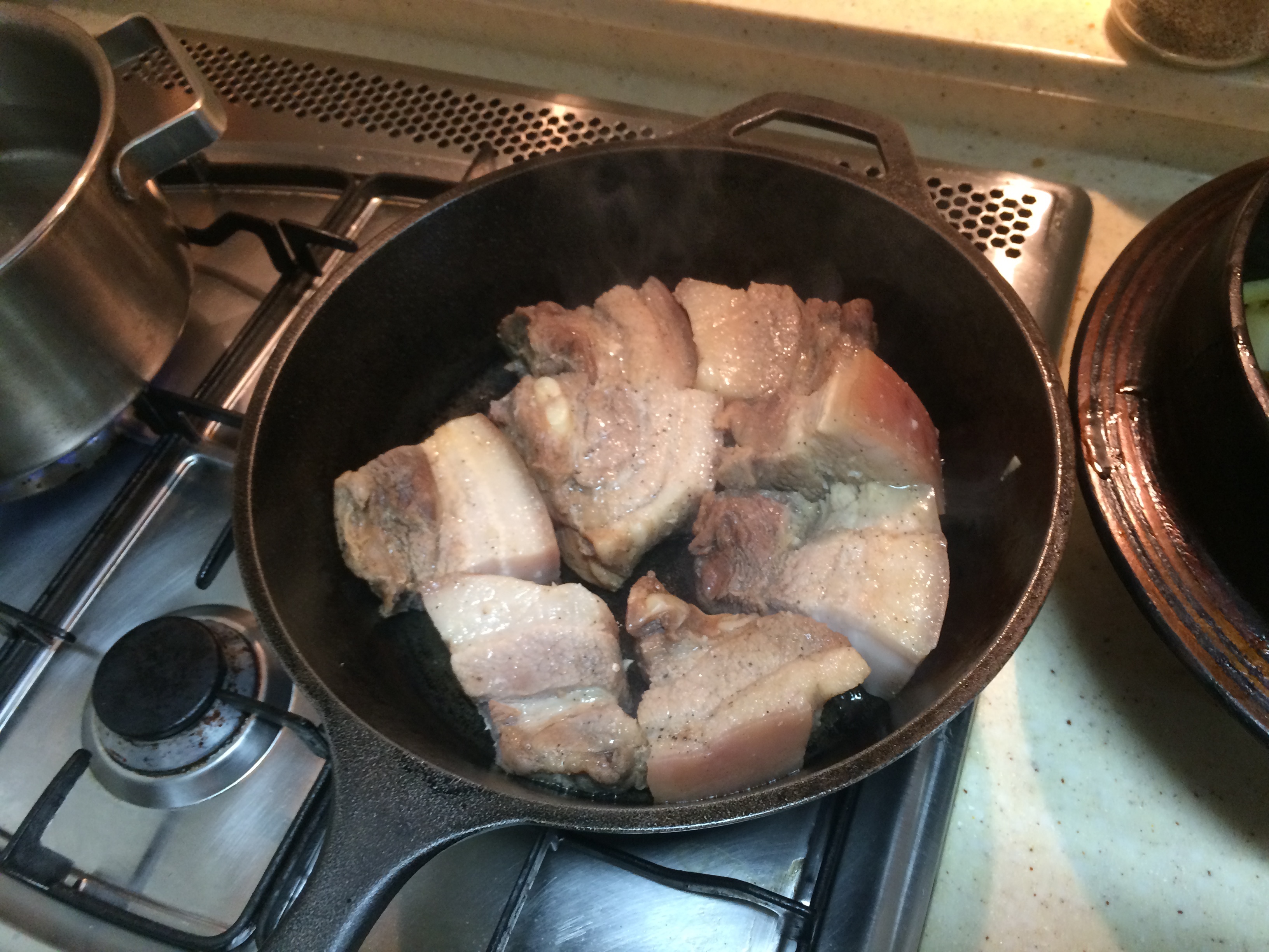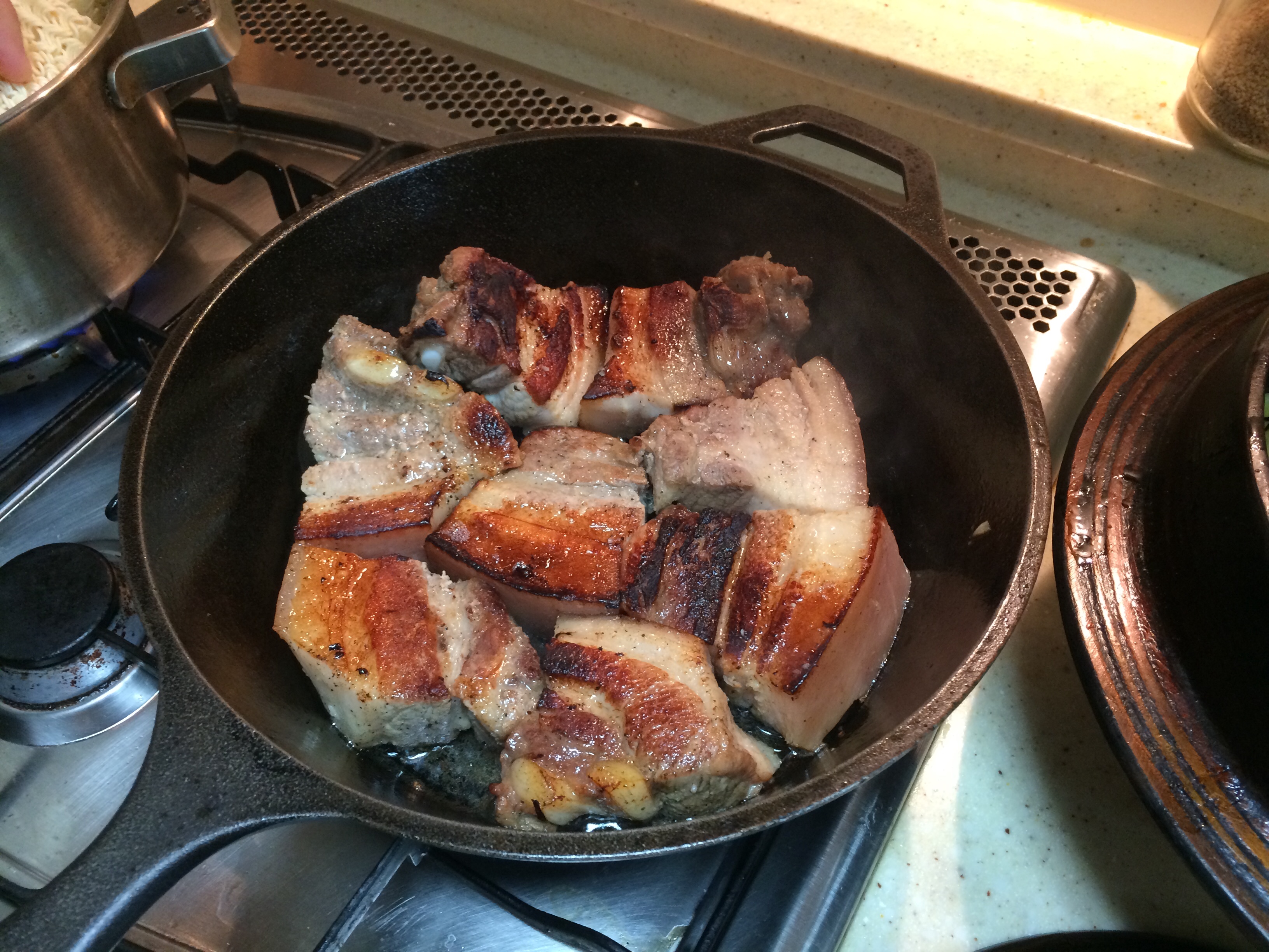 익은 고기를 롯지팬에서 대차게 구워 줘야한다. 촤아아아아~~~ 이때가 힛트!!