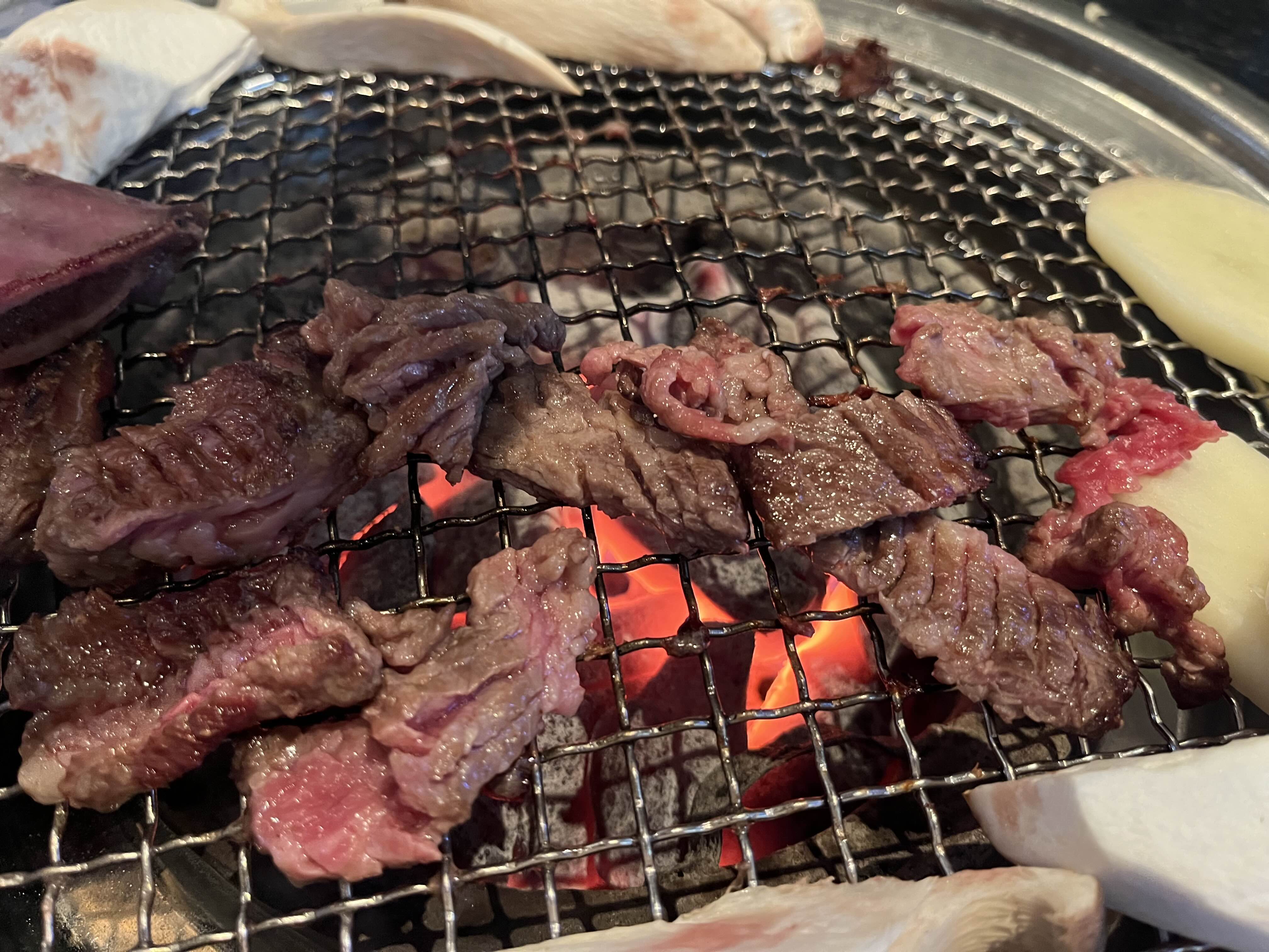 숯이 붉은게 아주 참숯을 이용하는 것 같다. 테이블 갯수가 그렇게 많지않고 넓지는 않기에 입구에 앉으면 조금 춥거나 할 수도 있다. 테이블수는 총 5-6개로 기억이 된다.
